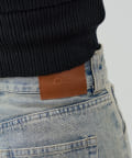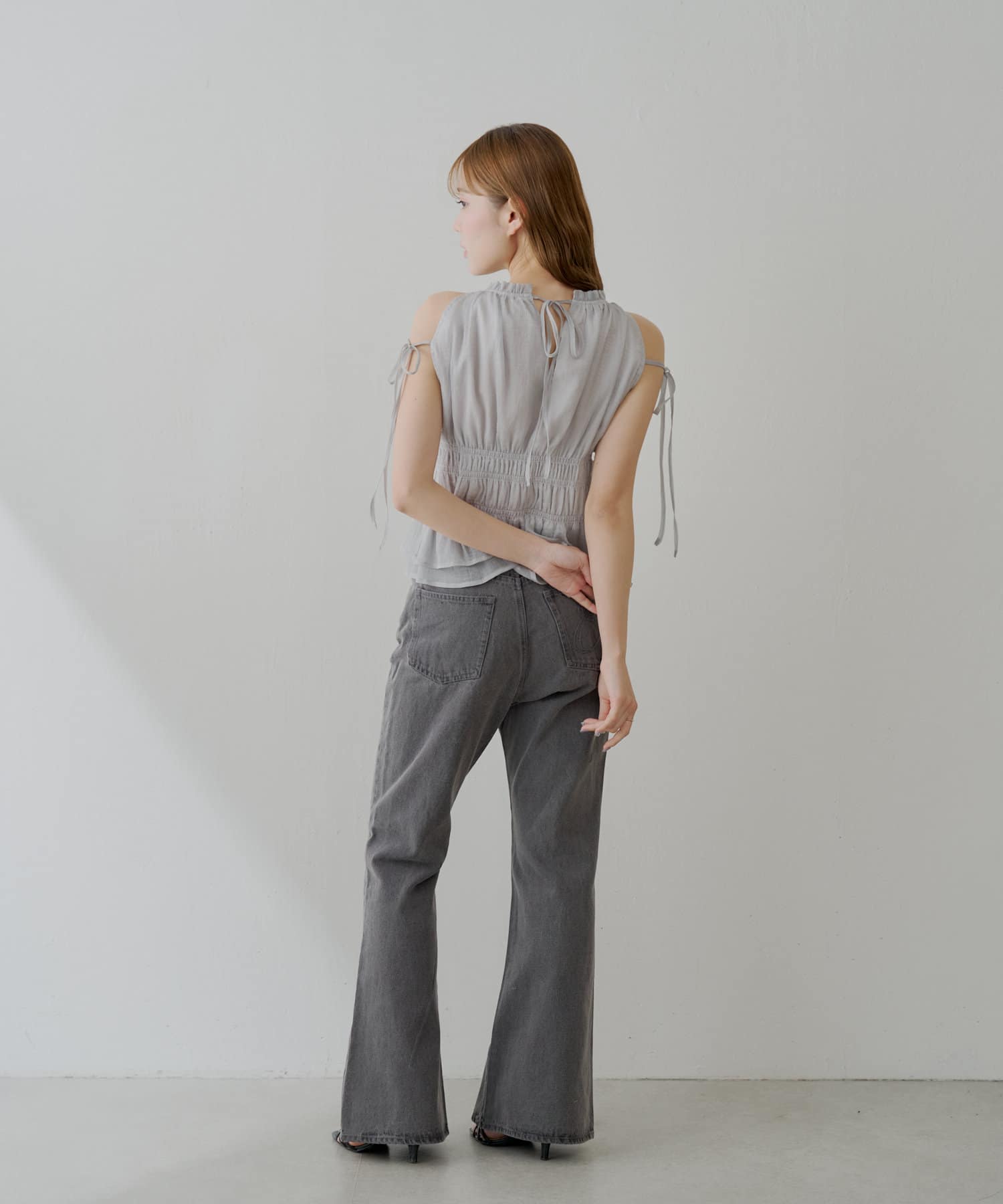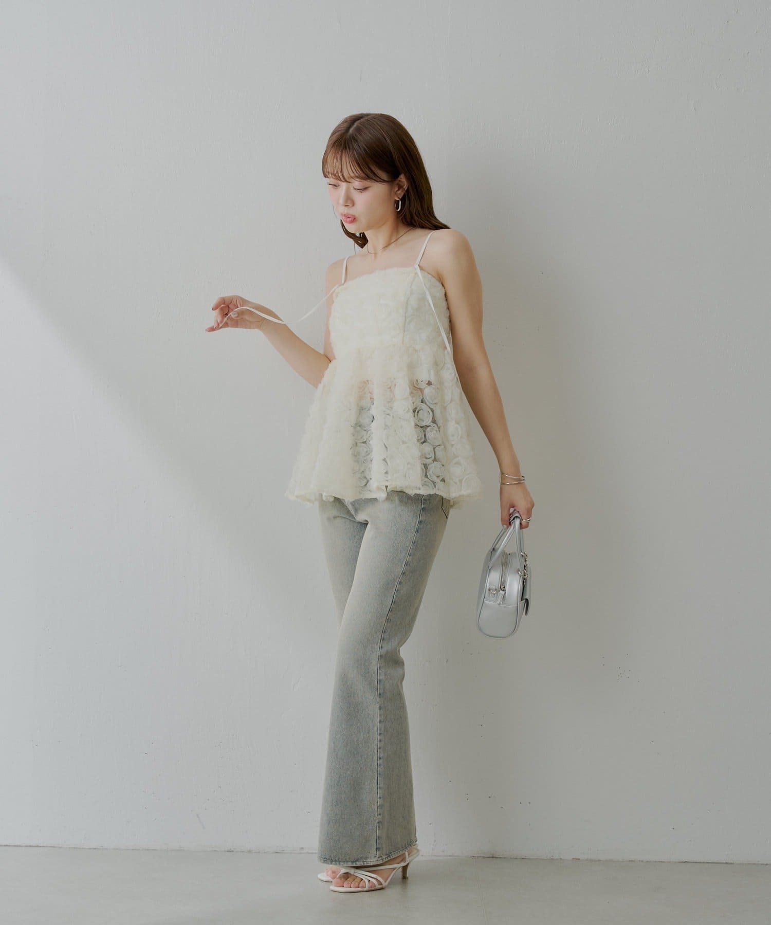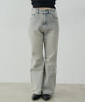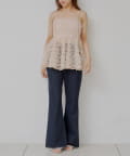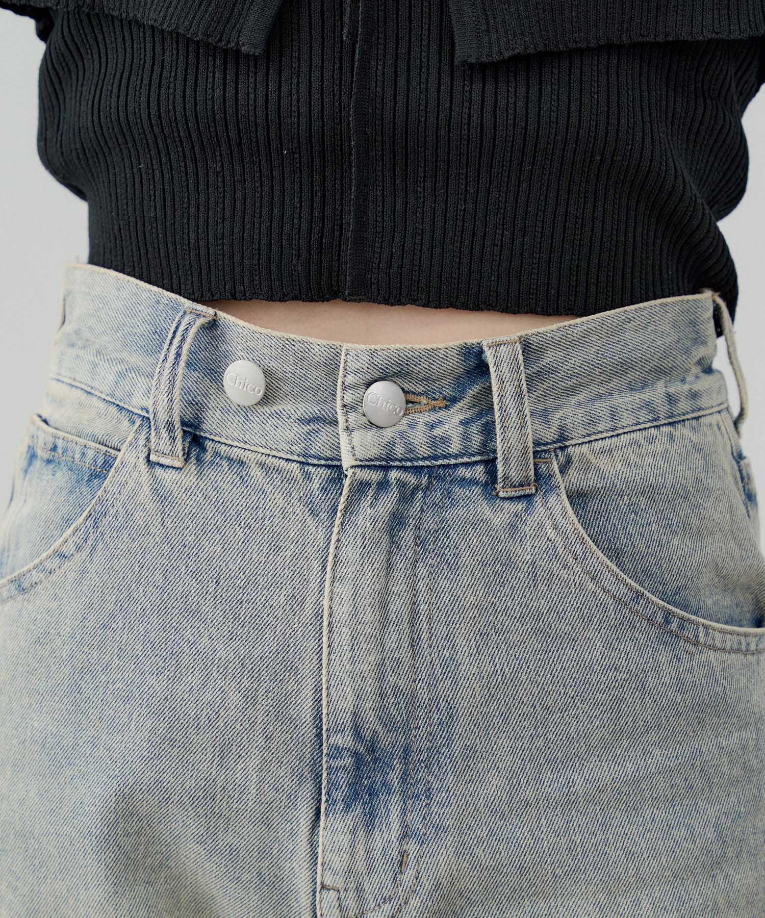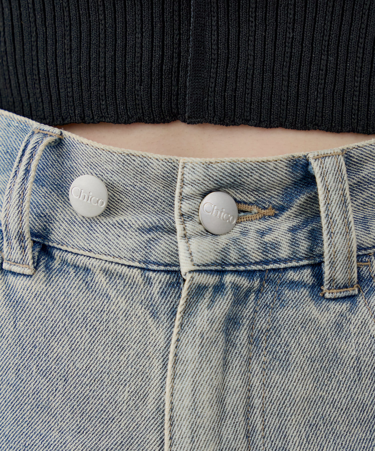 ・こなれ感たっぷりのウォッシュ加工が施されたタイトフレアデニム。