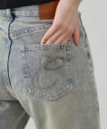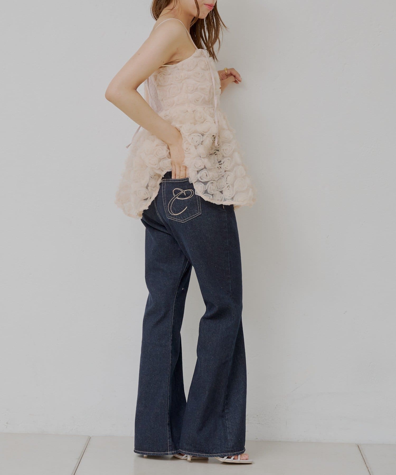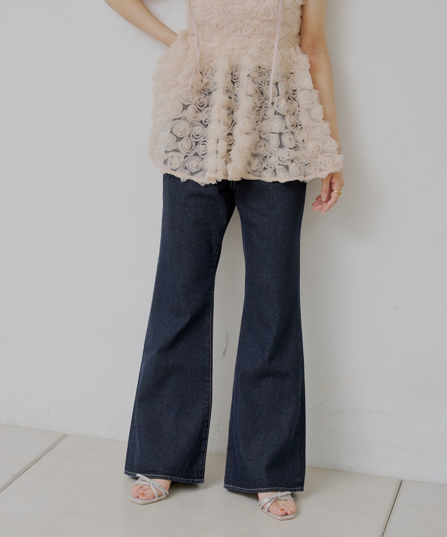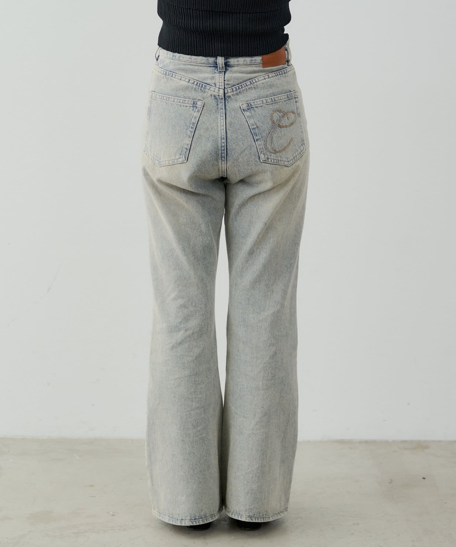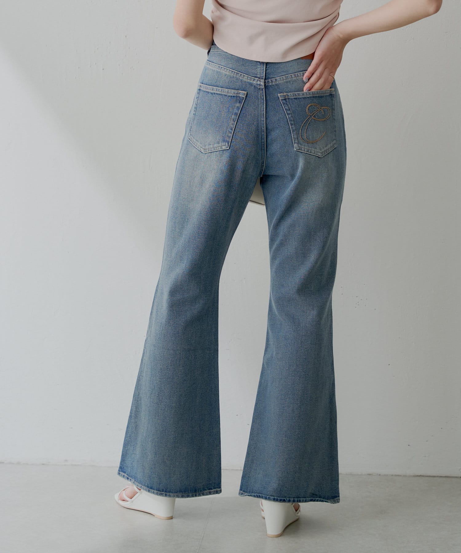 バックポケットの刺繍デザインが目を惹くタイトフレアデニム