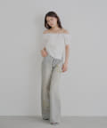 ・肩を落としてオフショルダーデザインで着ると、肩のラインを美しく見せ、女性らしい華奢な印象に!