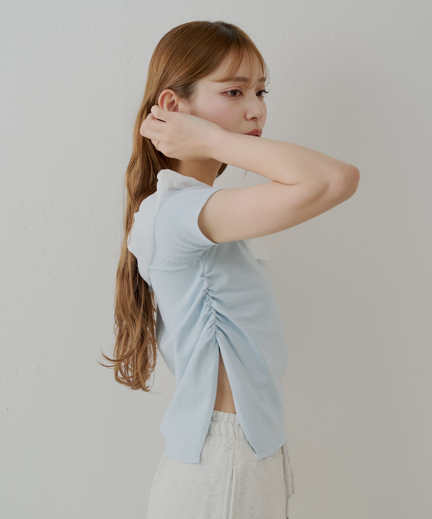 バルーンフリルドッキングギャザーニット