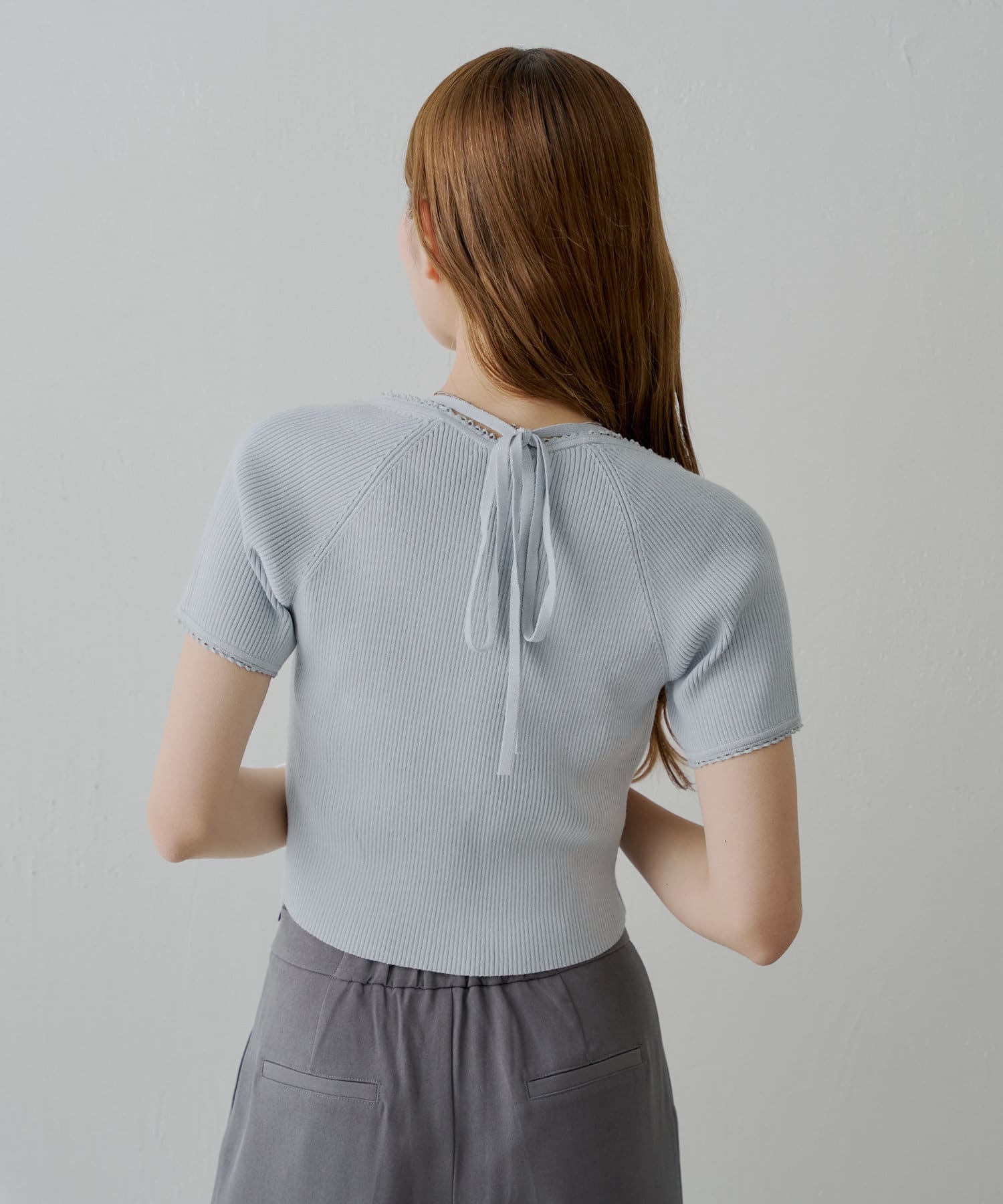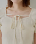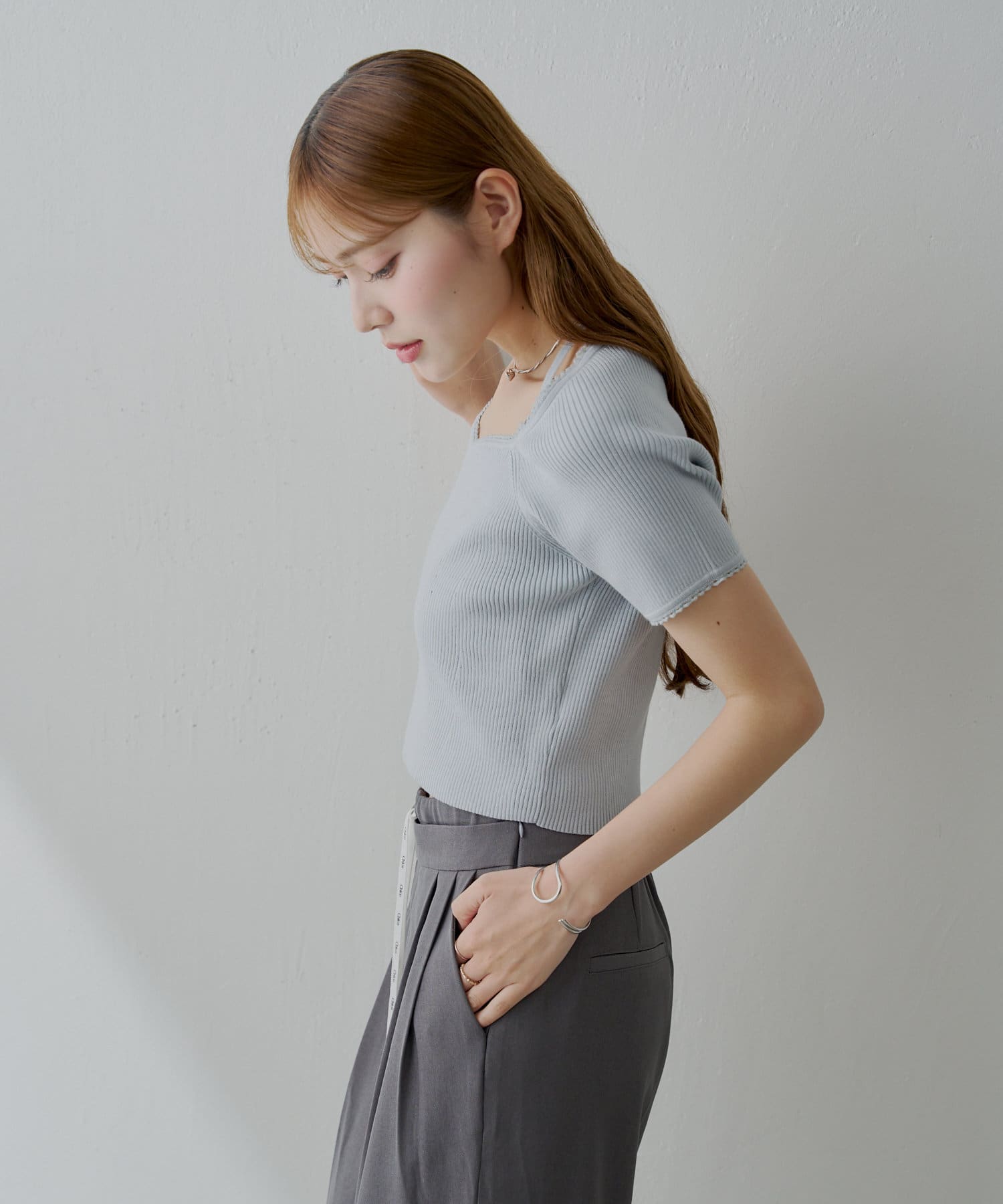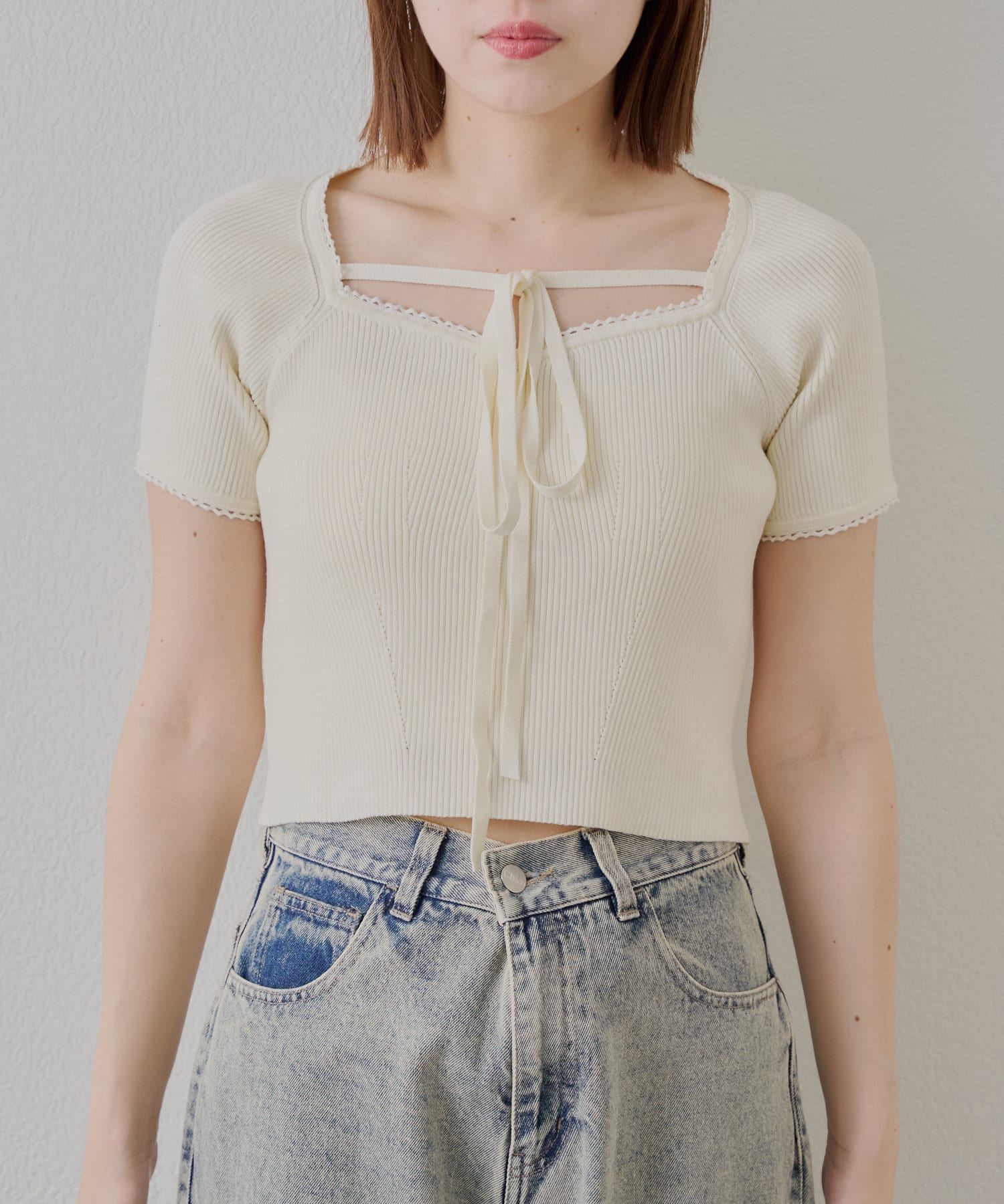 スクエアネックとリボン使いが、デコルテを美しく見せてくれるフレンチニット登場!