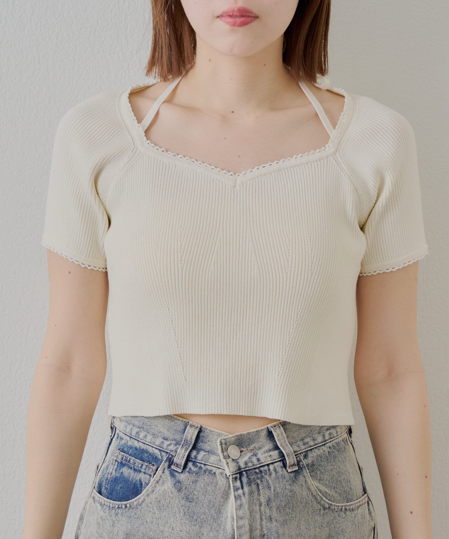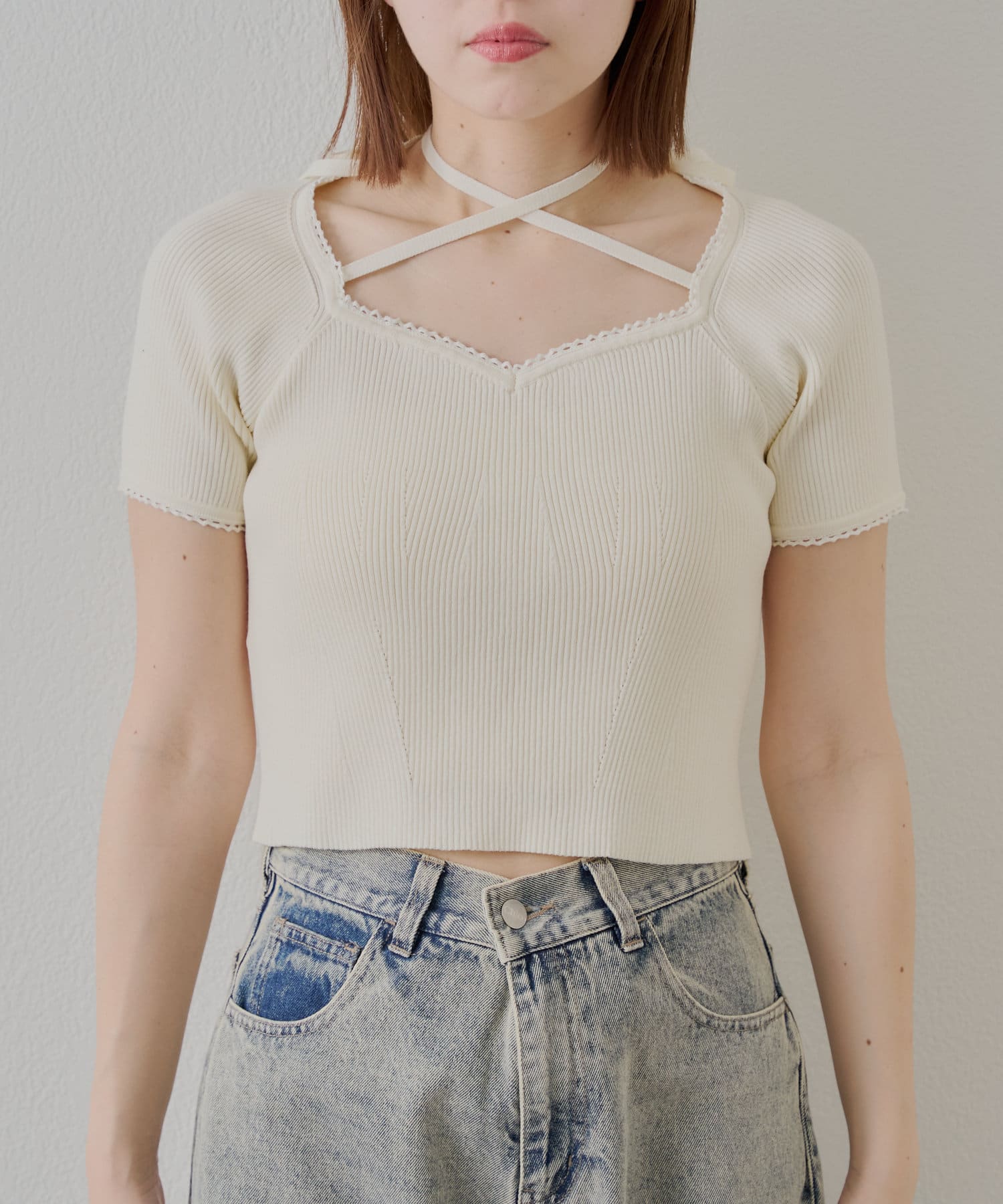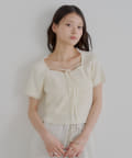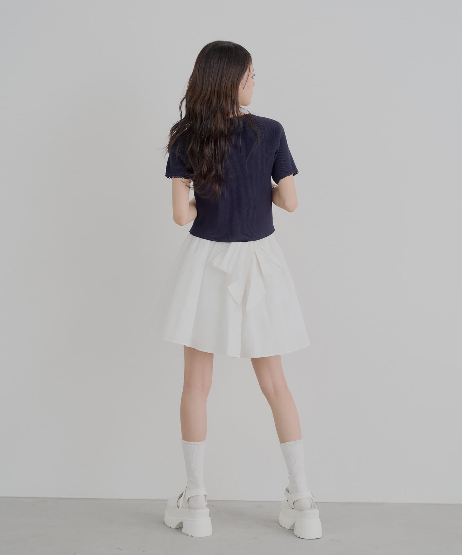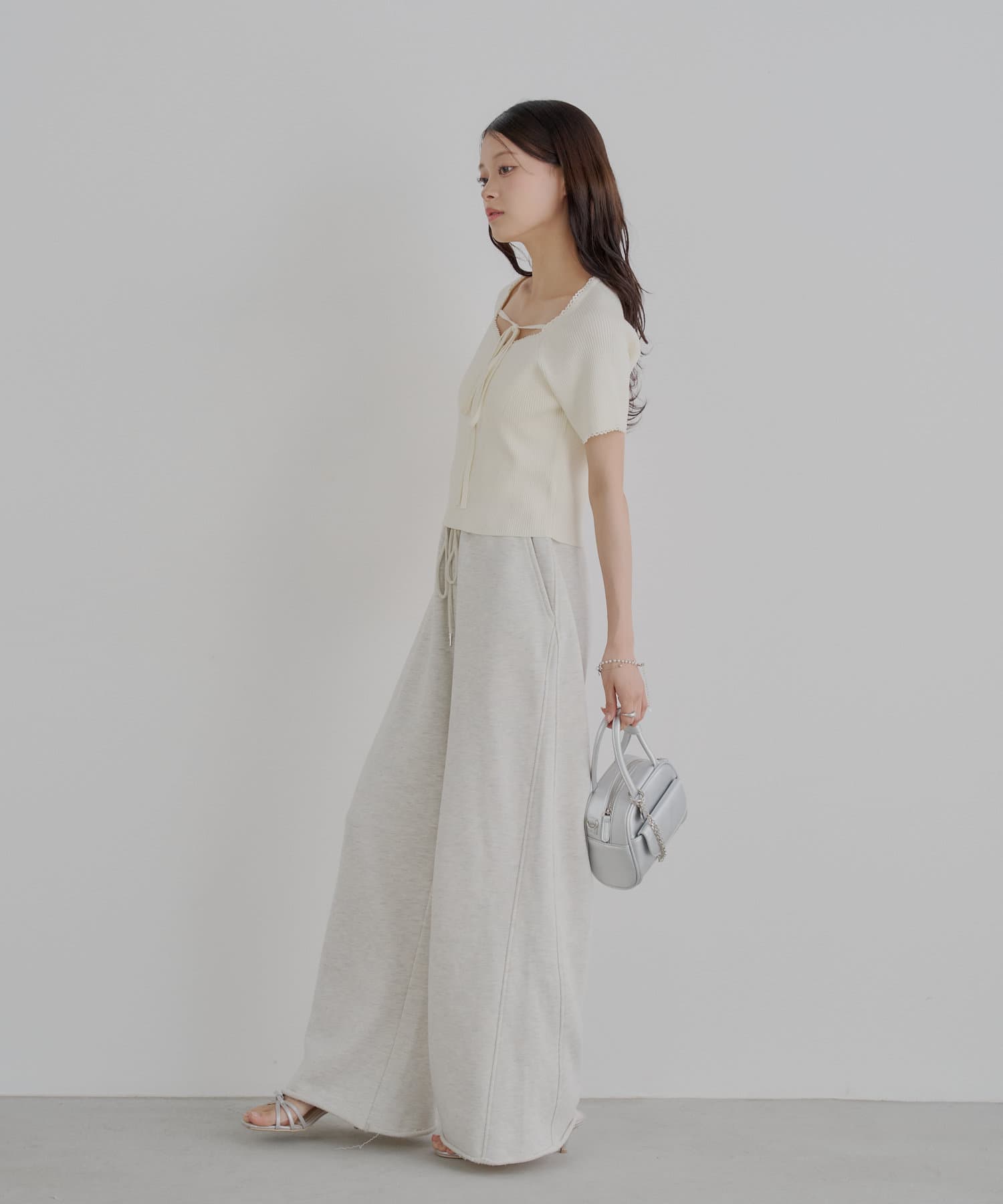 スクエアネックとリボン使いが、デコルテを美しく見せてくれるフレンチニット登場!