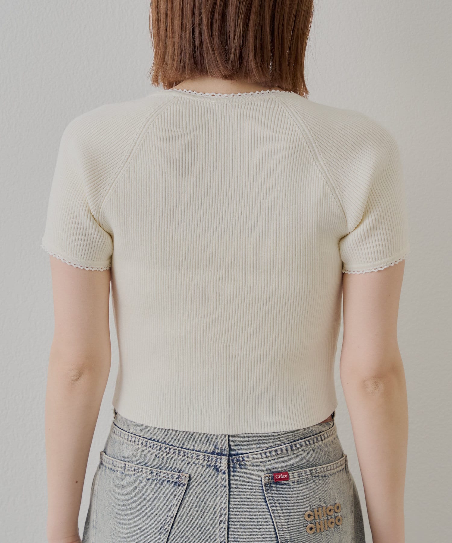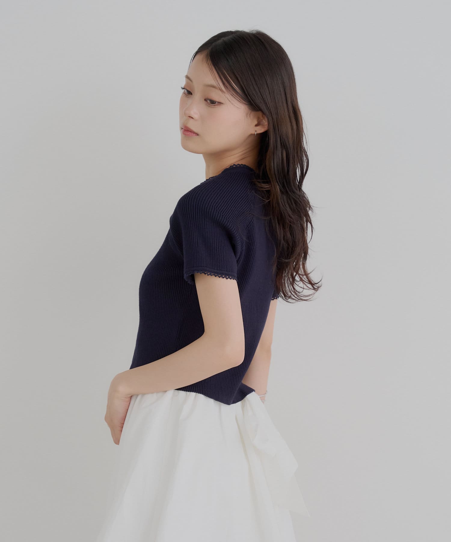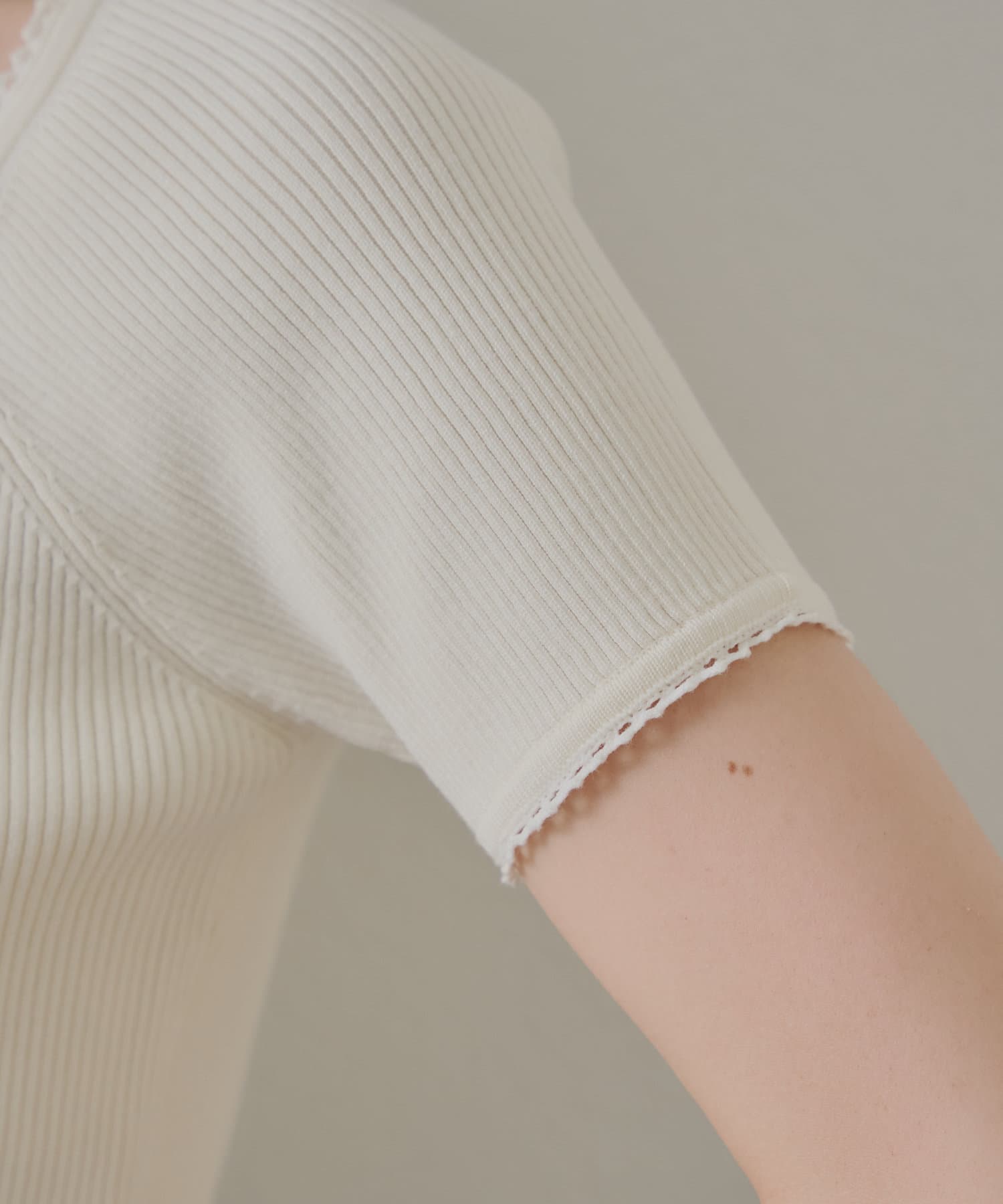 ・ネックラインと袖口にあしらわれた繊細なレースが、フェミニンな雰囲気をプラスします。