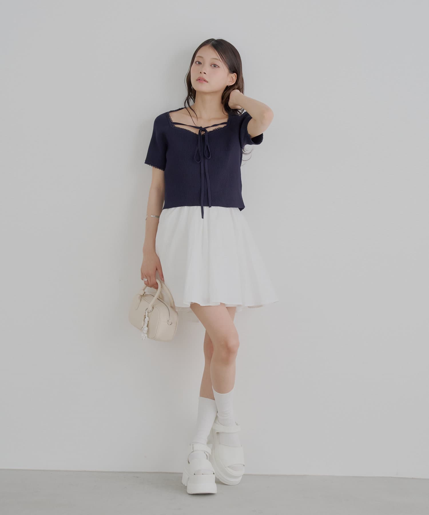 ・胸元のリボンは首の後ろで結んだりと、結び方次第で雰囲気を変えて着ていただけます。