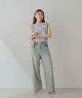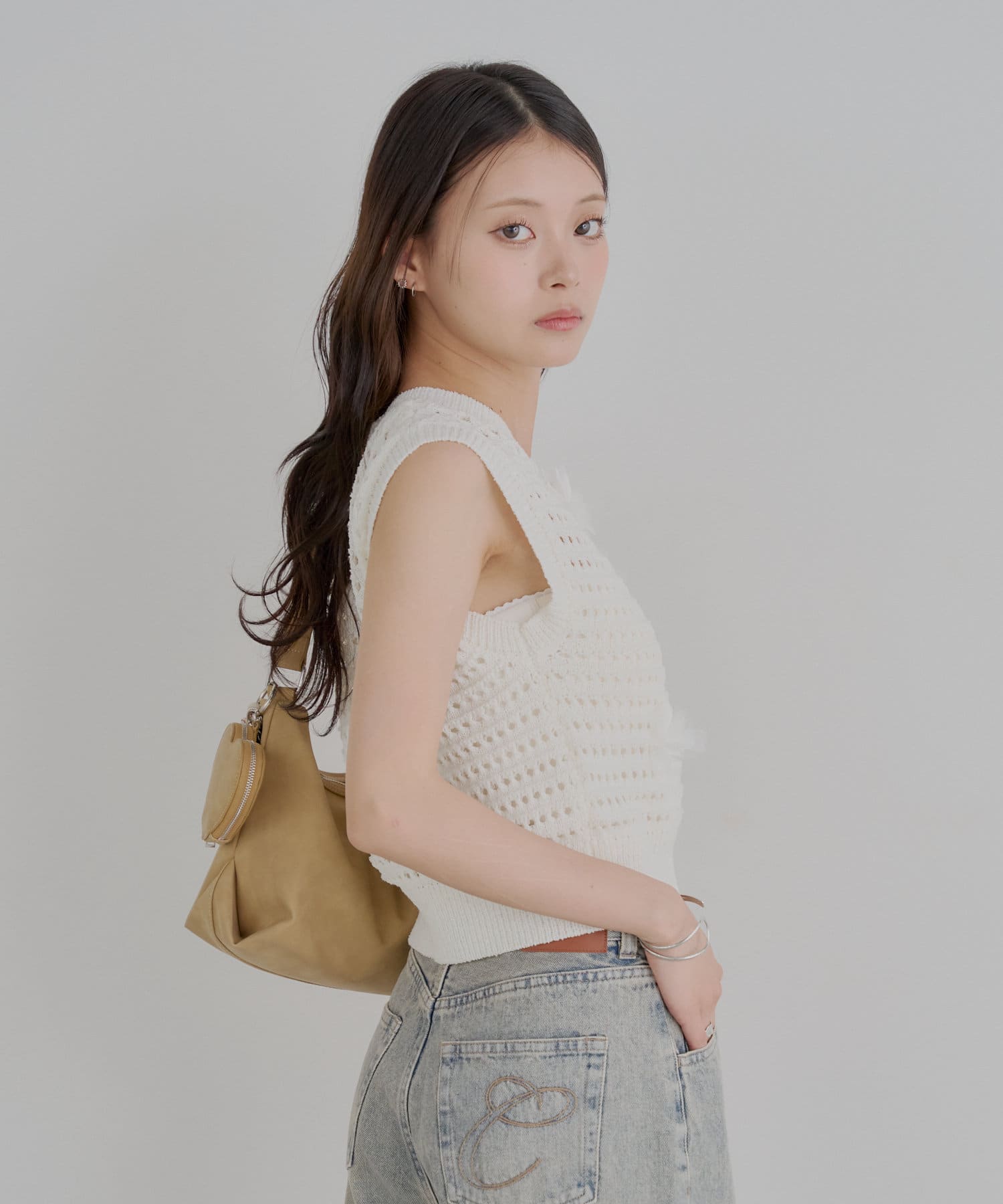 ・タンクトップやキャミソールにニットベストを重ねて、ビスチェ風に着こなすのもおすすめです。