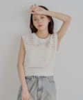 ・透かし編みニットベストで、大人の抜け感を演出してくれます。