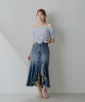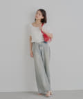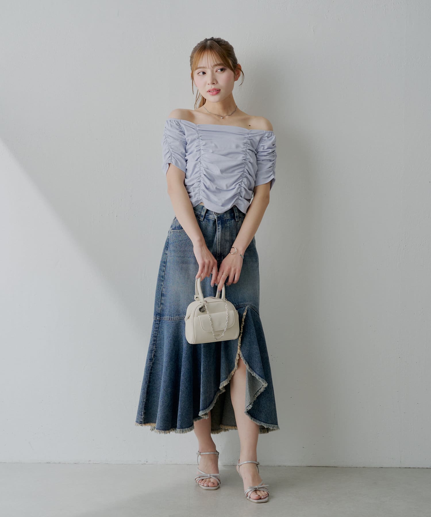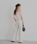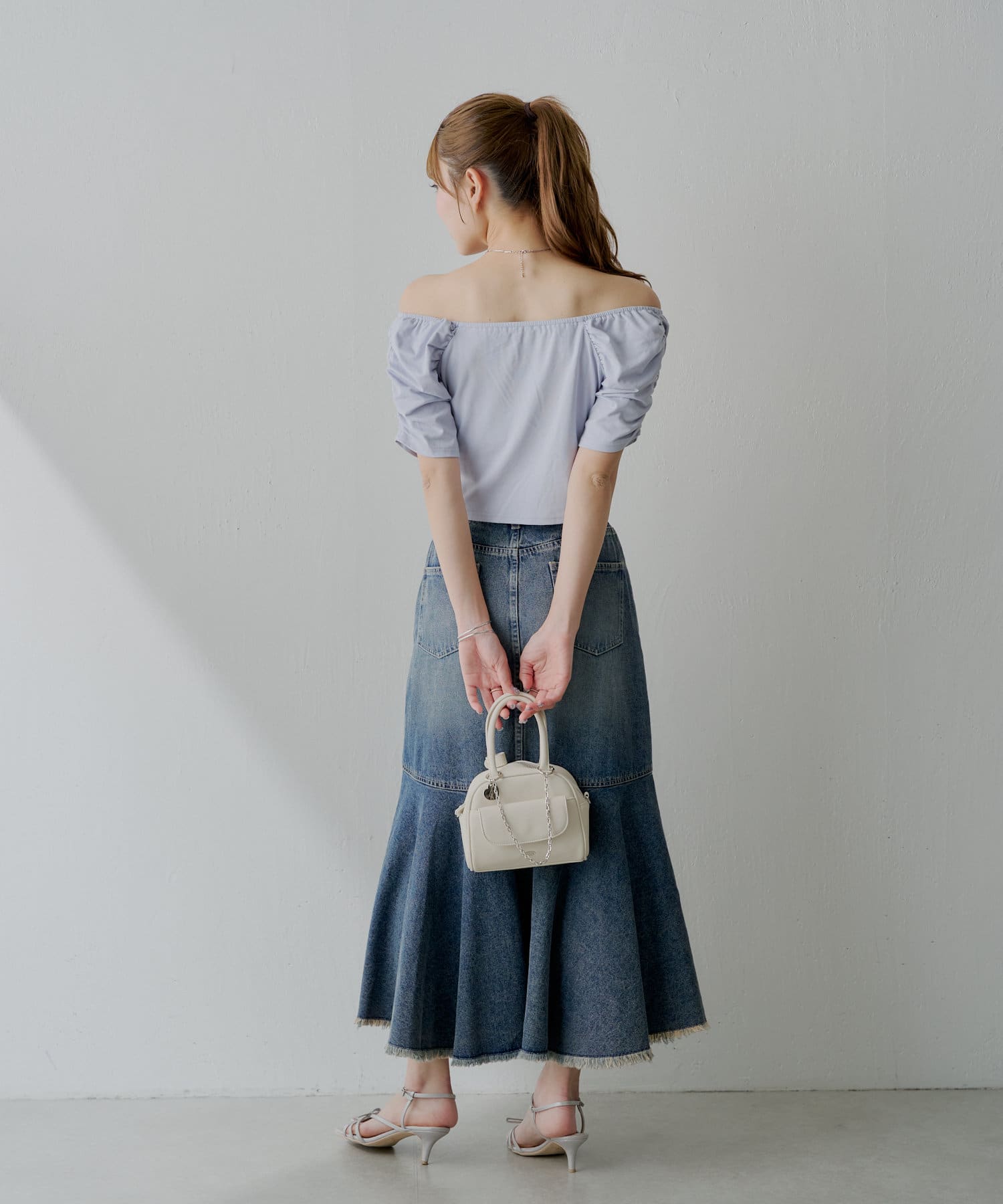 ・フレアスカート合わせで、フェミニンなスタイルにも。