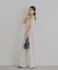 ・胸元からウエストにかけて施されたギャザーが大人の女性らしさを引き立ててくれます。