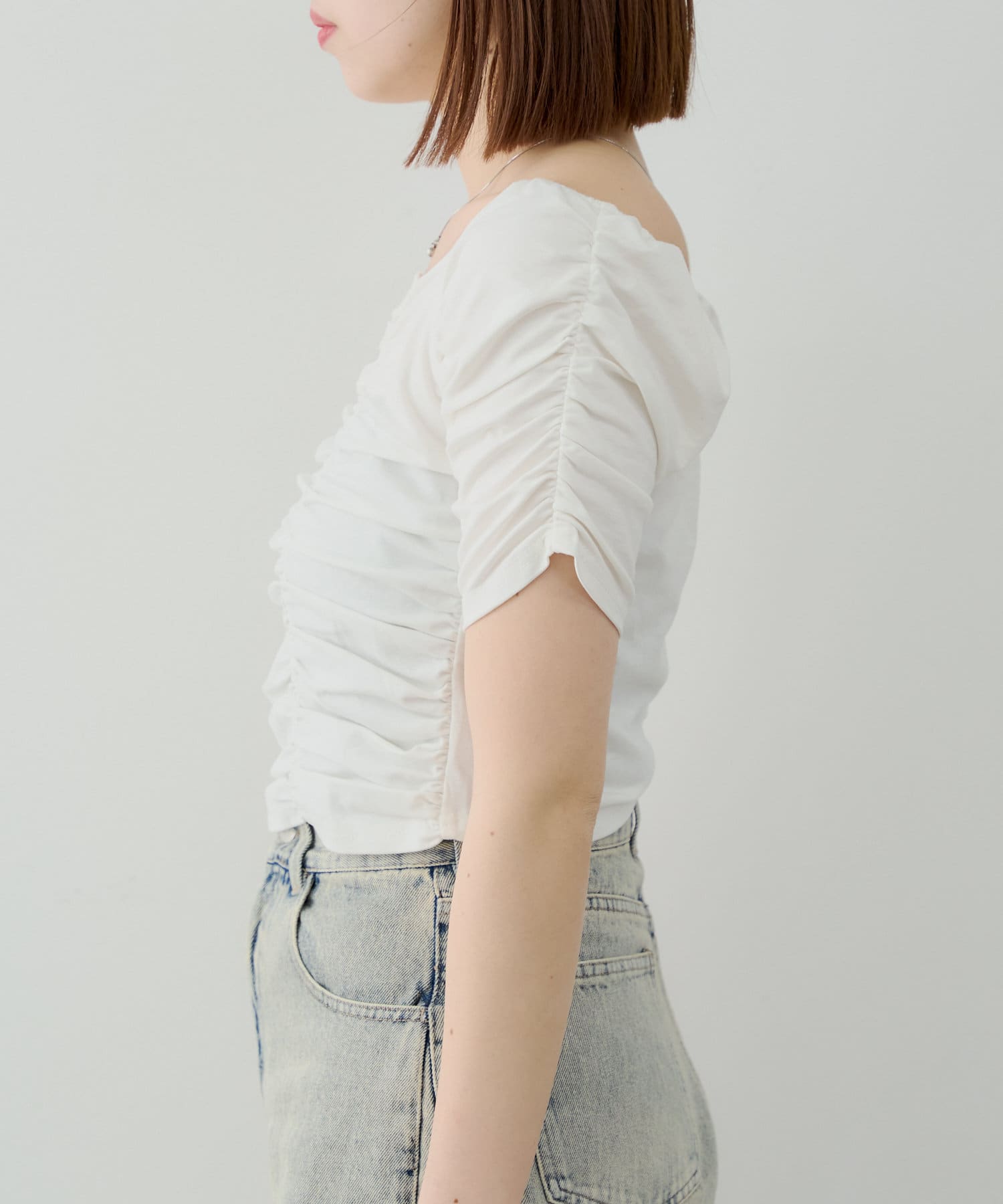 繊細なギャザーが目を惹く、フェミニンなトップス登場!