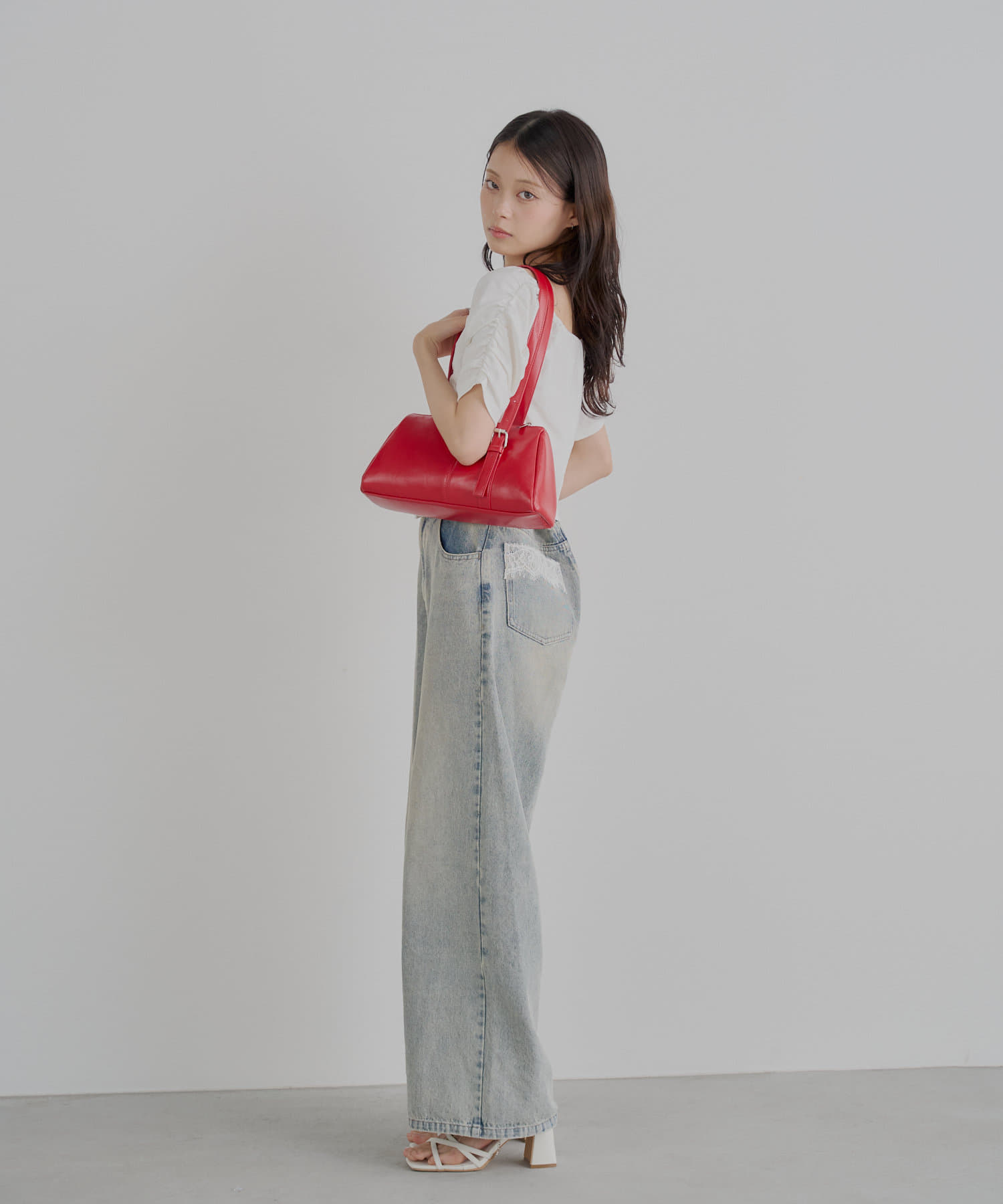 ・デニムパンツとの相性も抜群で、上品で大人っぽいスタイルに仕上がります。
