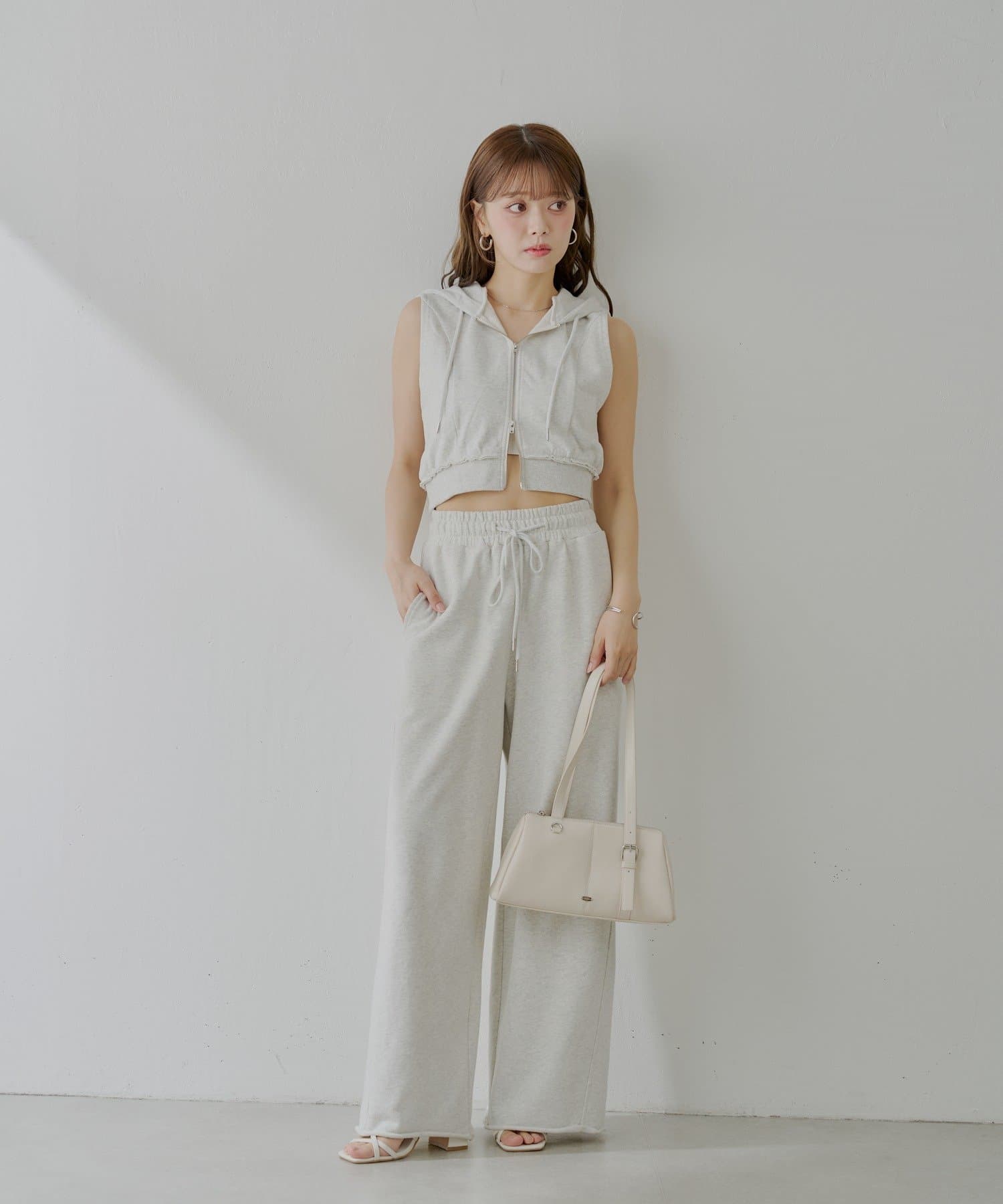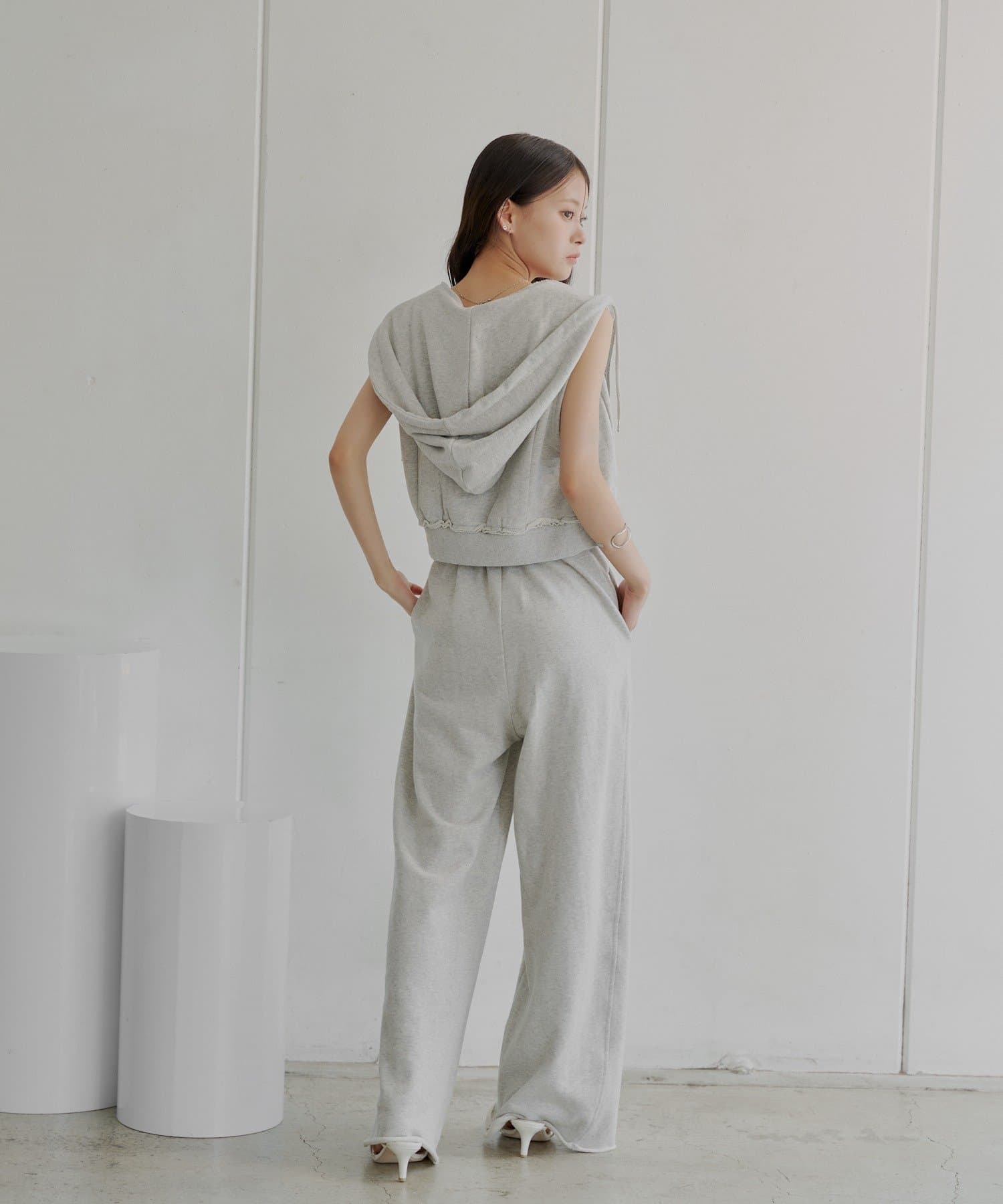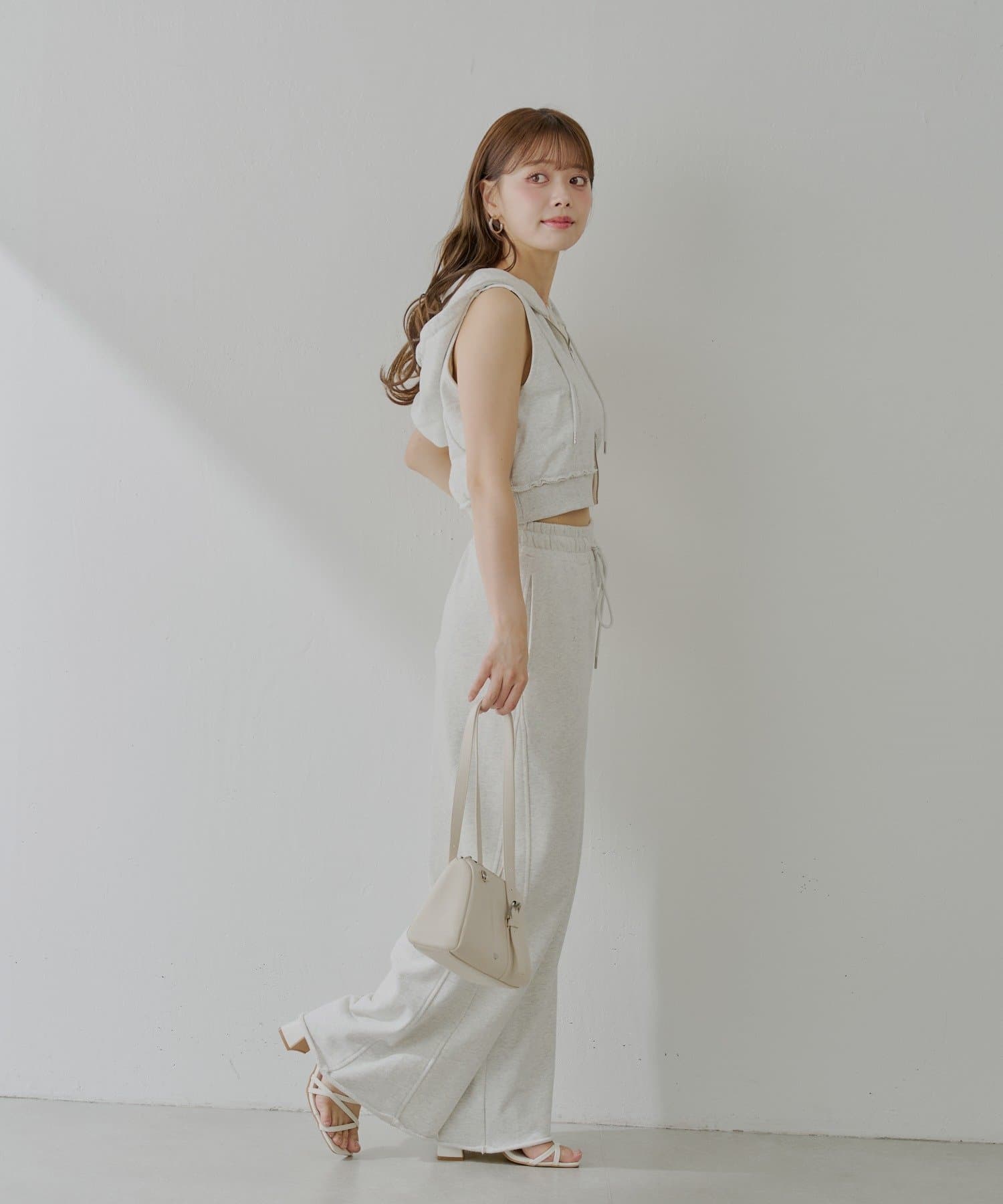 ・同素材のスウェットパンツと合わせてセットアップ風に着るのもおすすめです!