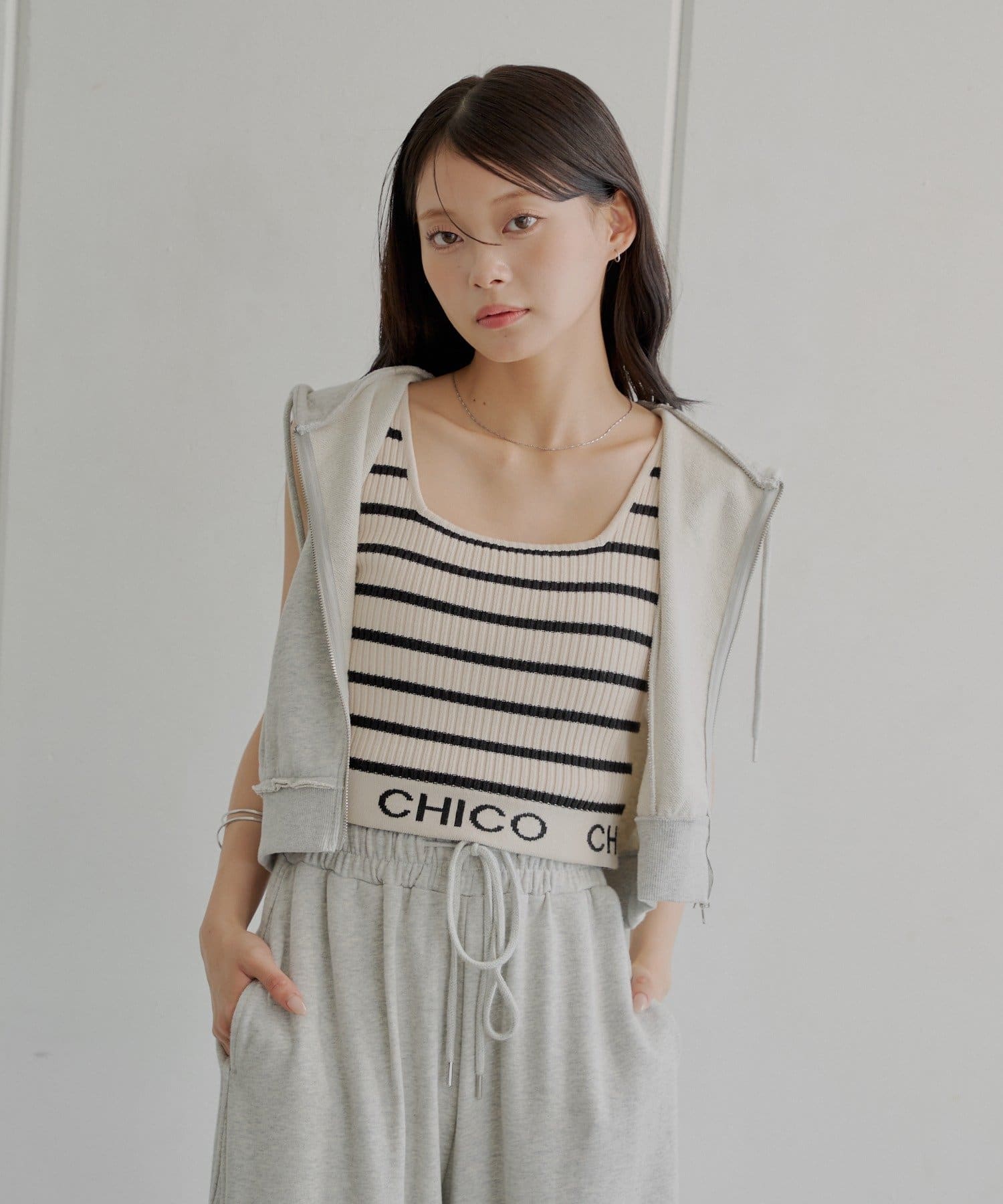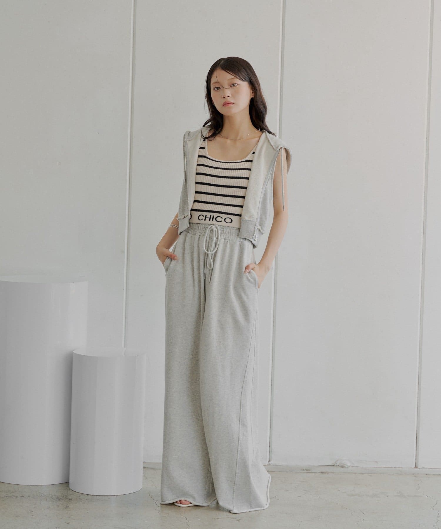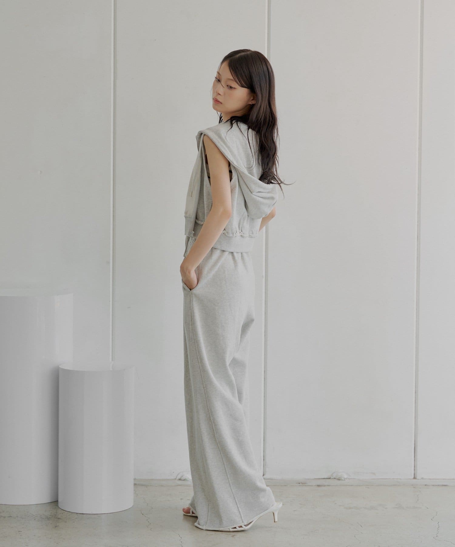 ・同素材のスウェットパンツと合わせてセットアップ風に着るのもおすすめです!