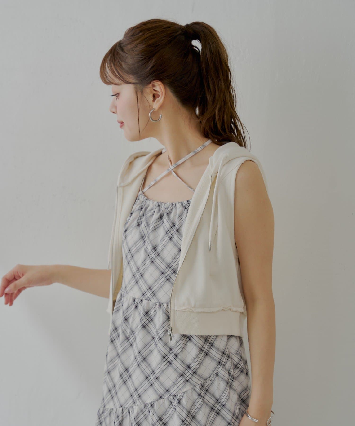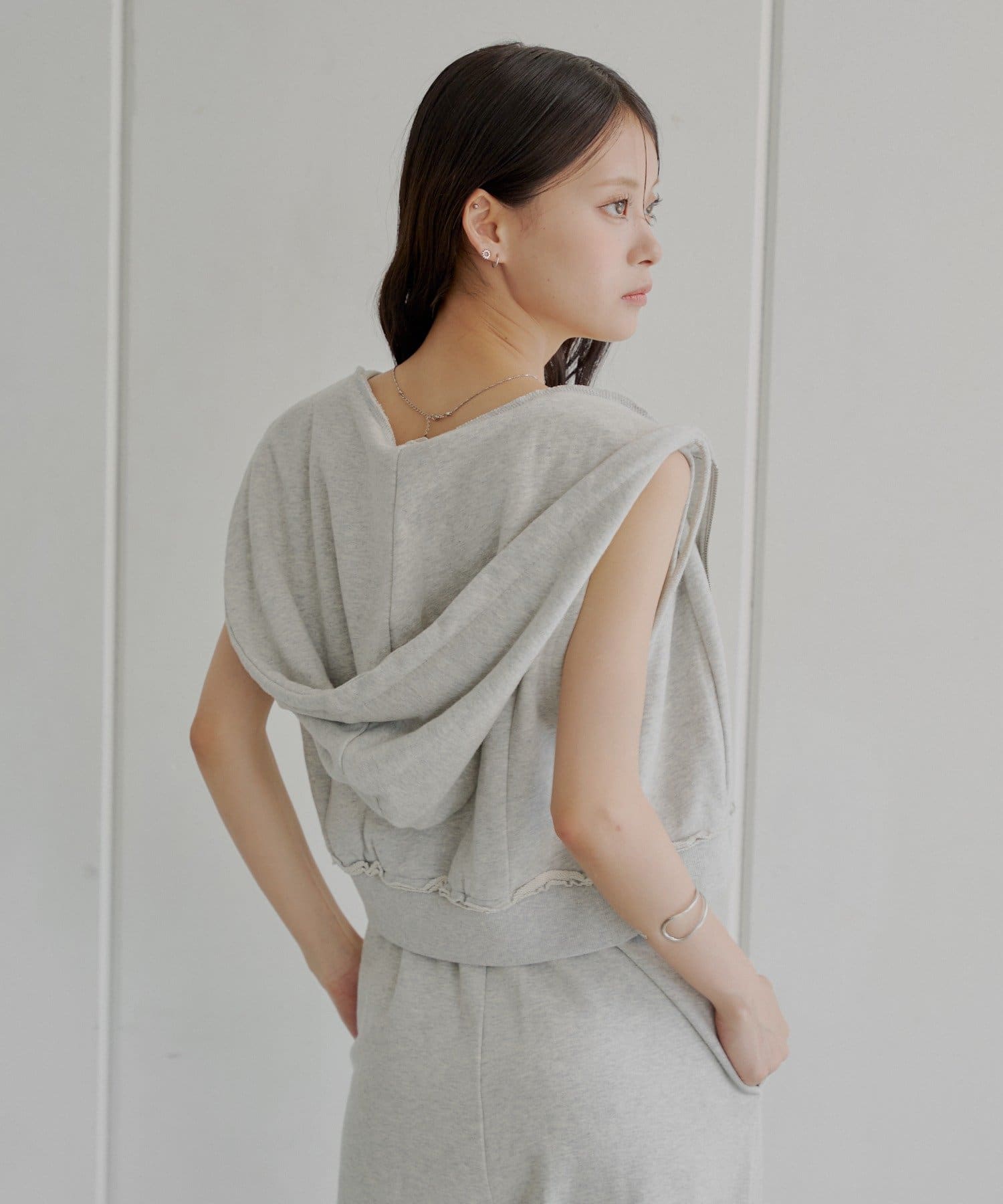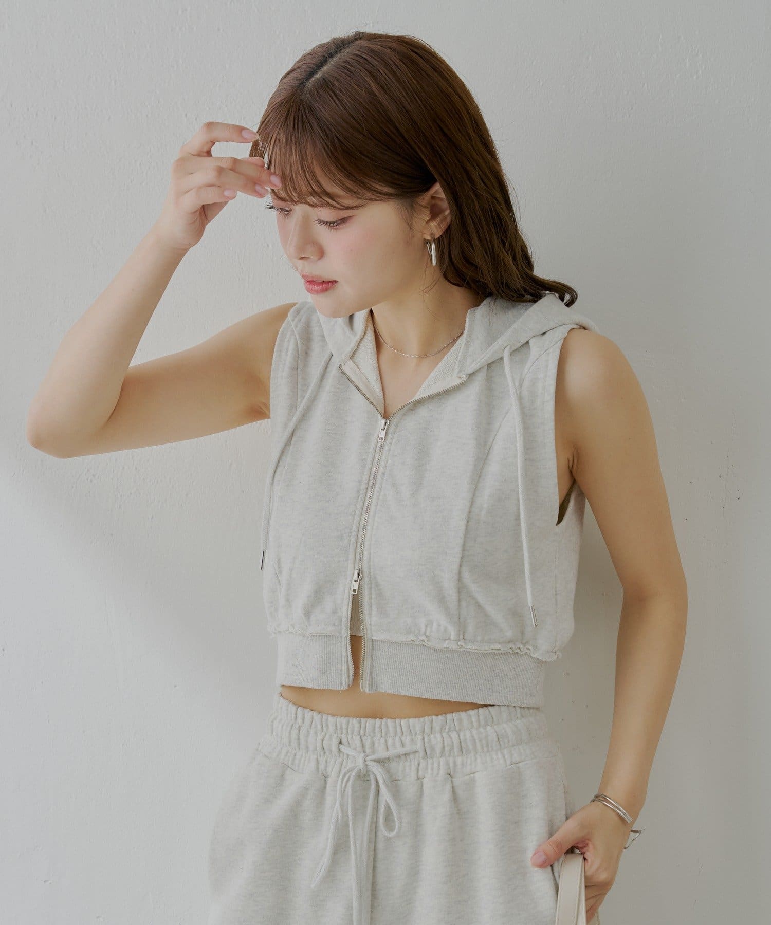 ・ヘルシーな肌見せで、女性らしさを演出してくれるノースリフードパーカー。