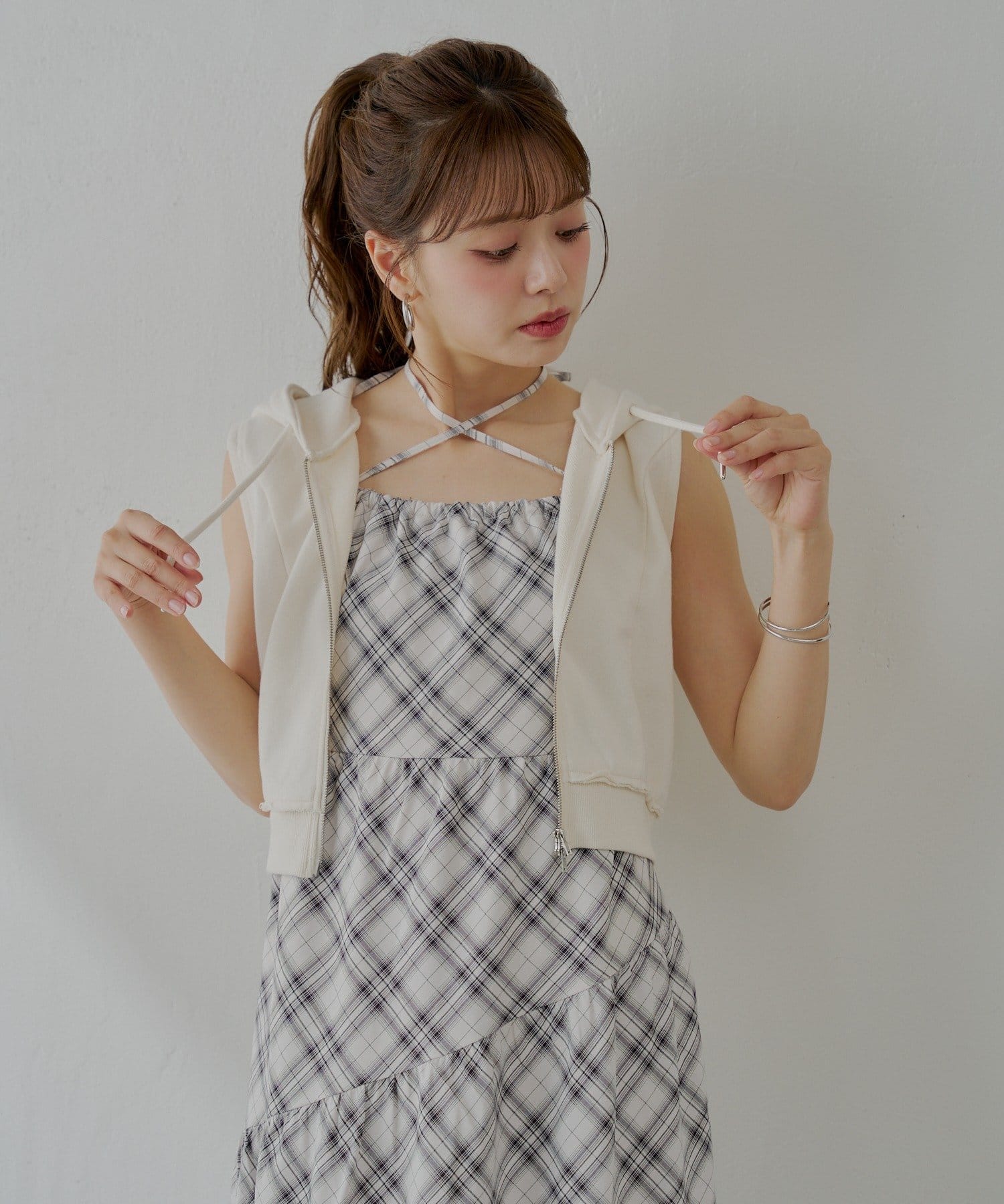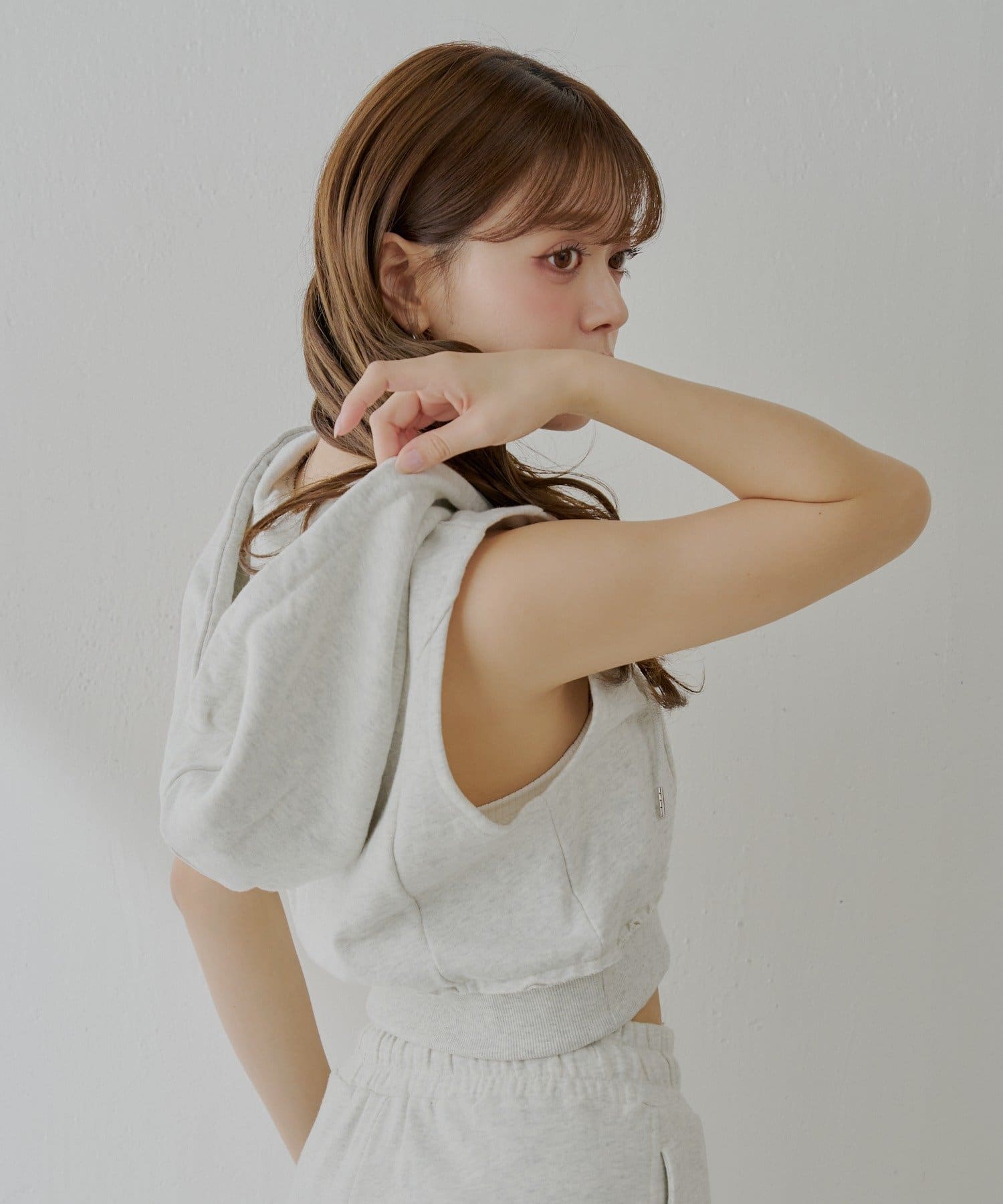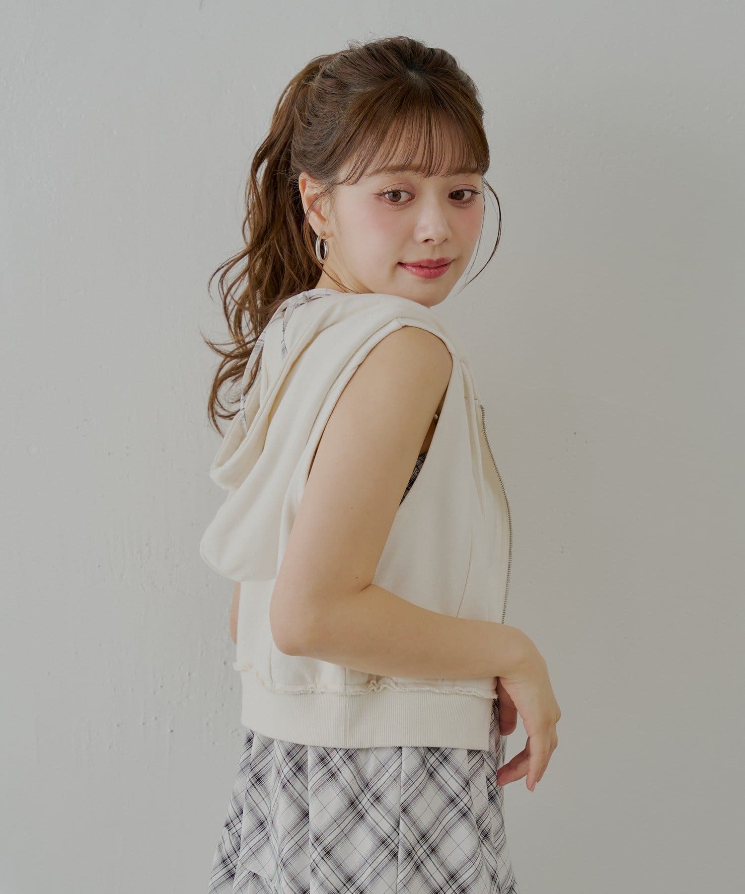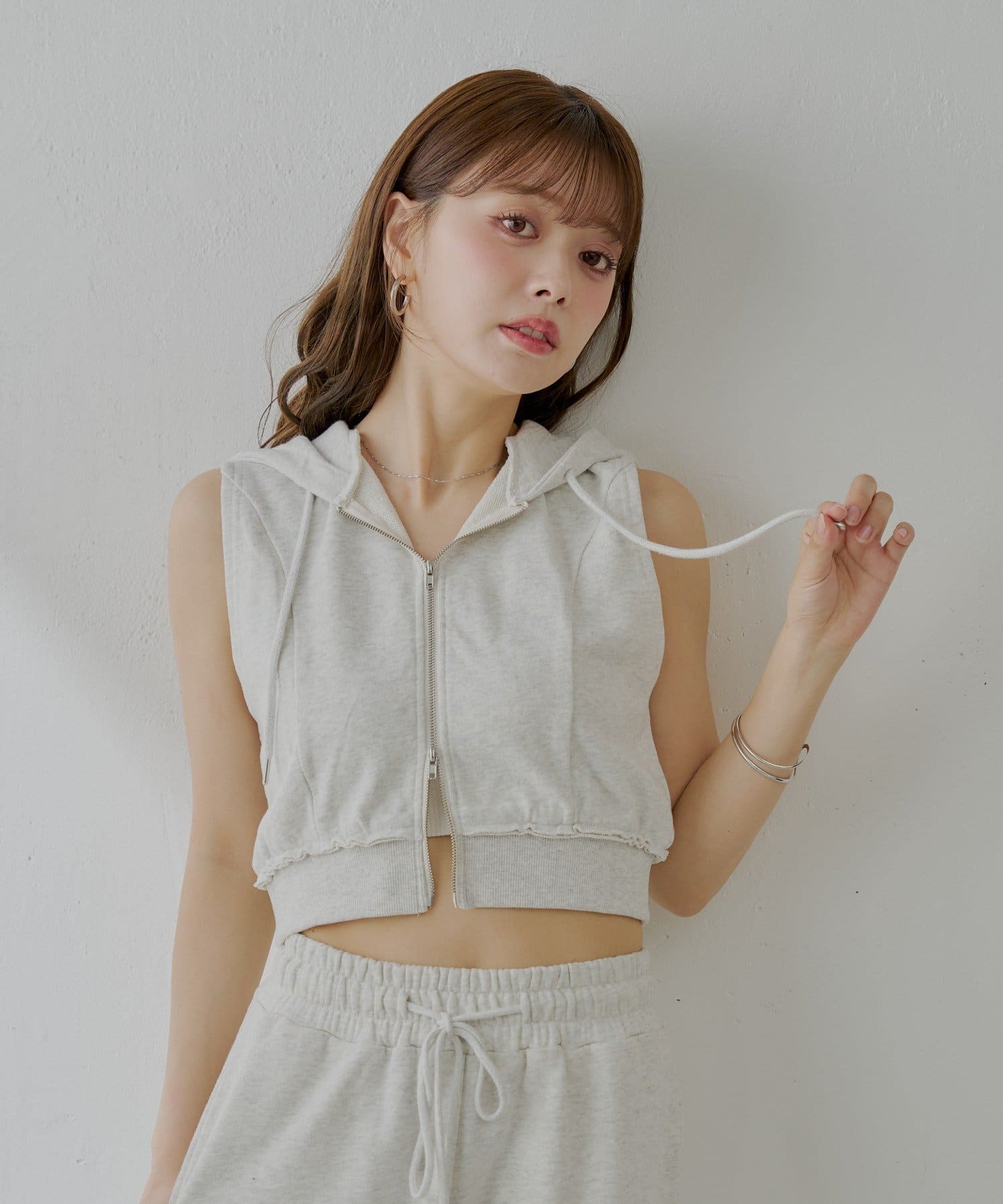 ・ヘルシーな肌見せで、女性らしさを演出してくれるノースリフードパーカー。