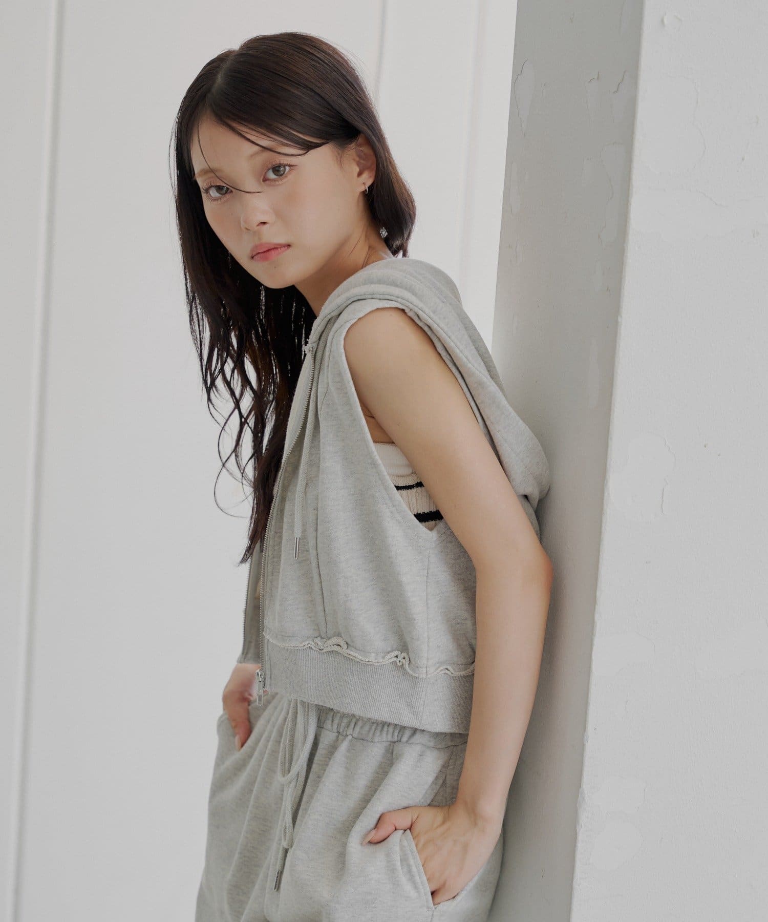 こなれ感漂うノースリフードパーカー登場!
