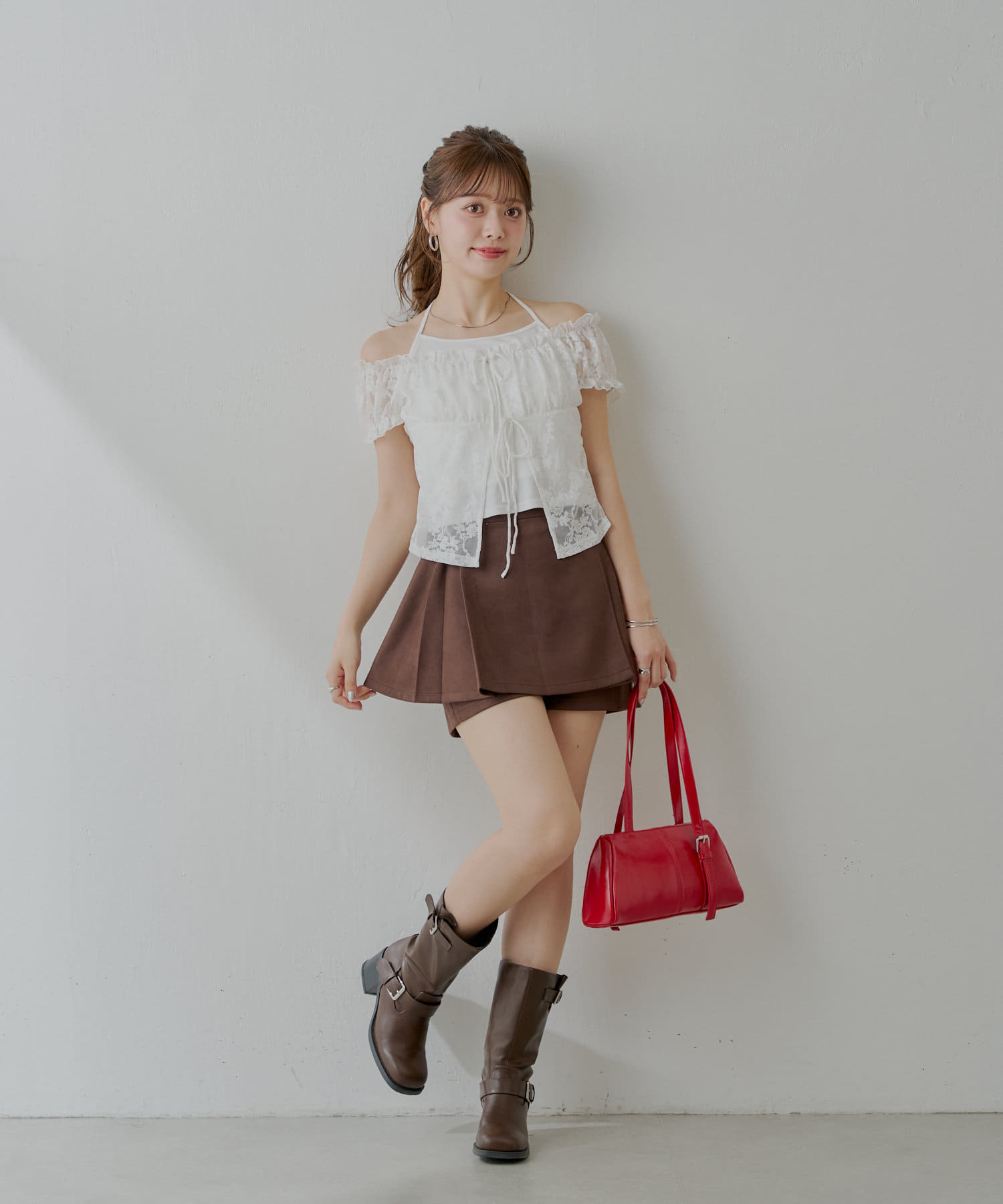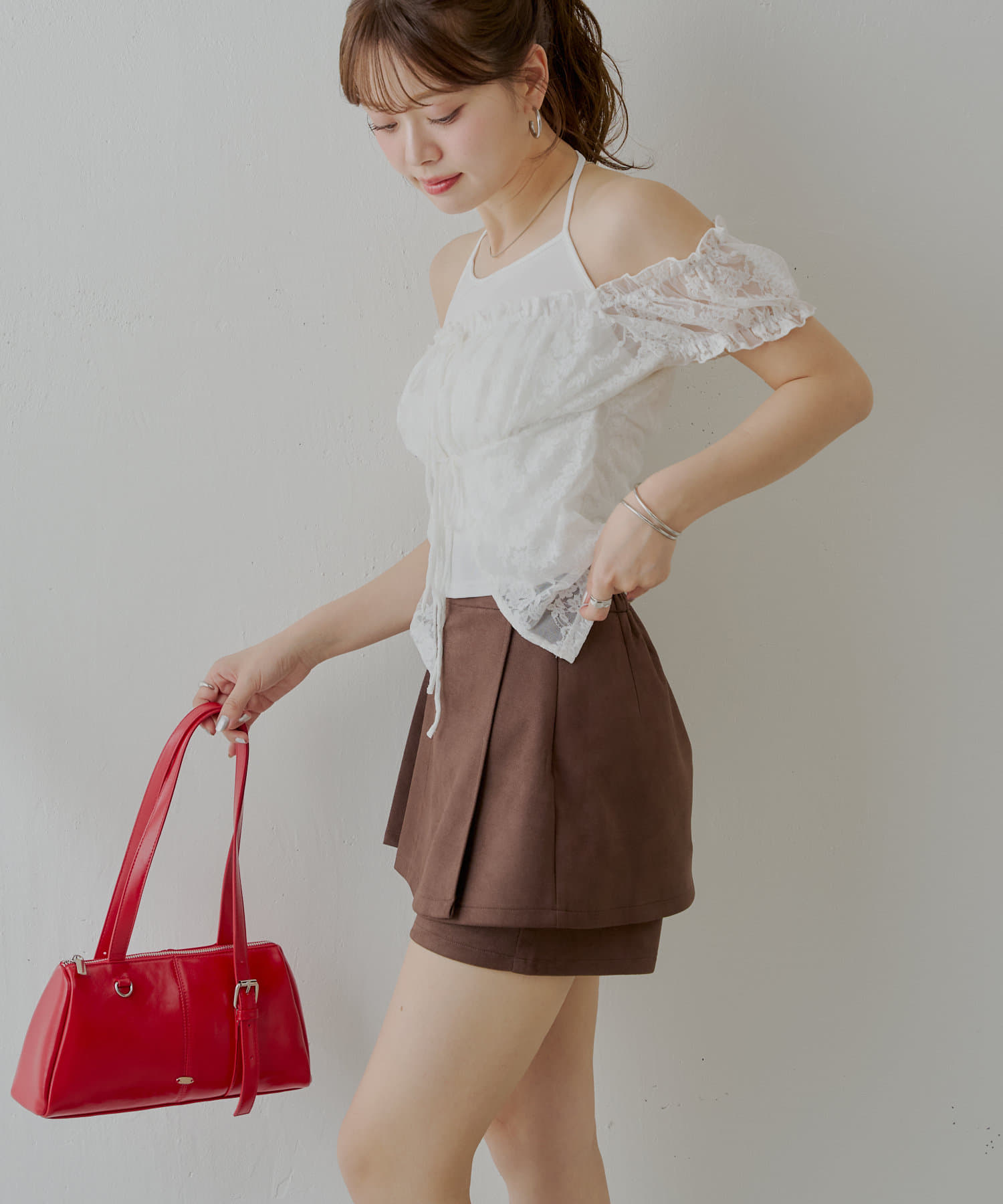 ・レースアイテムとの相性も抜群で、フェミニンな印象で着ていただけます。