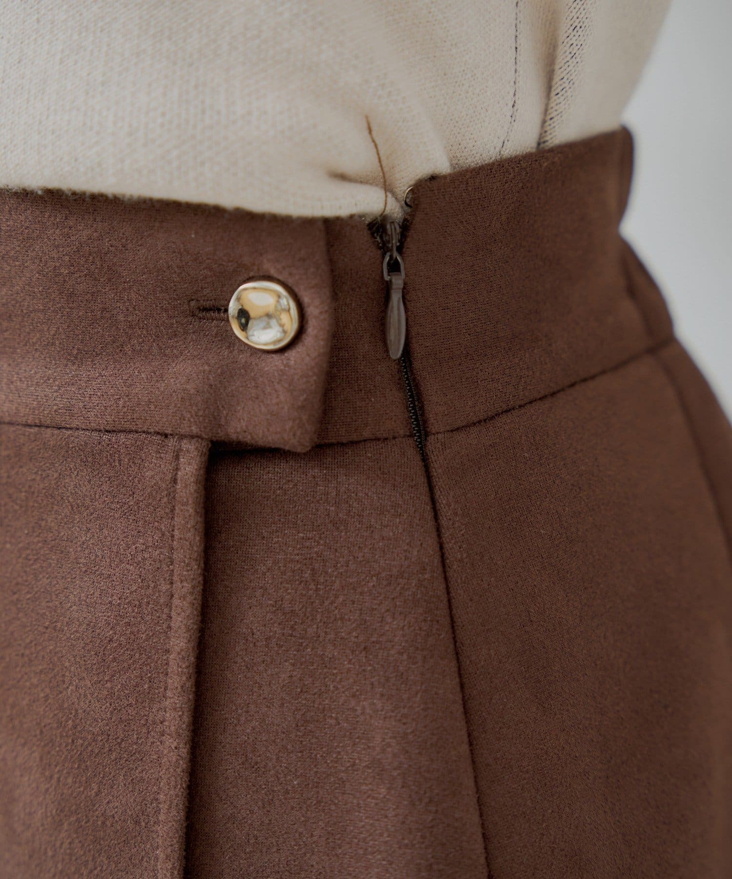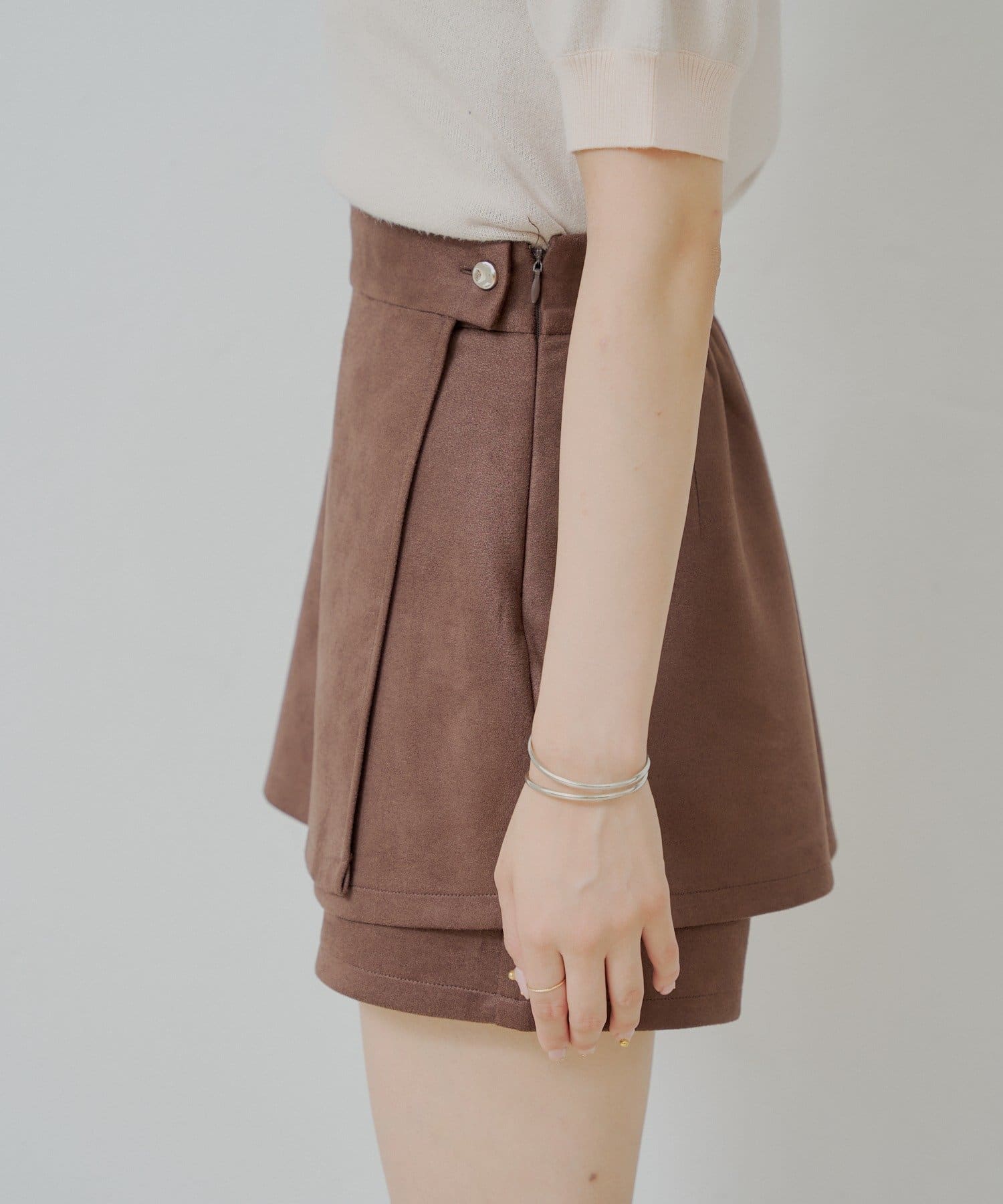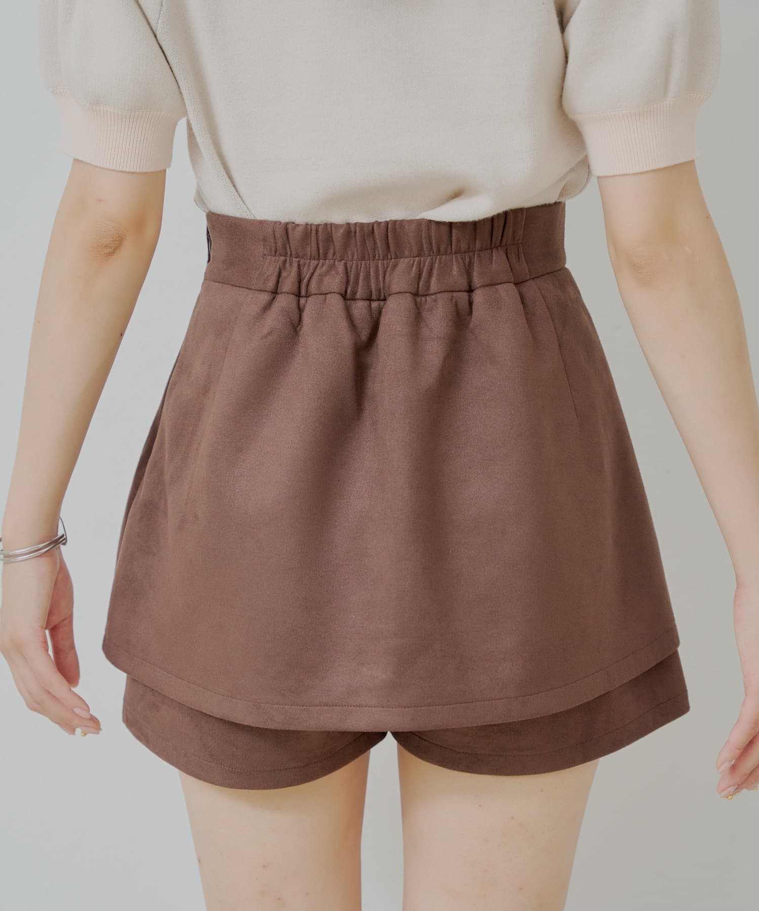 上品見えとスタイルアップを叶える、大人可愛いラップスウェードミニスカパン登場!