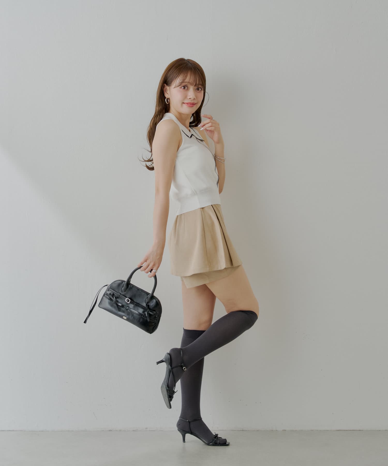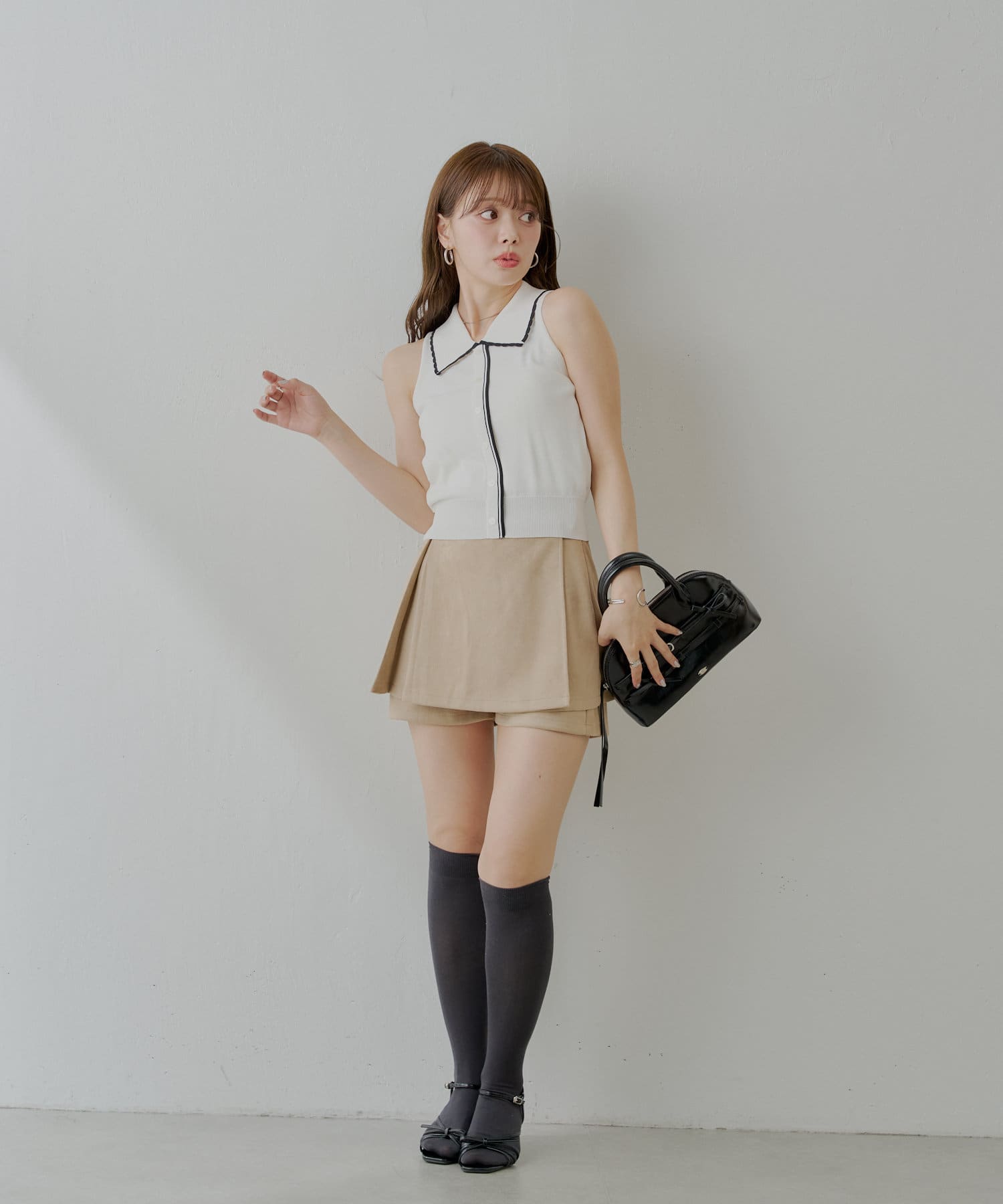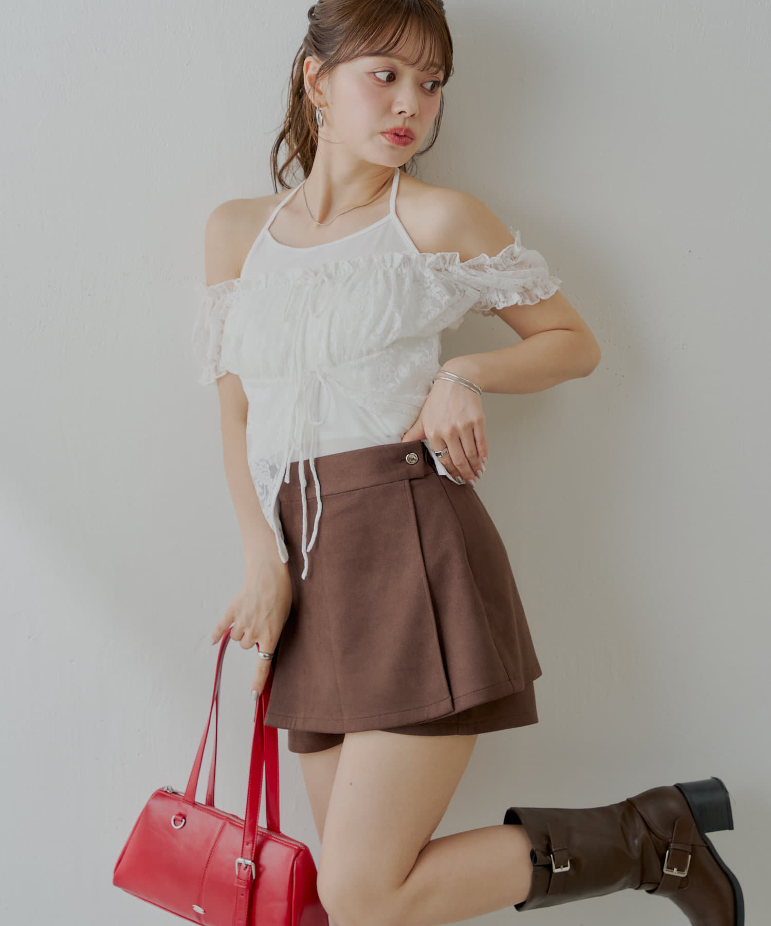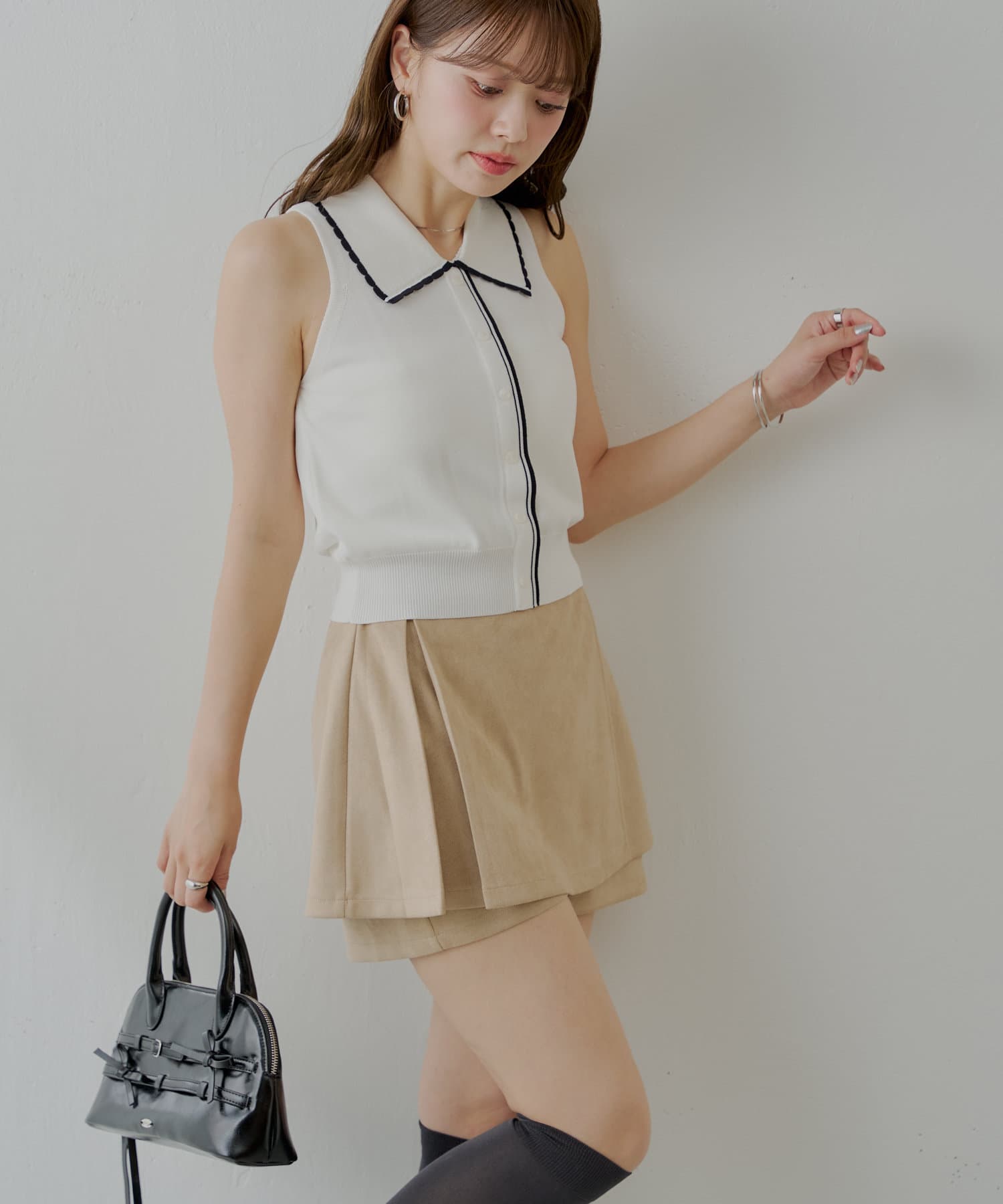 上品見えとスタイルアップを叶える、大人可愛いラップスウェードミニスカパン登場!