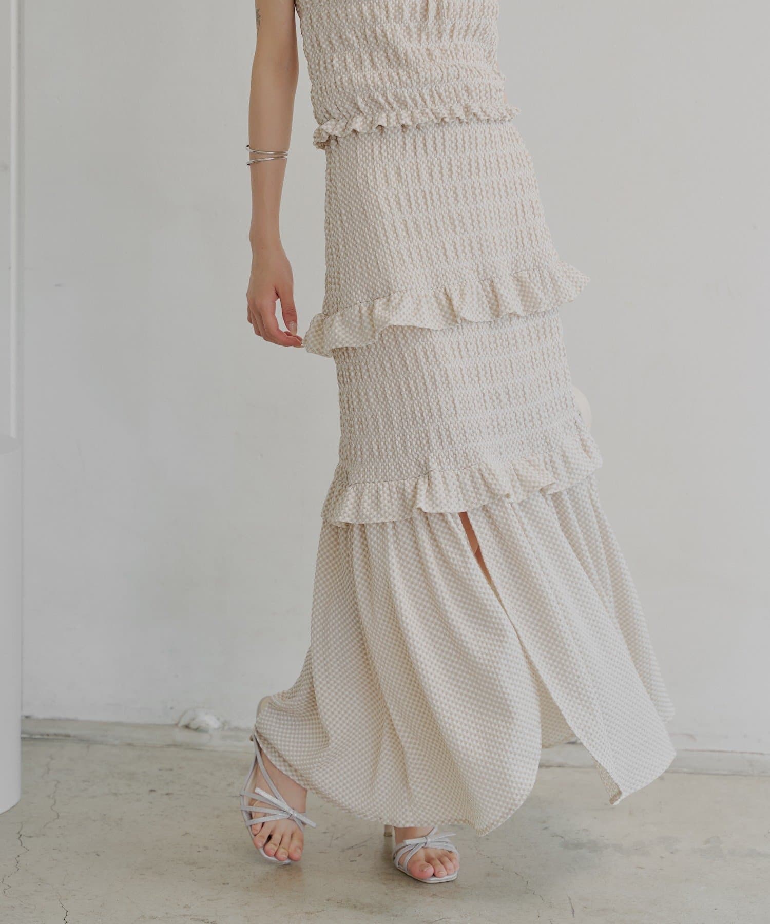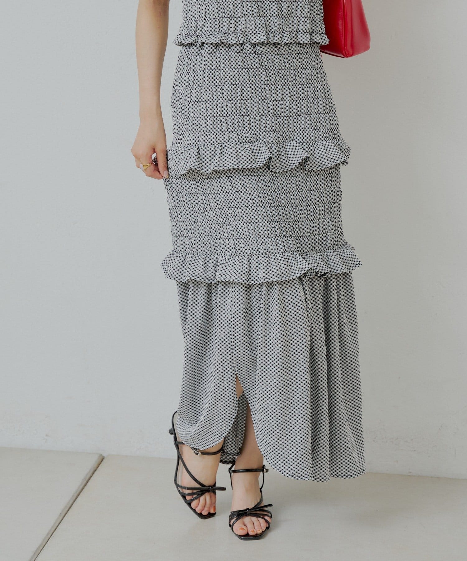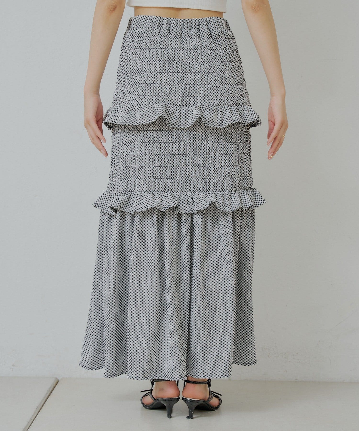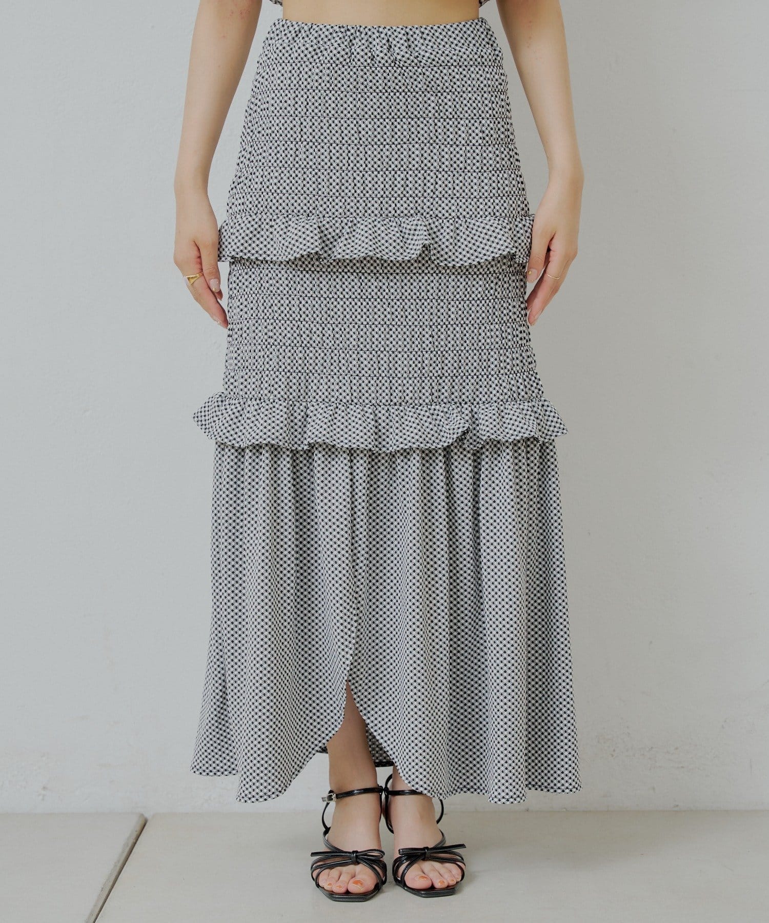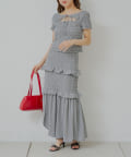 【Chico】ギンガムフリルデザインシャーリングスカート