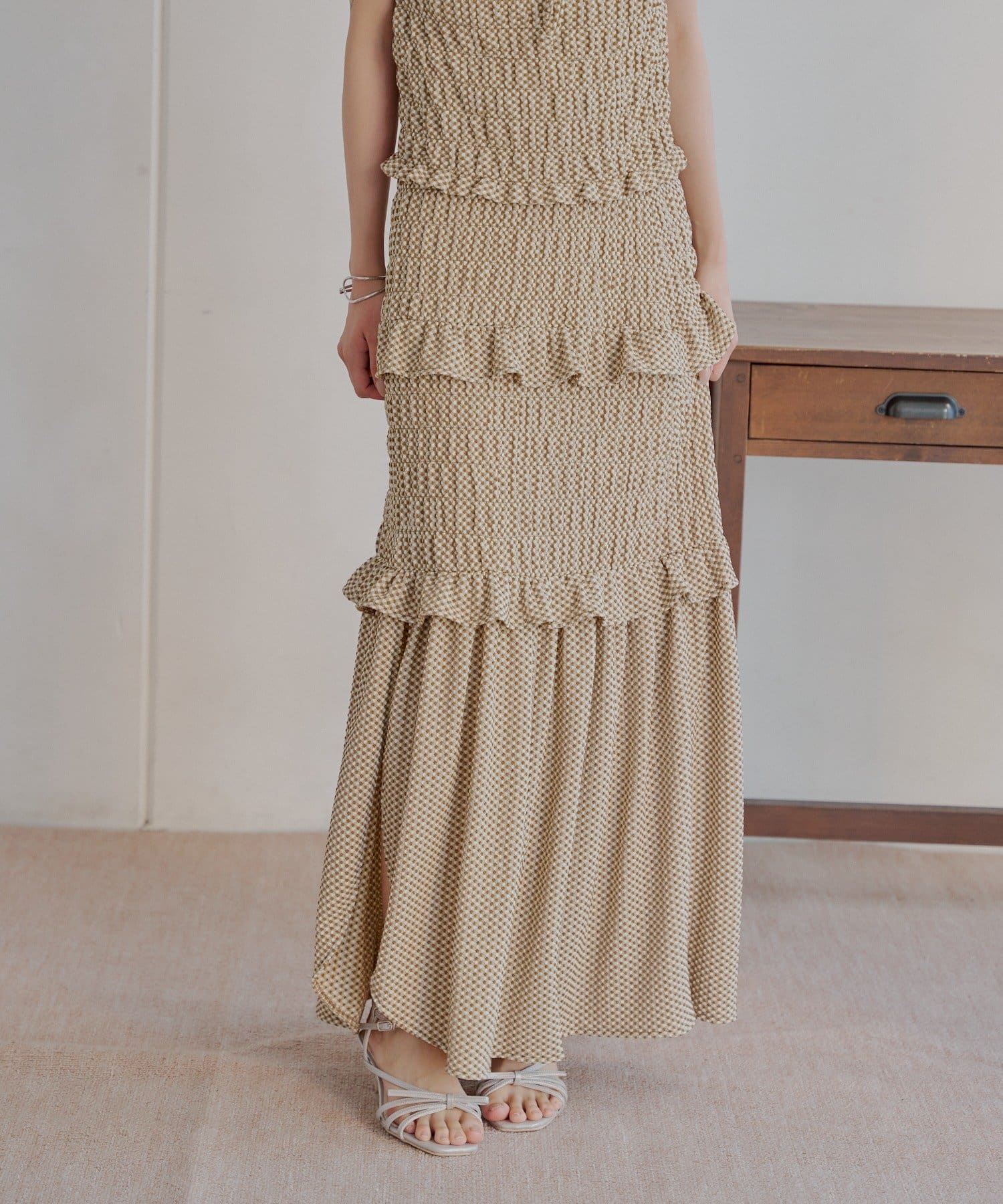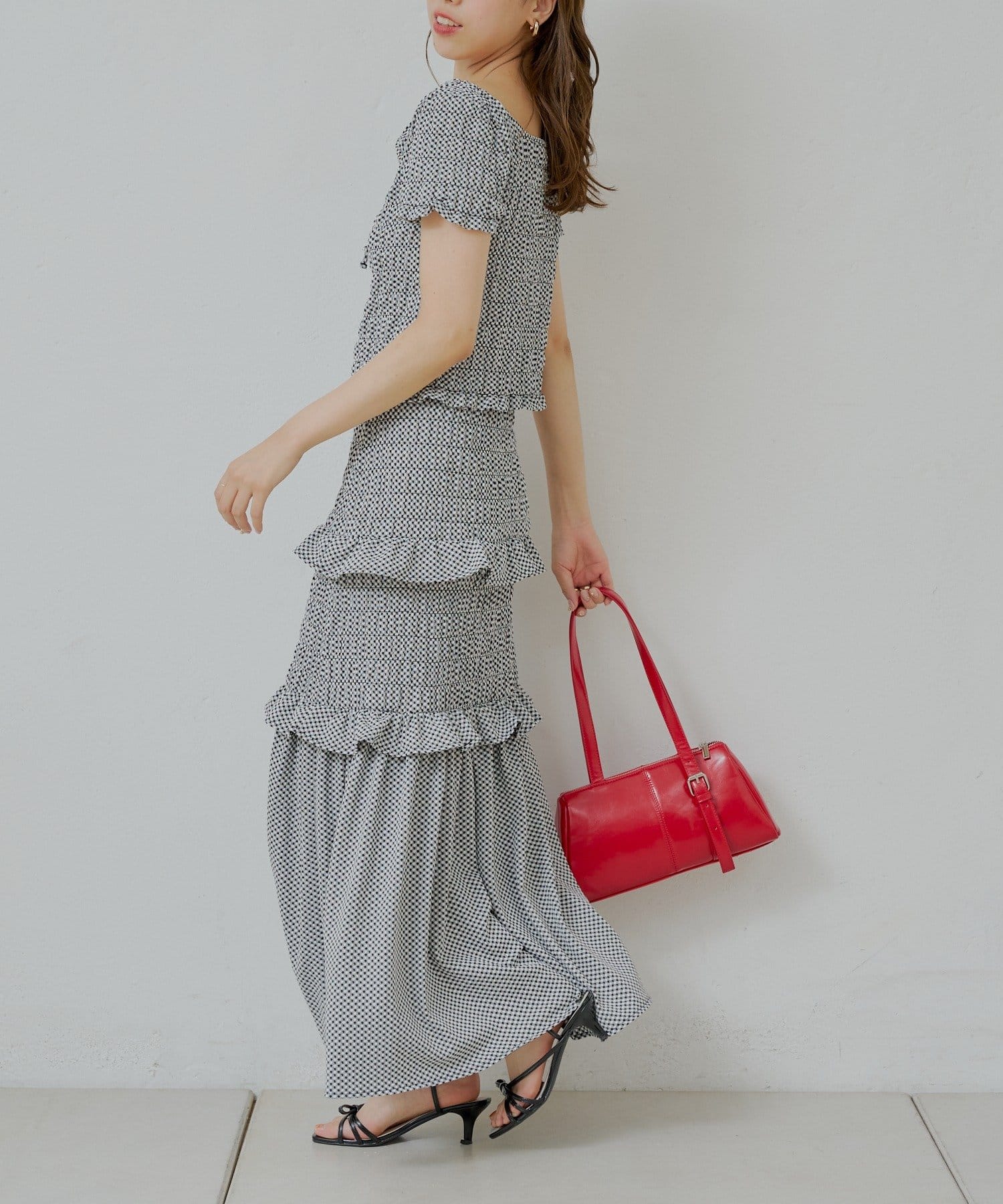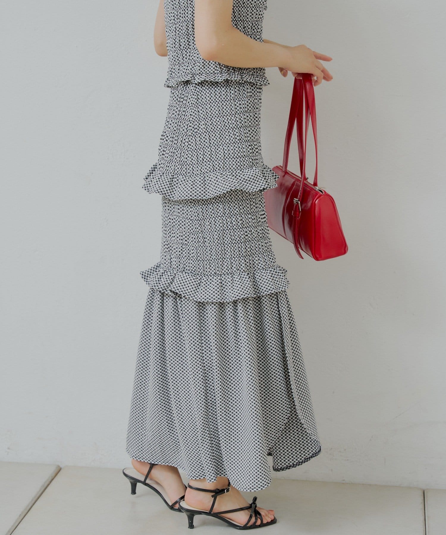 【Chico】ギンガムフリルデザインシャーリングスカート