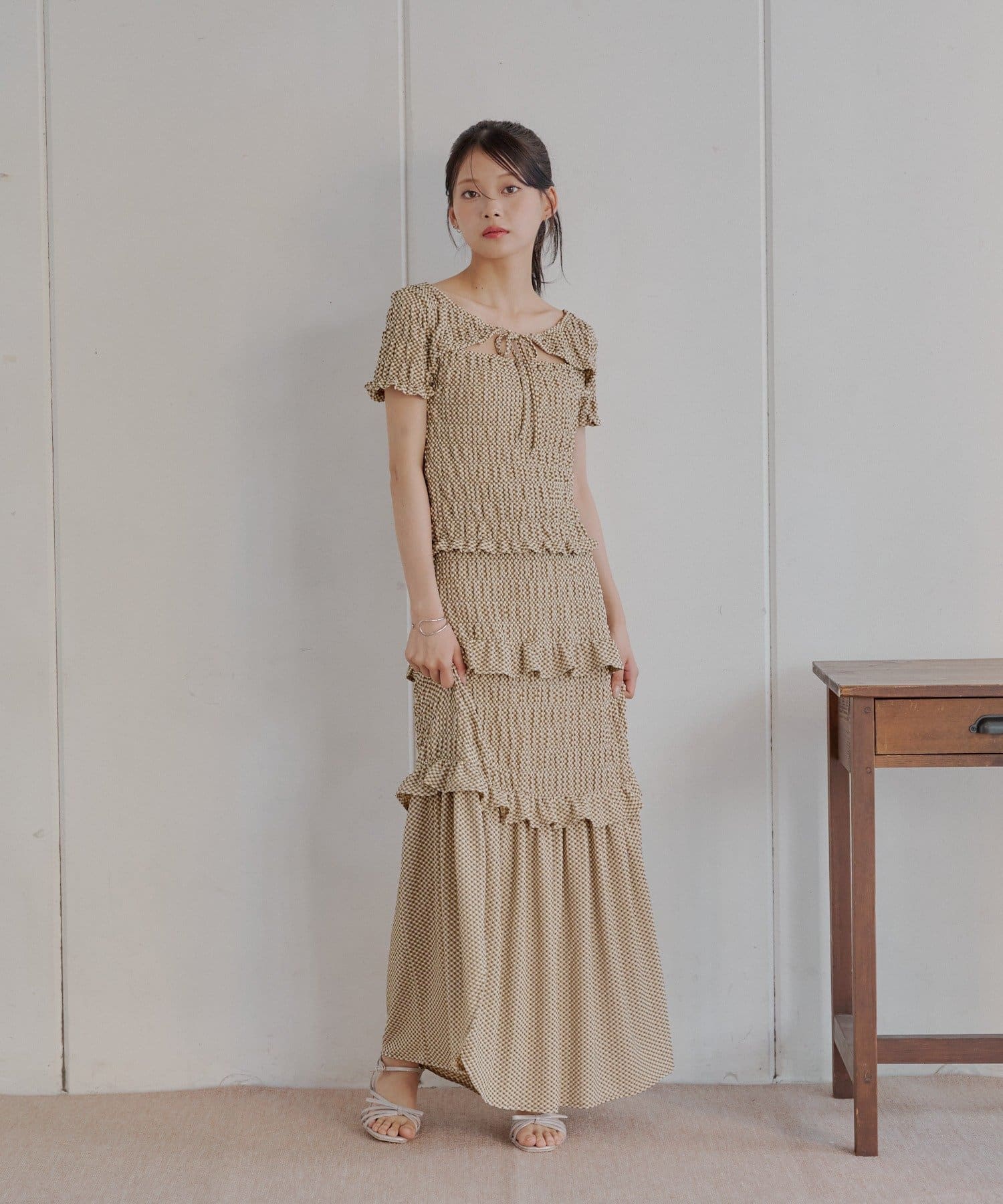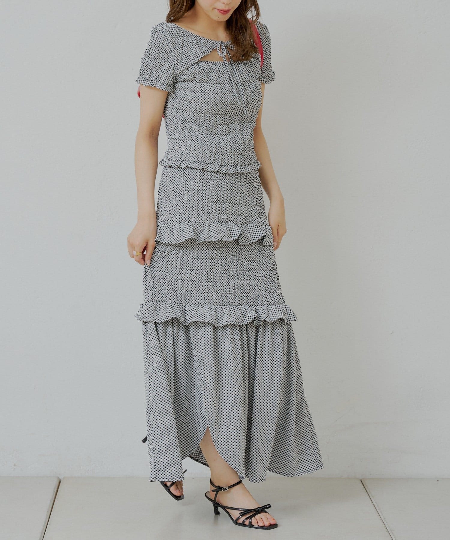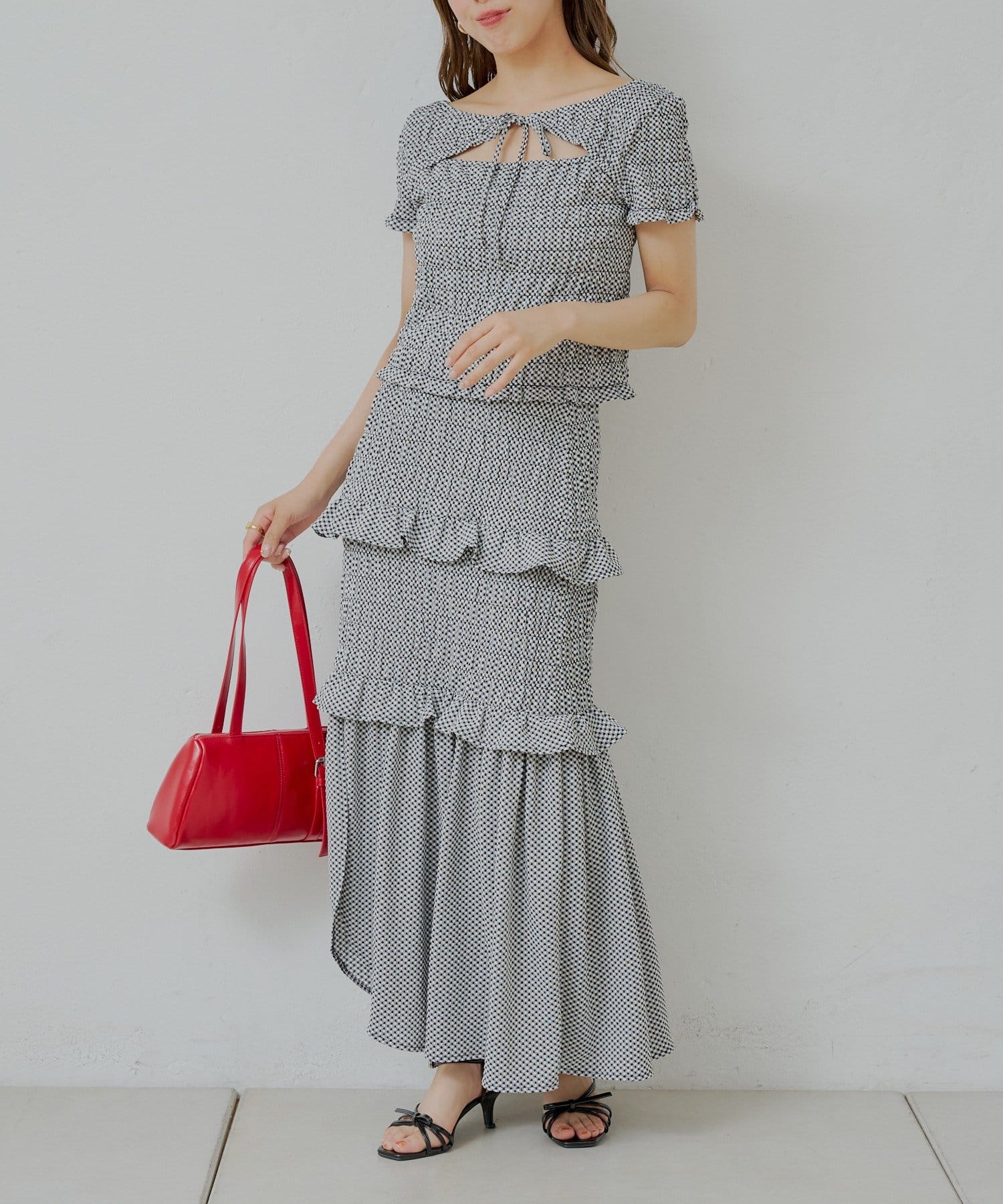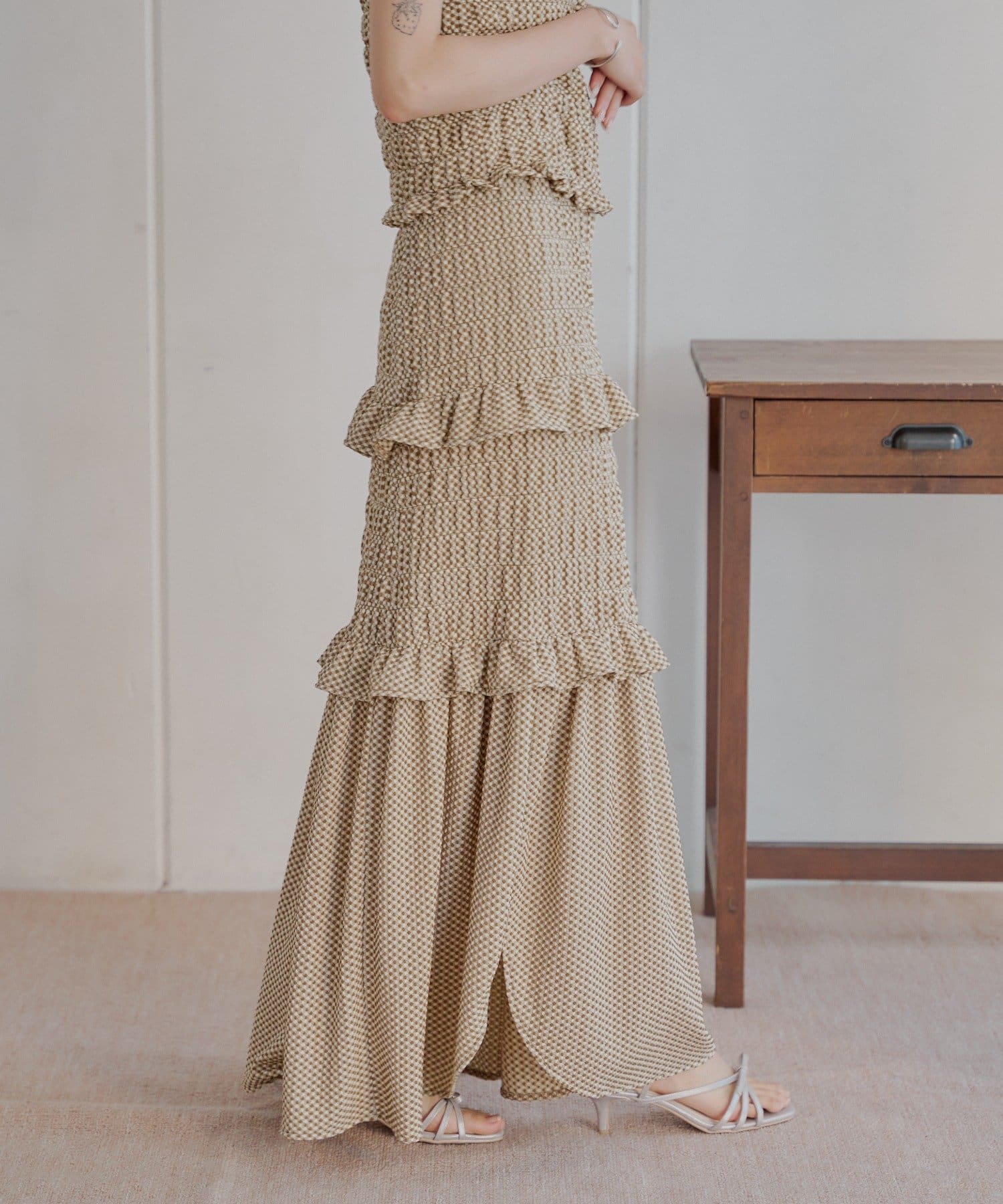 【Chico】ギンガムフリルデザインシャーリングスカート
