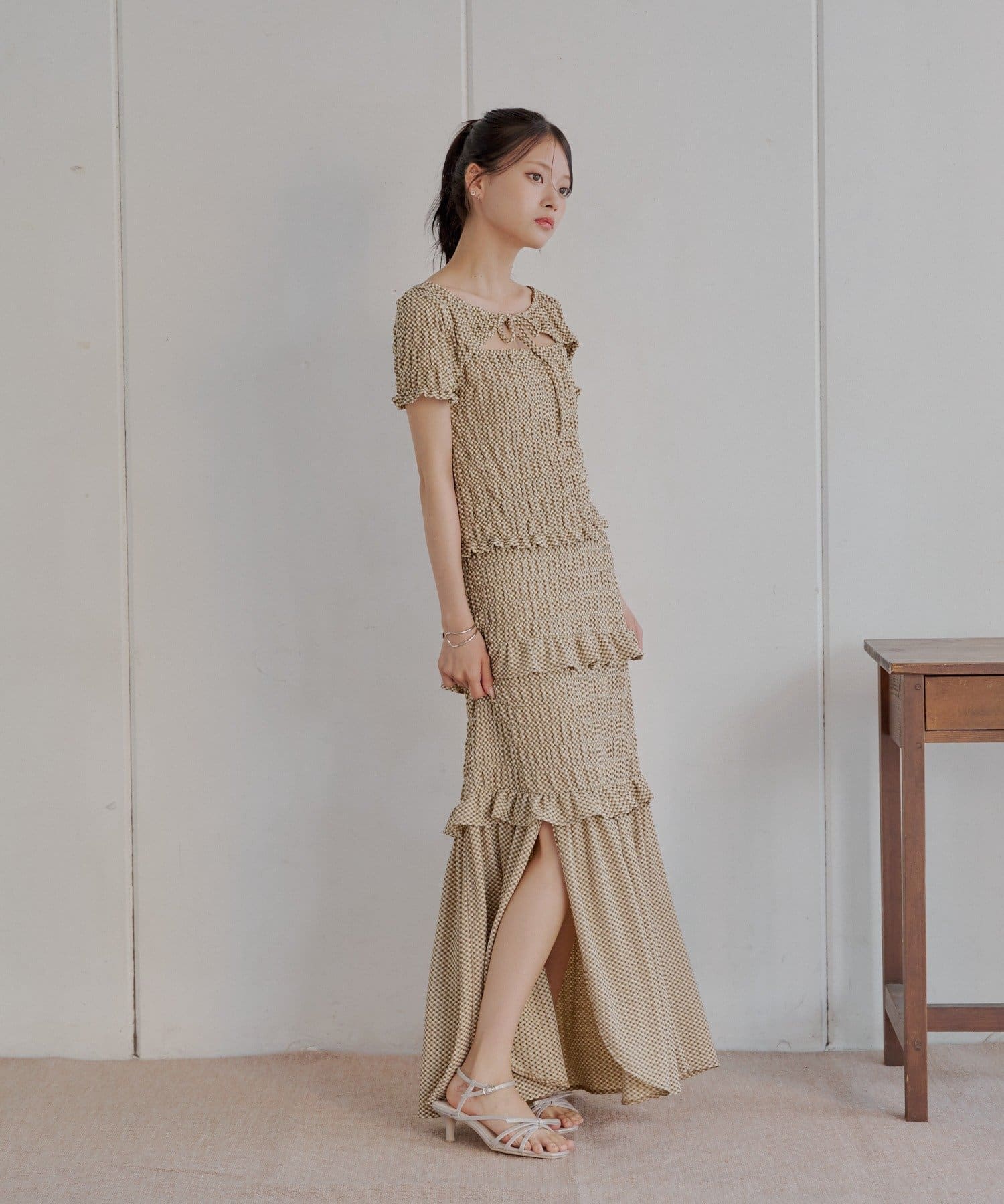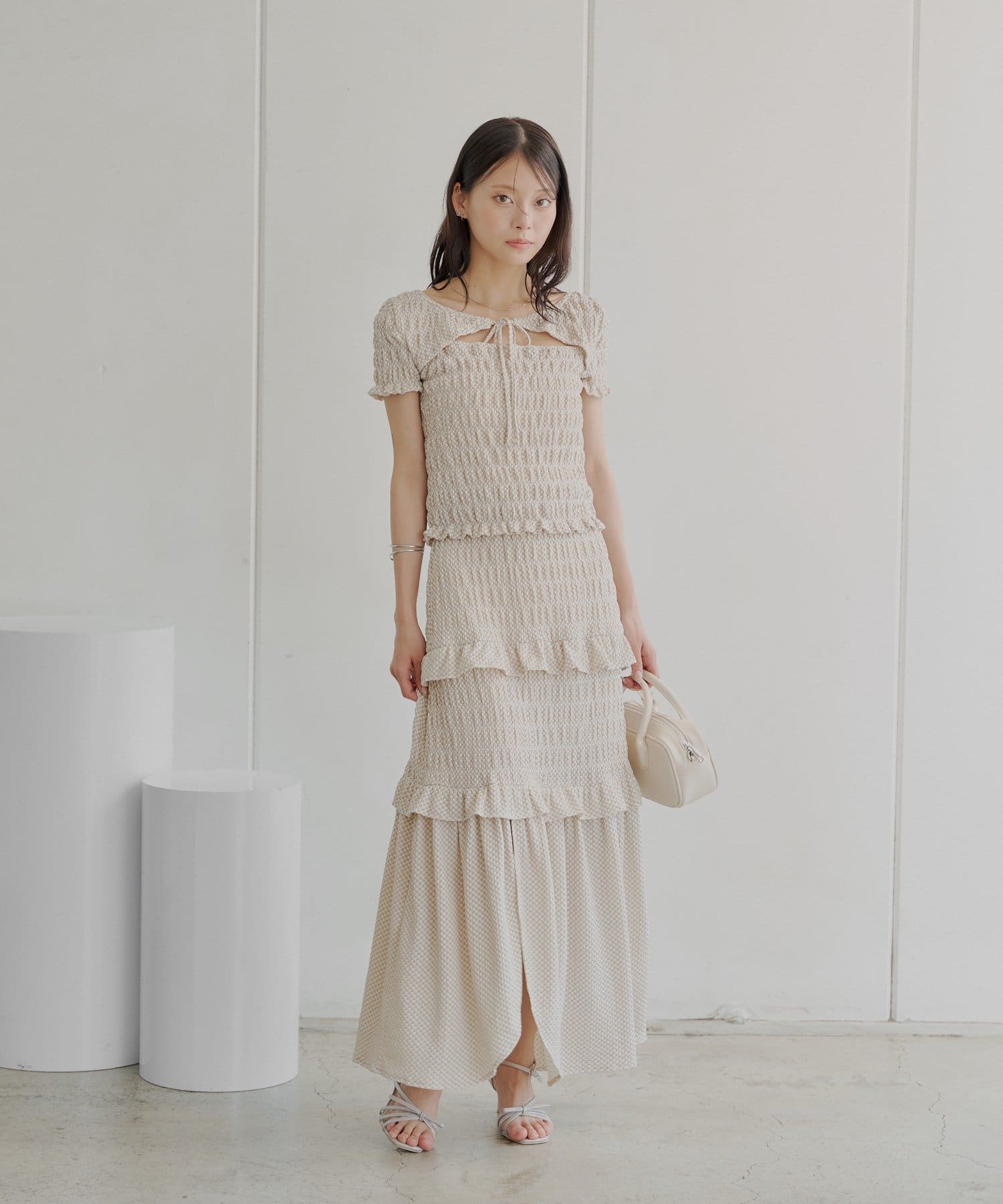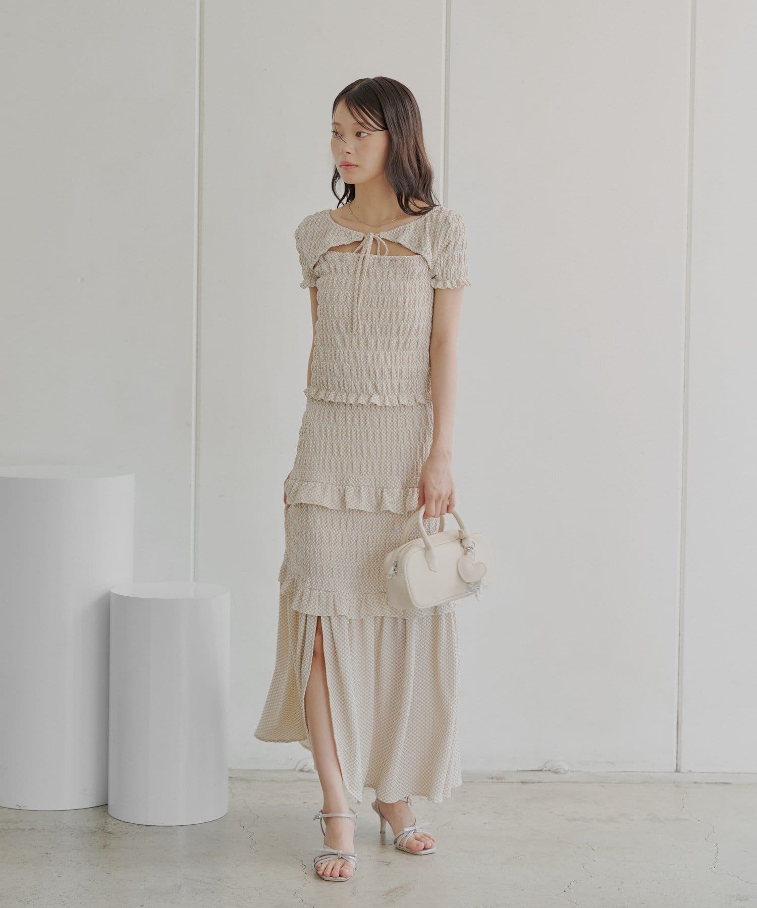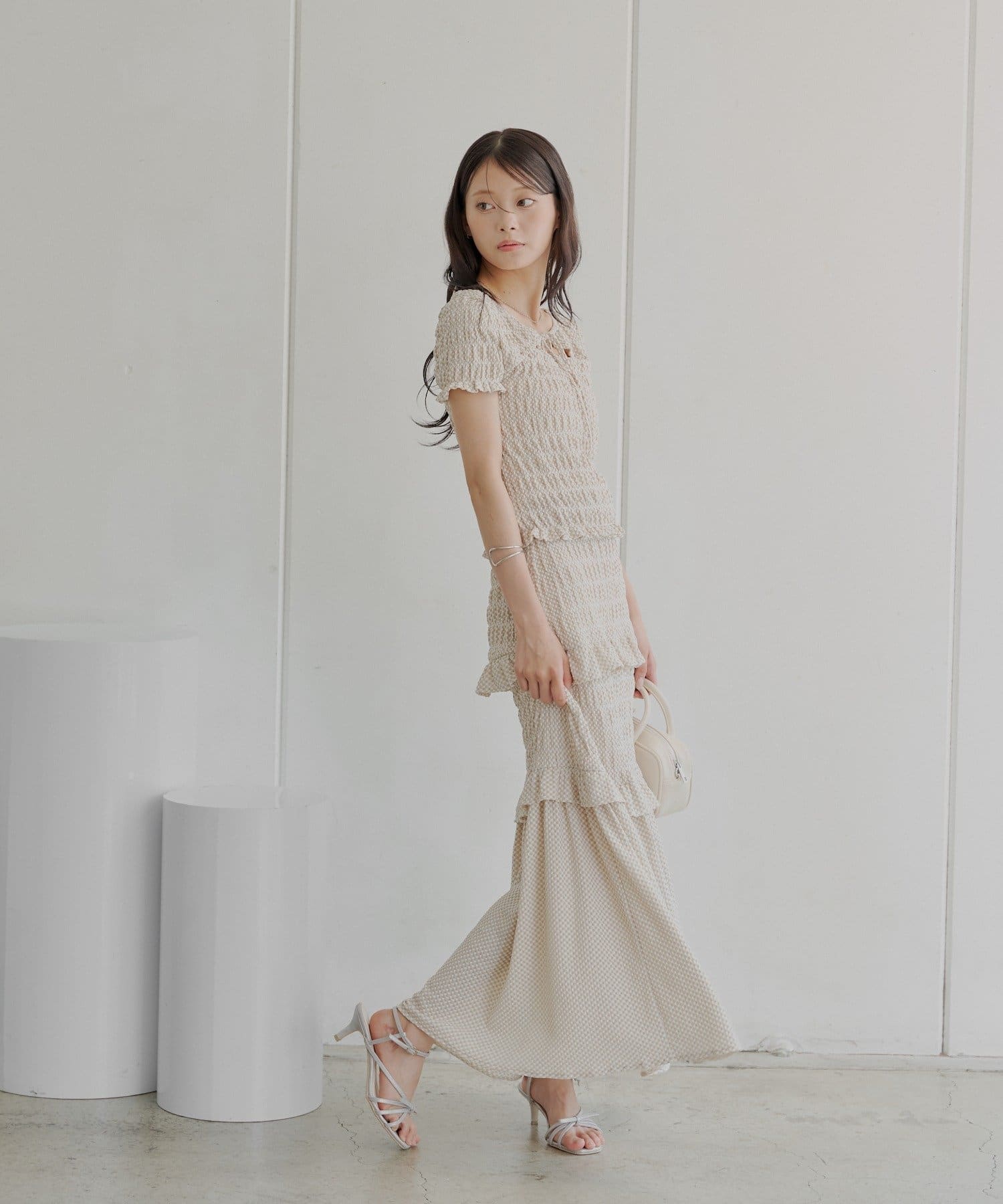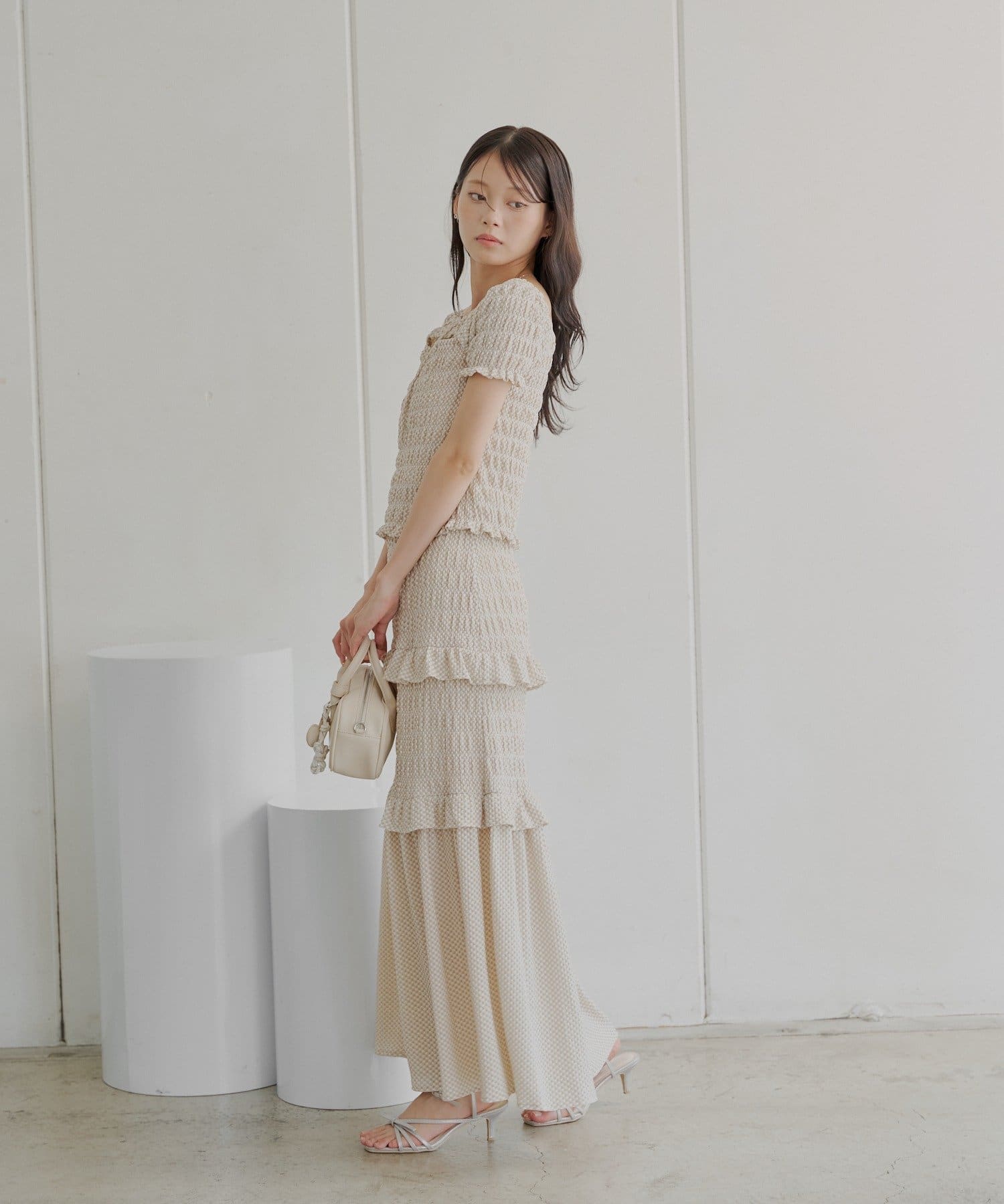 ・贅沢にあしらわれたフリルが、フェミニンで華やかな印象を与えます。