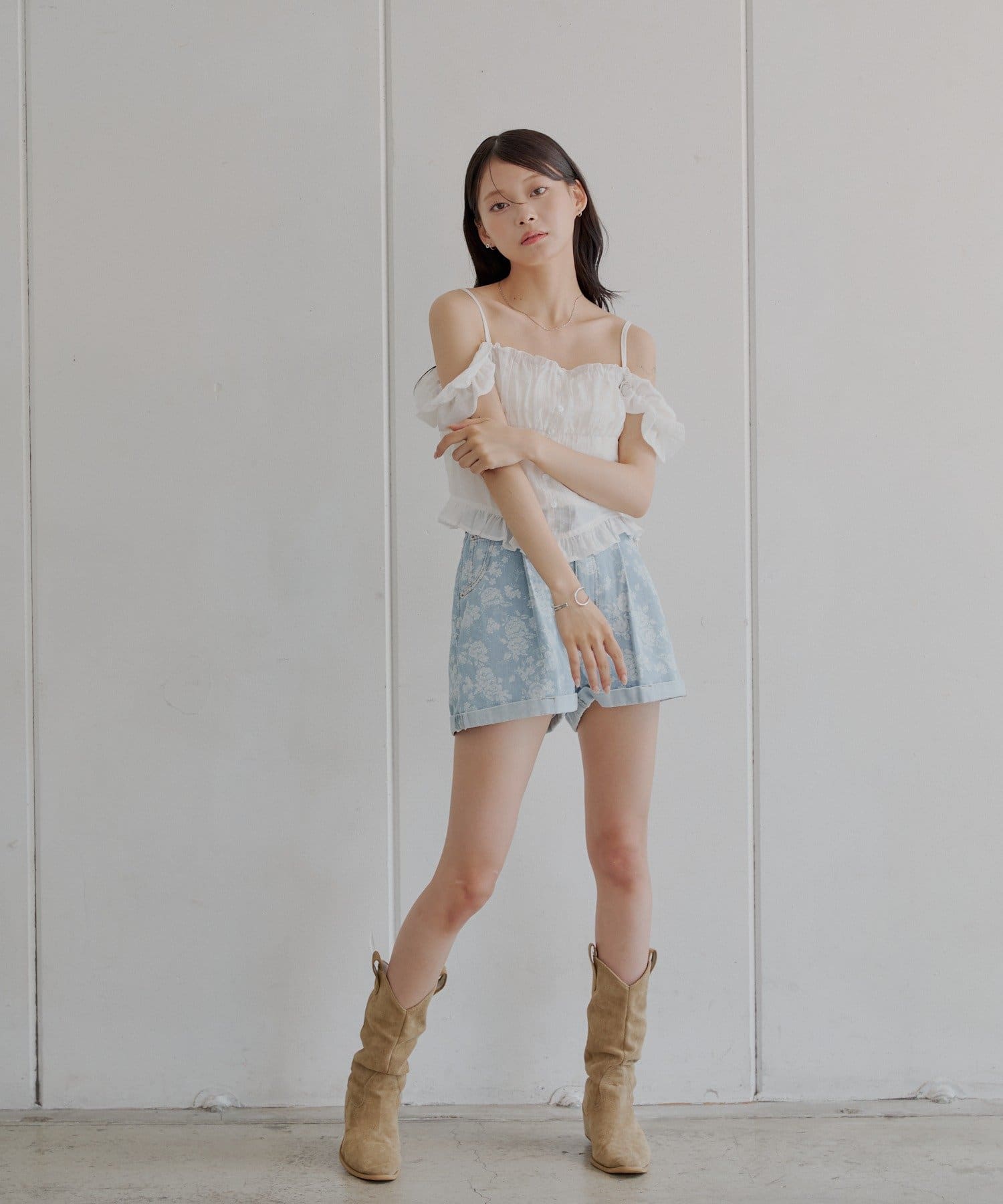 ・オフショルダートップスと合わせて、ヘルシーな肌見せコーデもおすすめです!