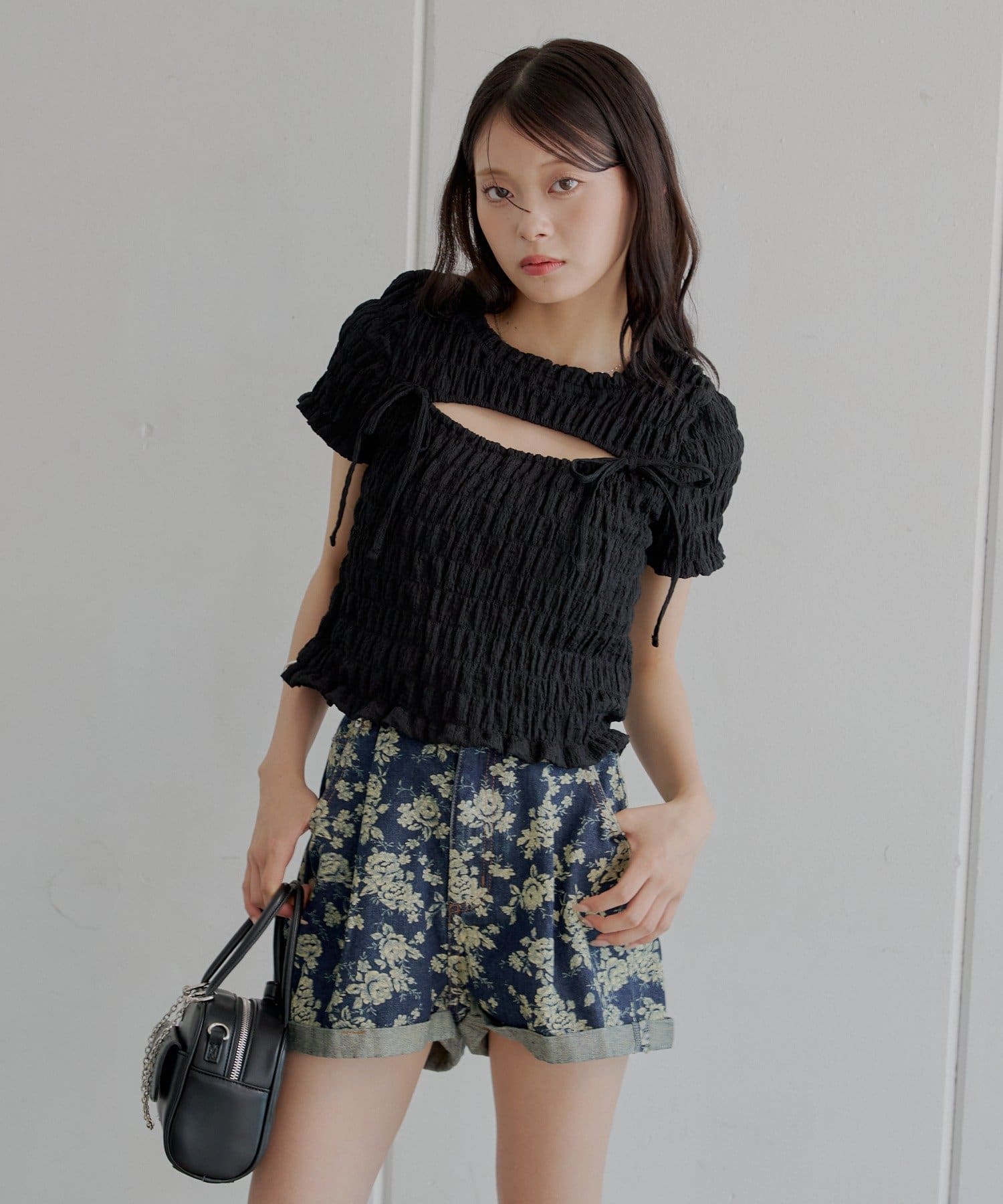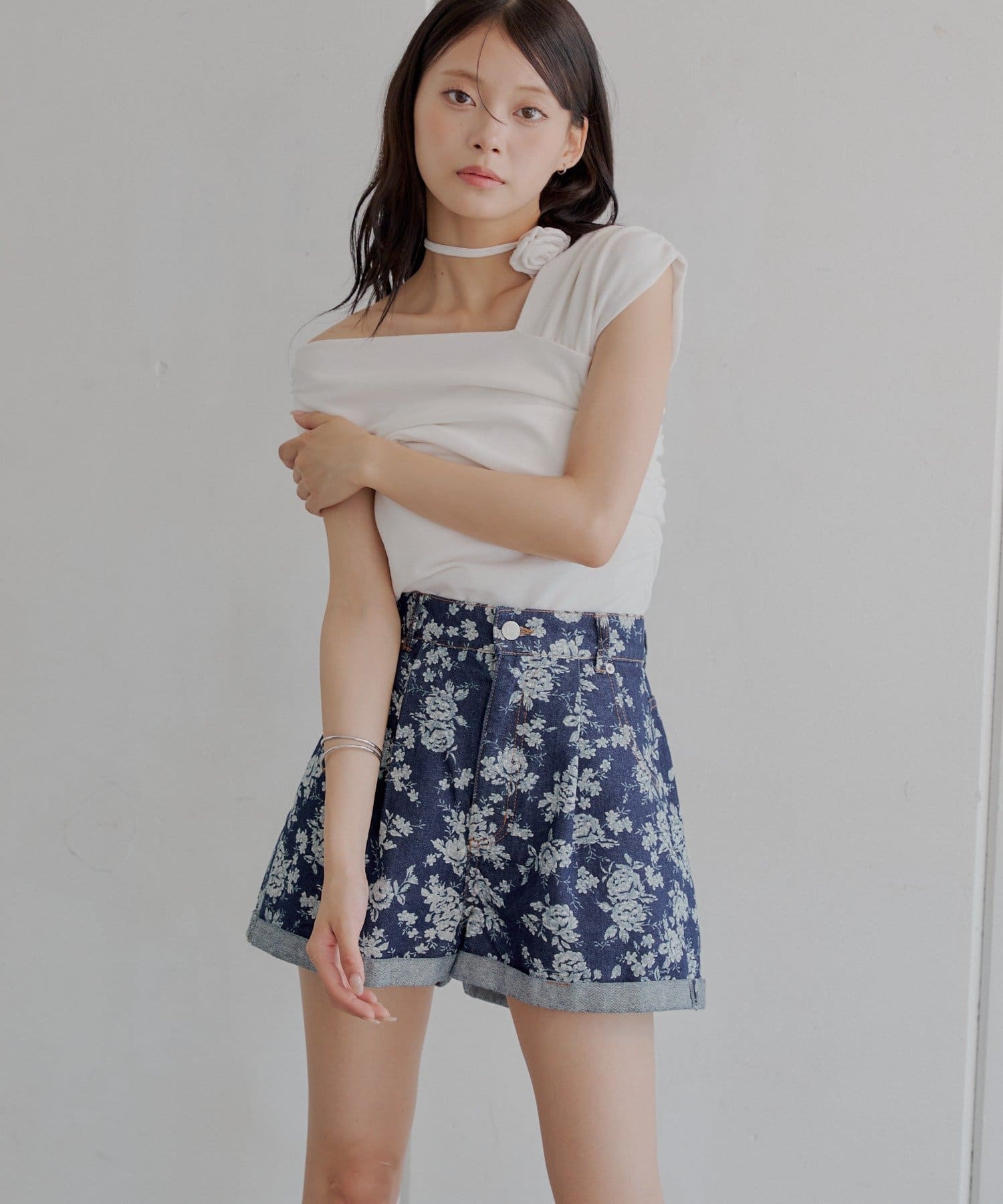 ・シンプルなトップスと合わせると、花柄が引き立ちます。