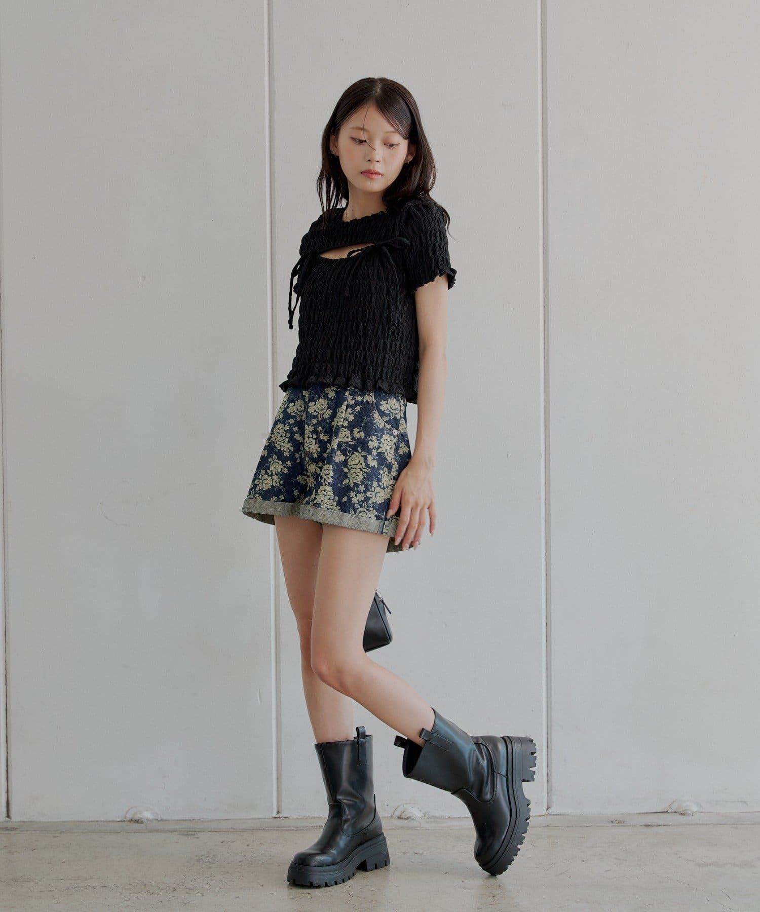 ・ タックが入っているので気になる太もも周りをカバーしつつ、程よいゆとりで動きやすさも◎。