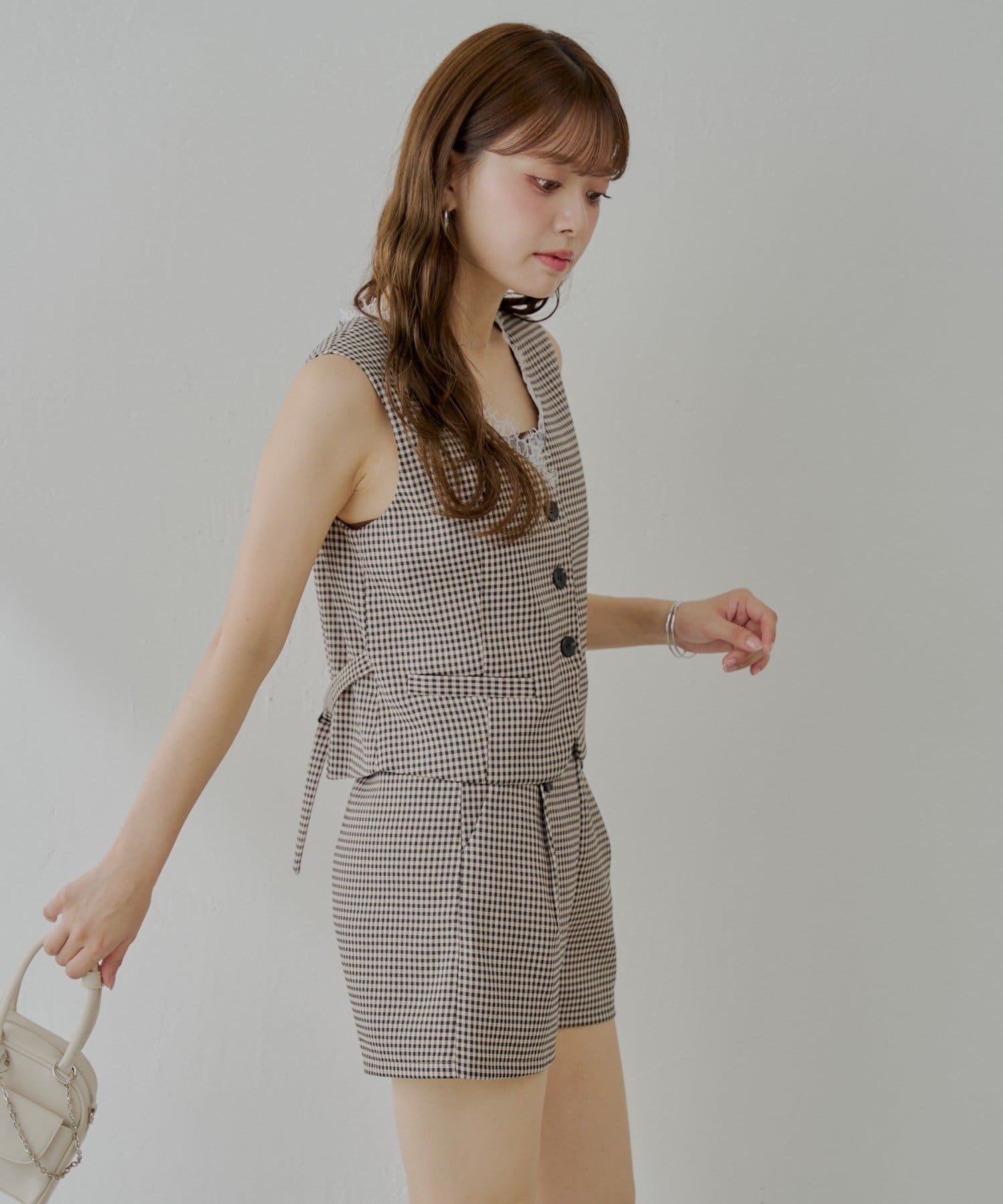 ・同素材のベストと合わせてセットアップ風にして着るのがおすすめです!