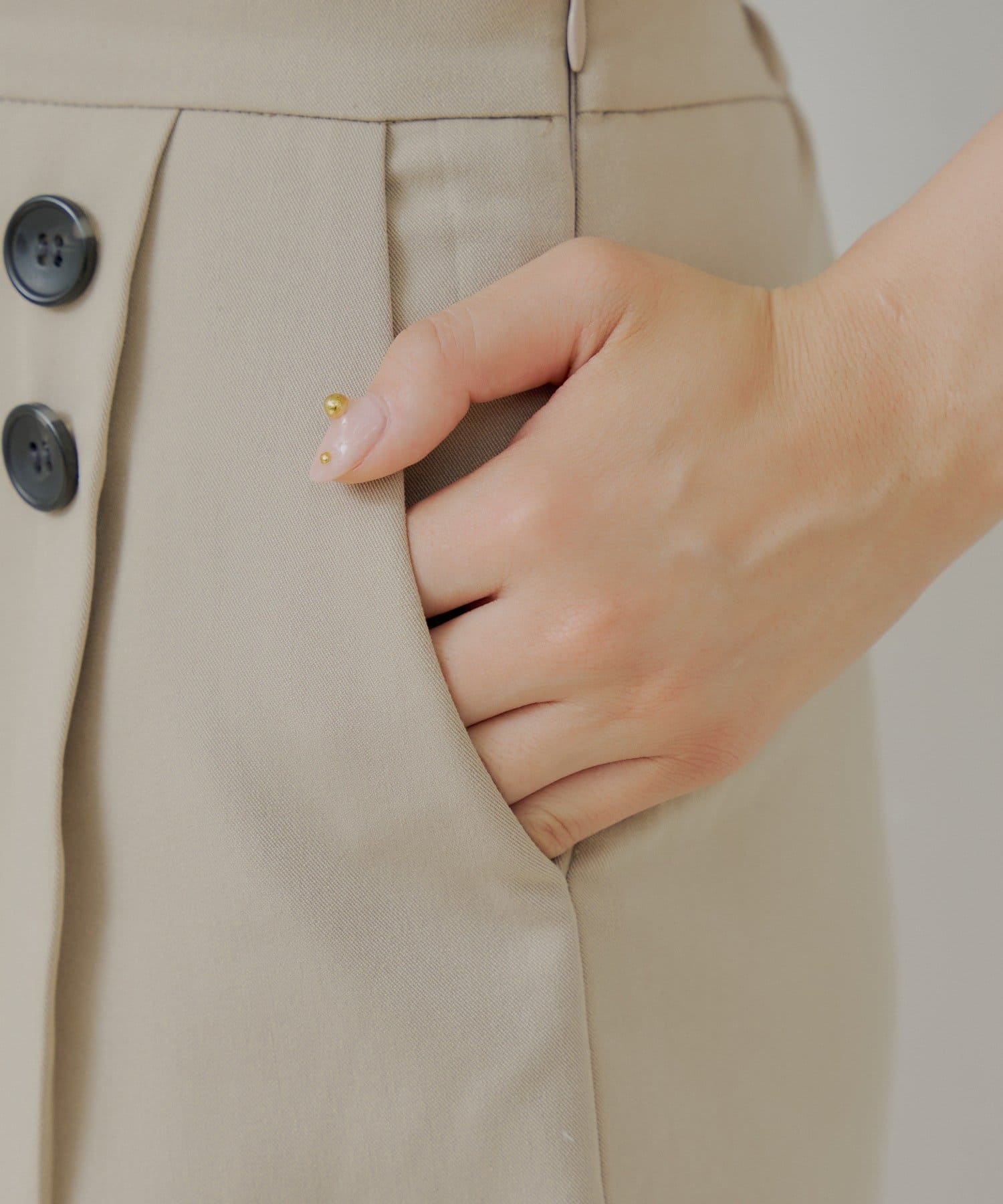 ・フロントにあしらわれたダブルボタンが、コーディネートにアクセントをプラスしてくれます。