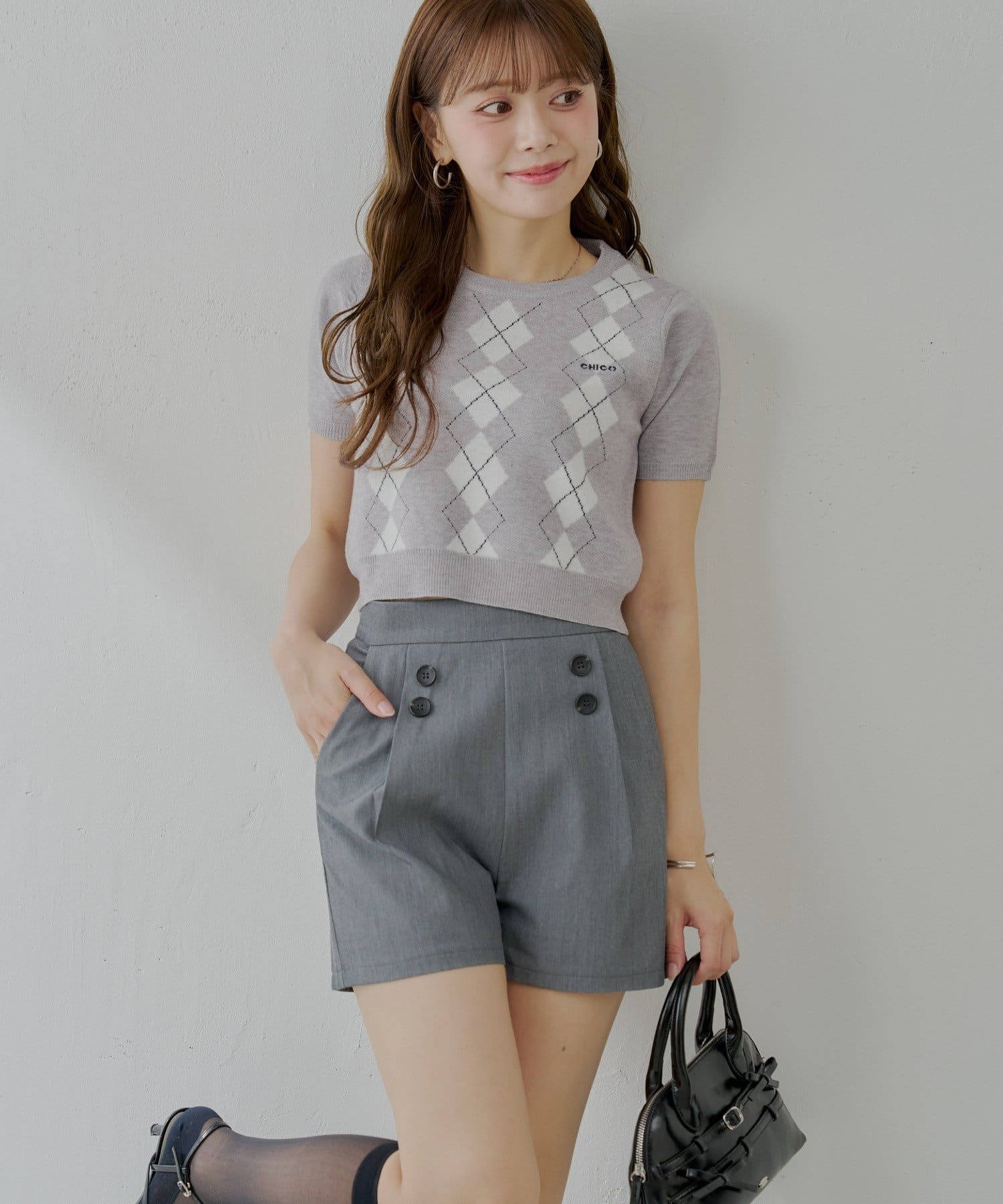 【Chico】サイドボタンデザインショートパンツ