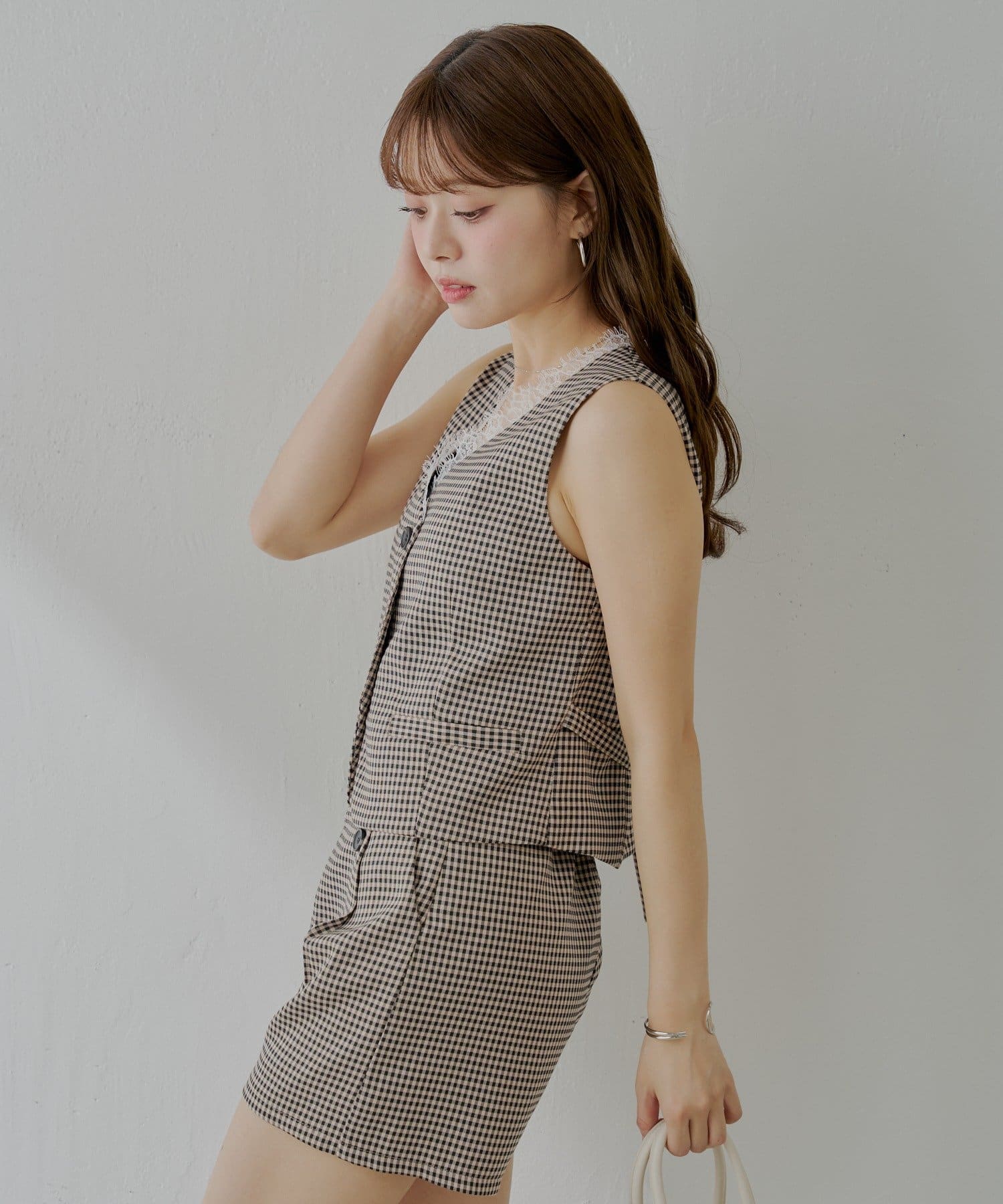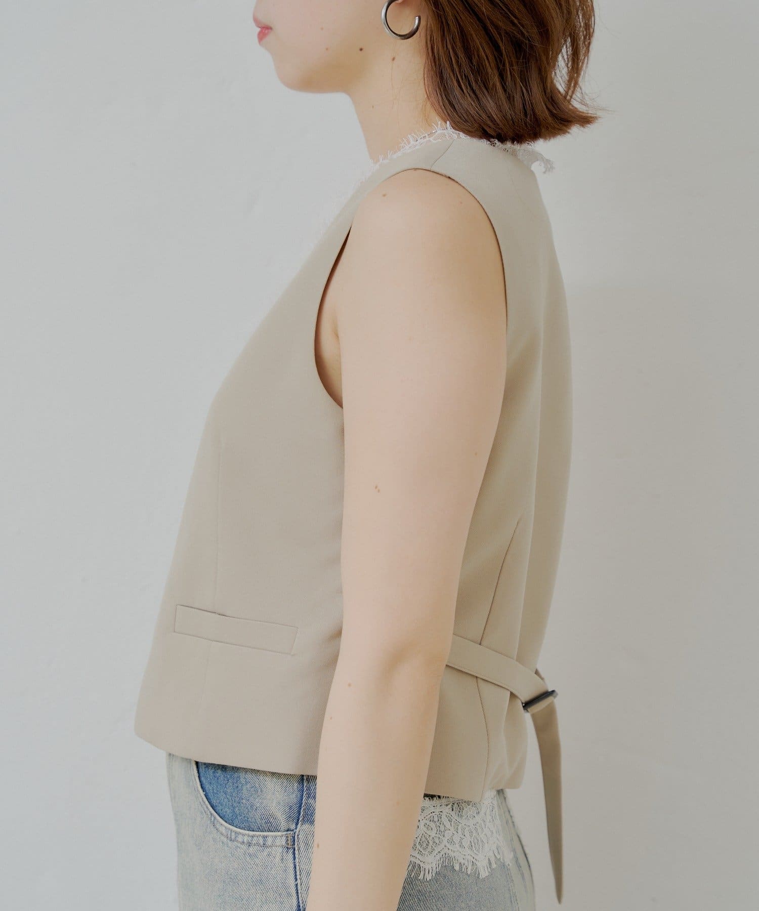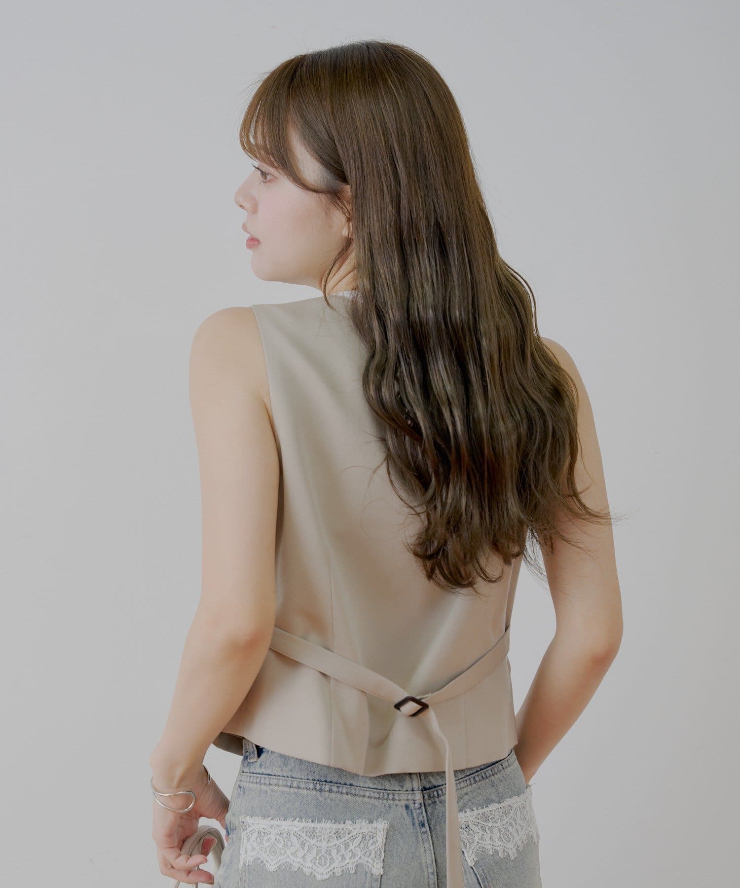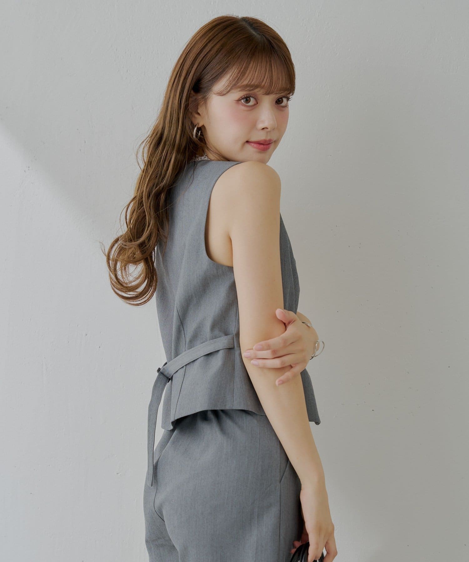 ・バックにはベルトが付いており、お好みのシルエットで着用いただけます。
