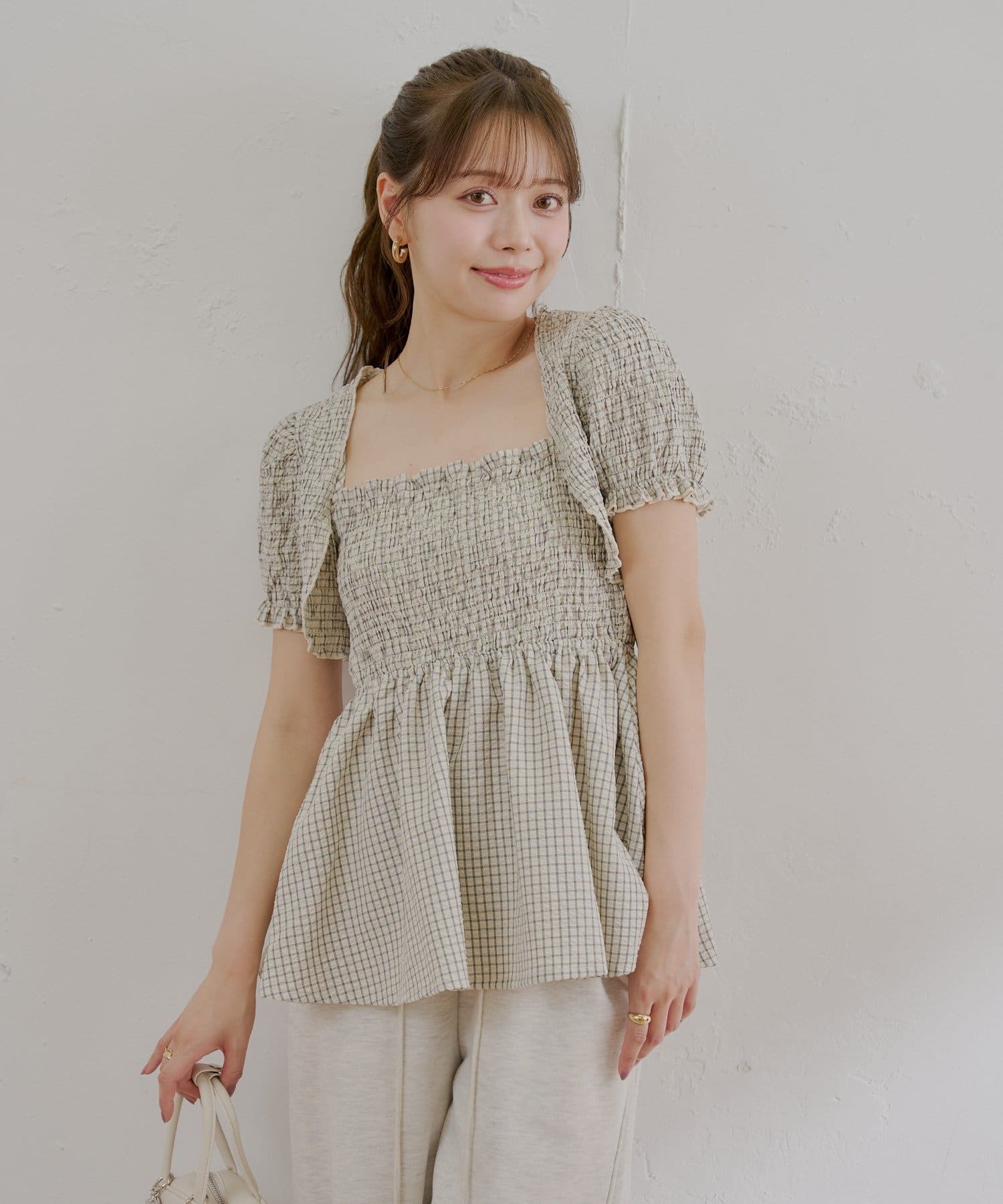 ふんわりとしたシルエットと繊細なディテールが魅力のペプラムキャミ+ボレロセット