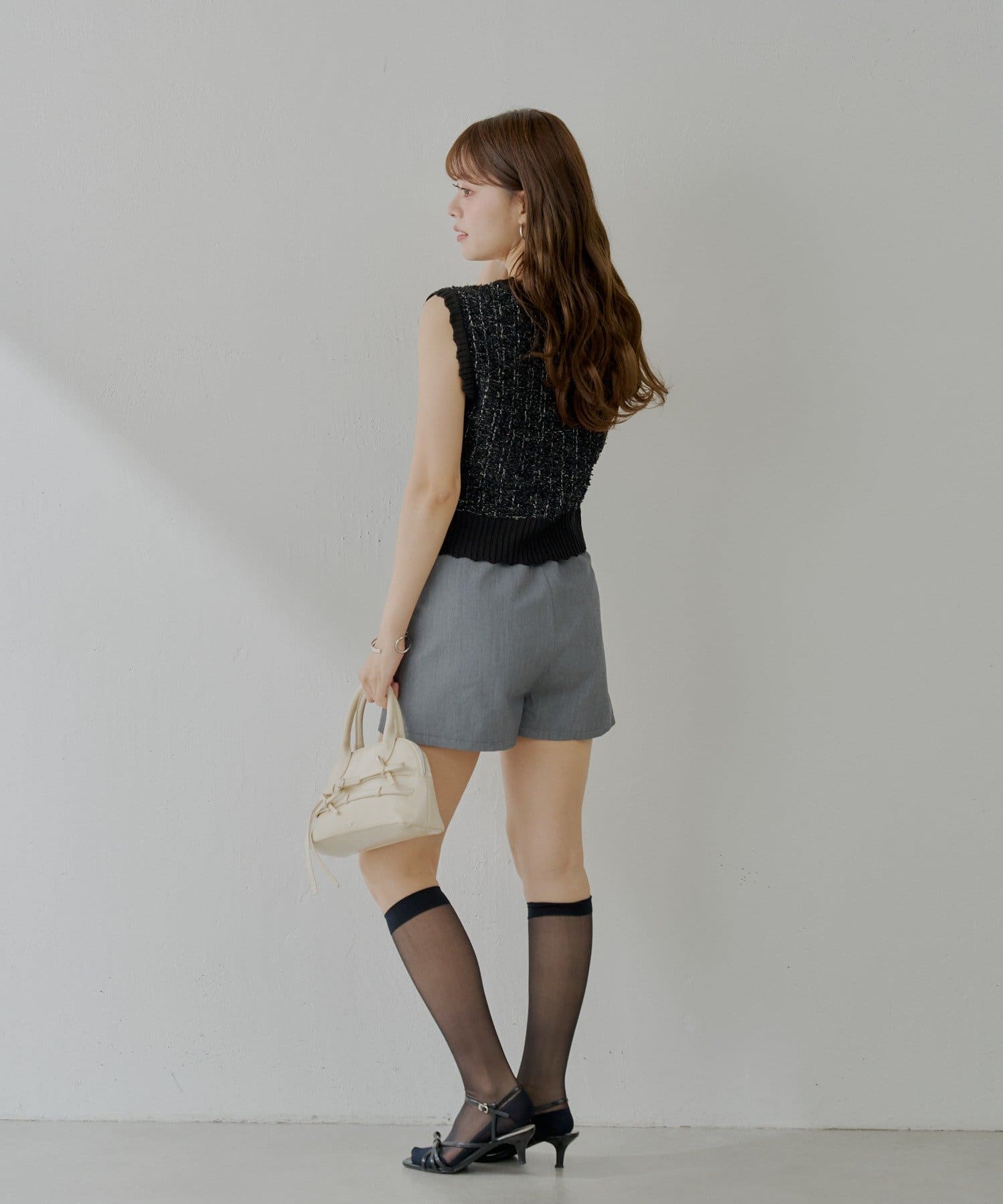 ・前立てと裾にあしらわれたスカラップデザインが、さりげなくフェミニンな雰囲気をプラス。