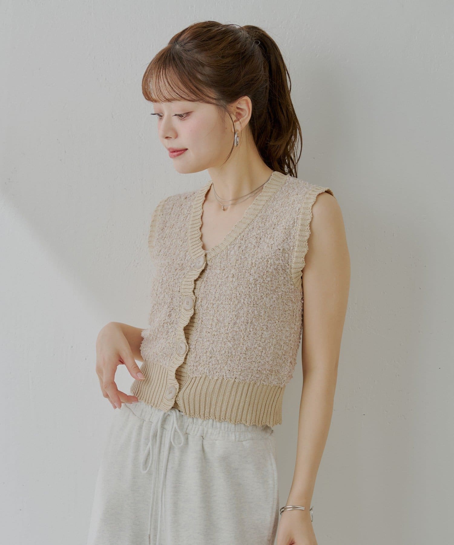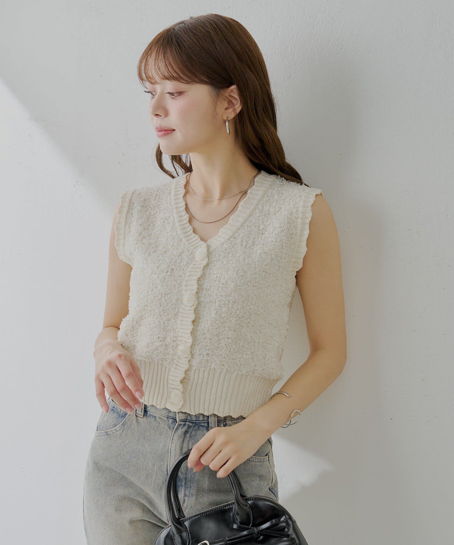 ふんわりとした素材が、着こなしに奥行きを生み出すノースリシャギーベスト