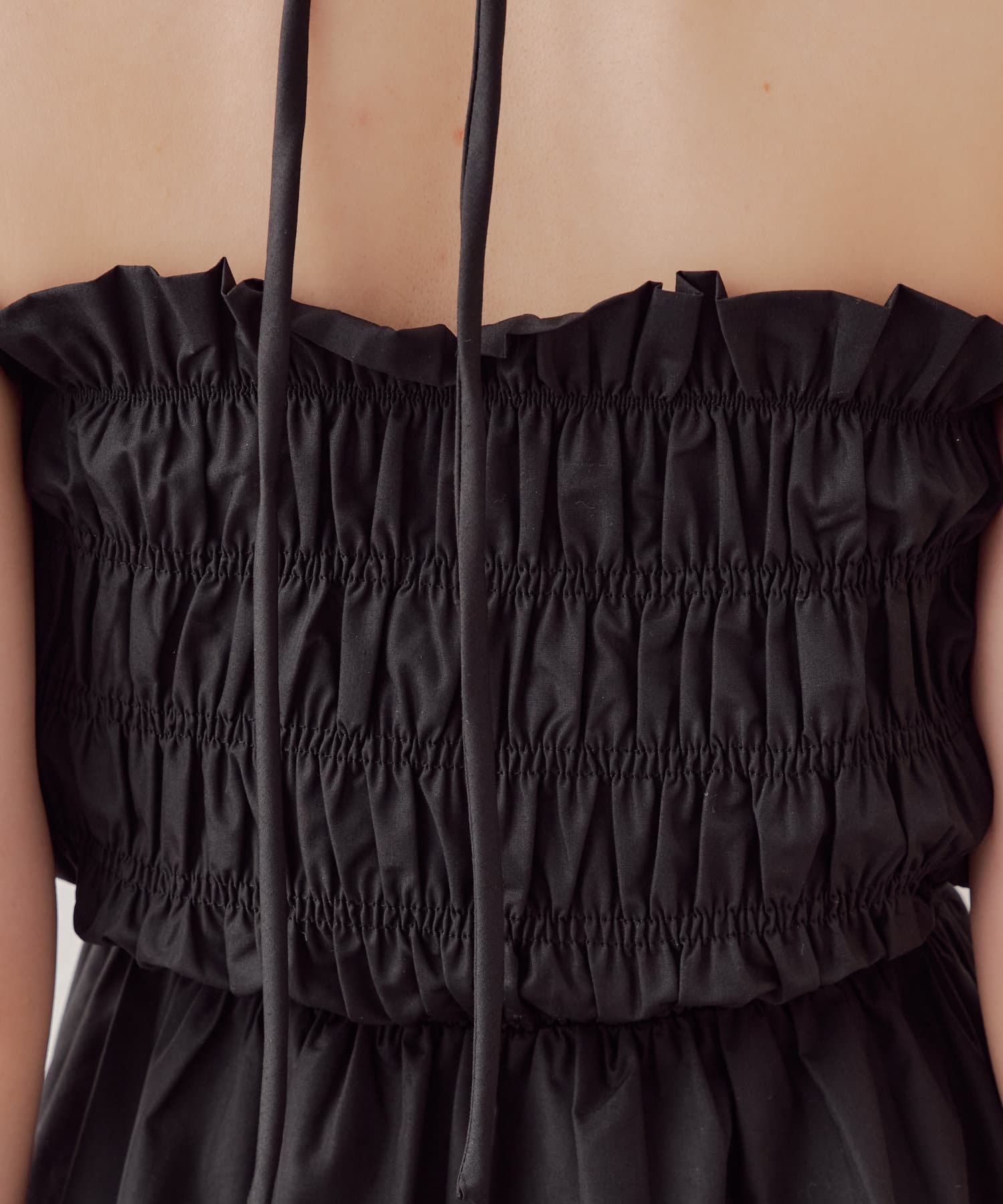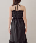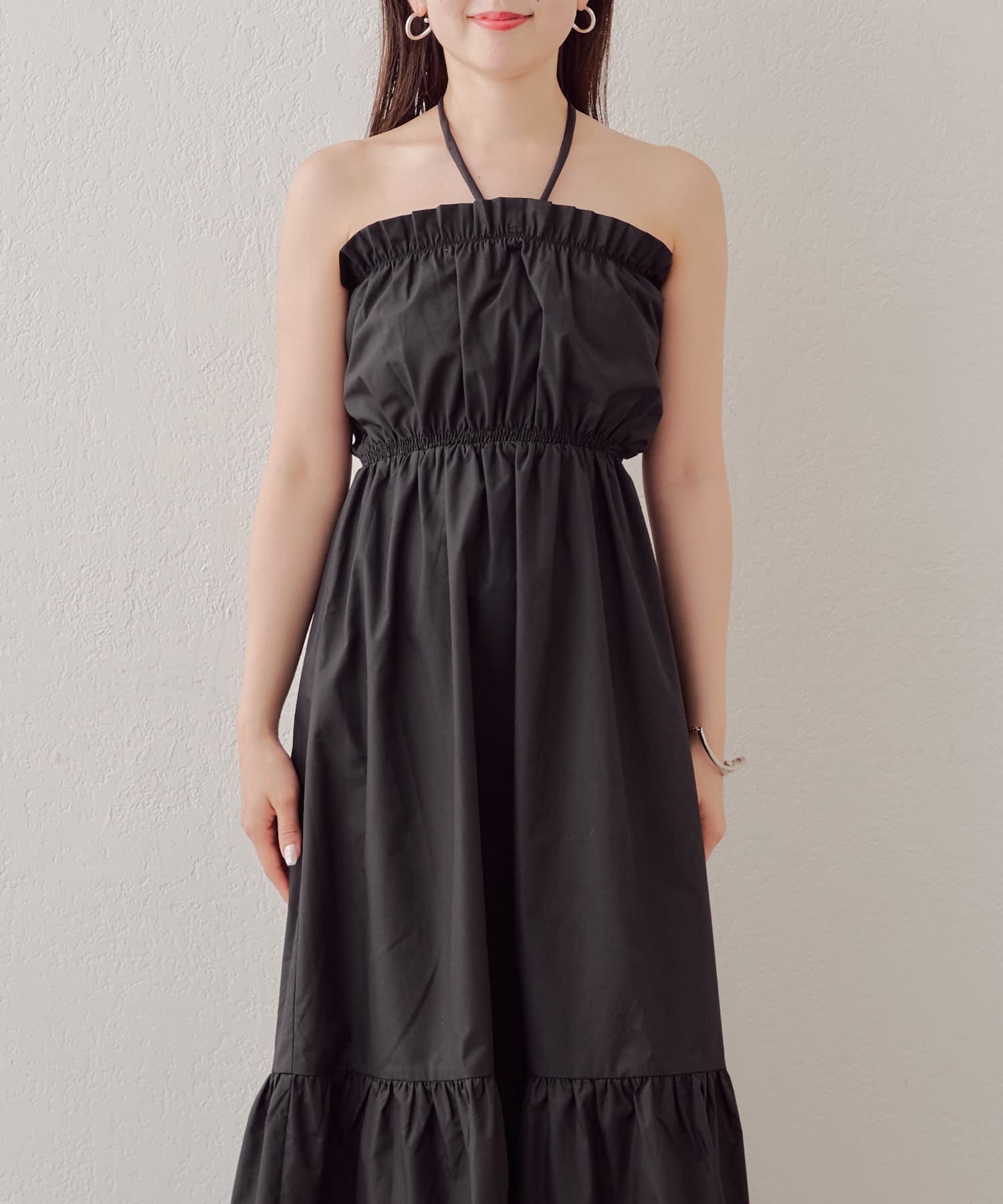 ・ホルターネック、肩リボンデザイン、前後2wayのマルチに着られるワンピース。