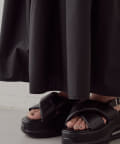 ・ヒールのあるキレイめなサンダルやパンプスを合わせて、女性らしいフェミニンスタイルにも。