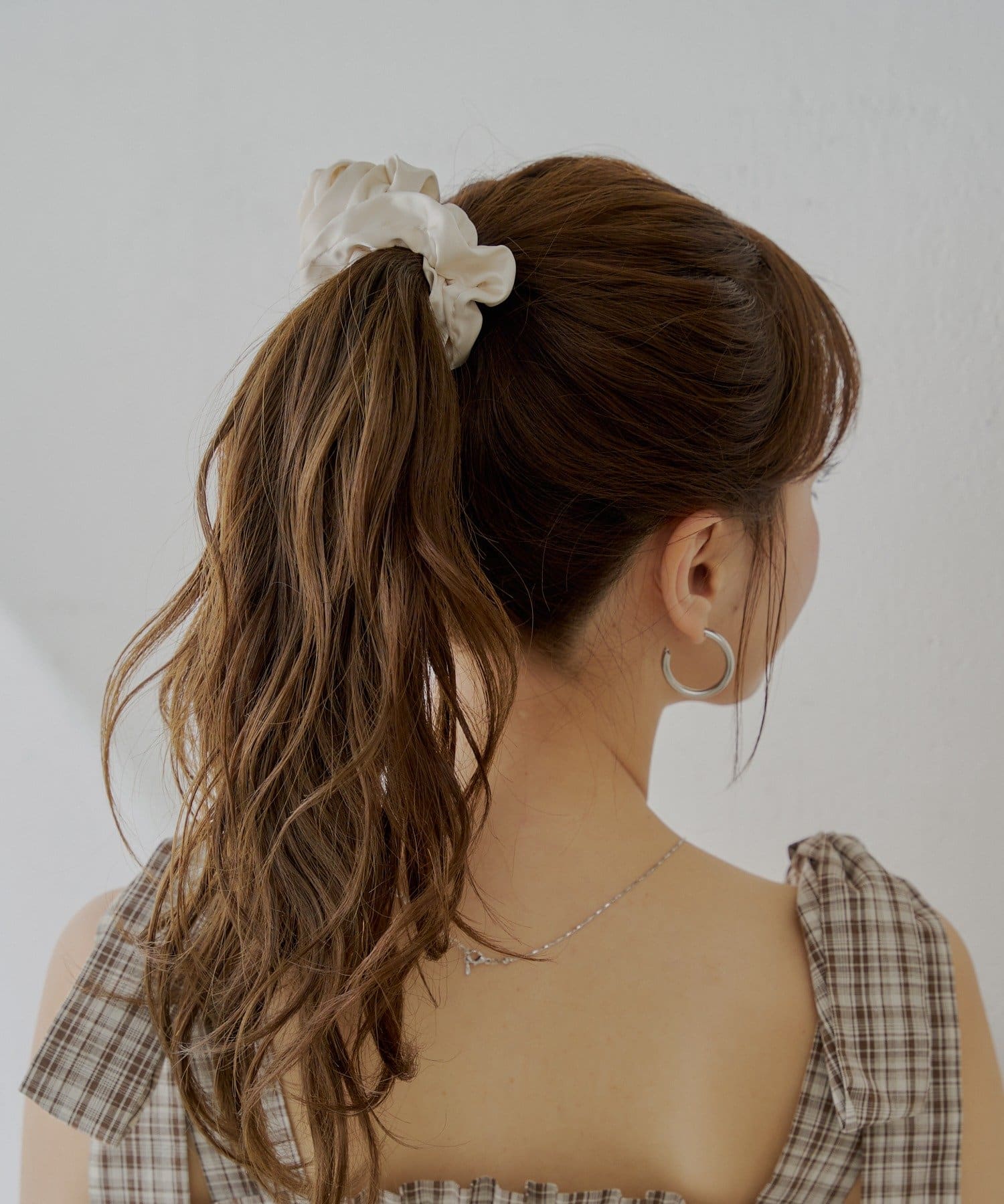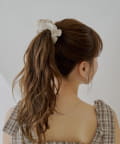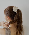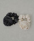 ・特別な日の装いにはもちろん、普段使いにもさりげない華やぎを添えてくれる、ローズモチーフのシュシュ。