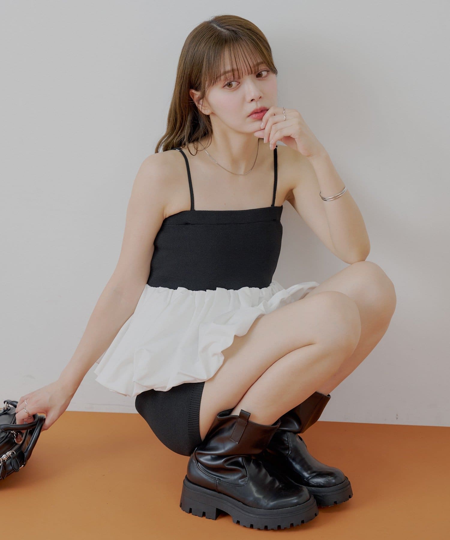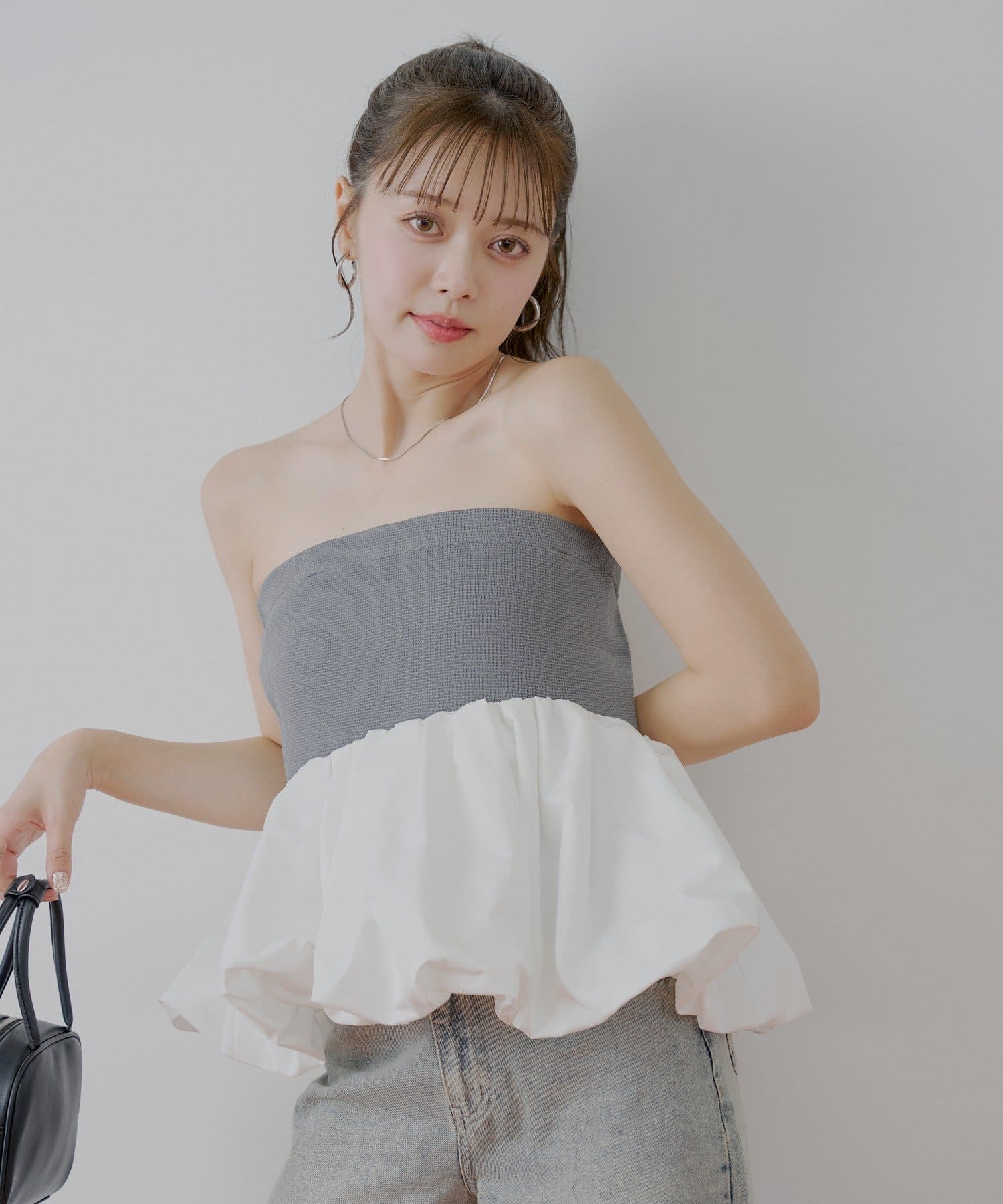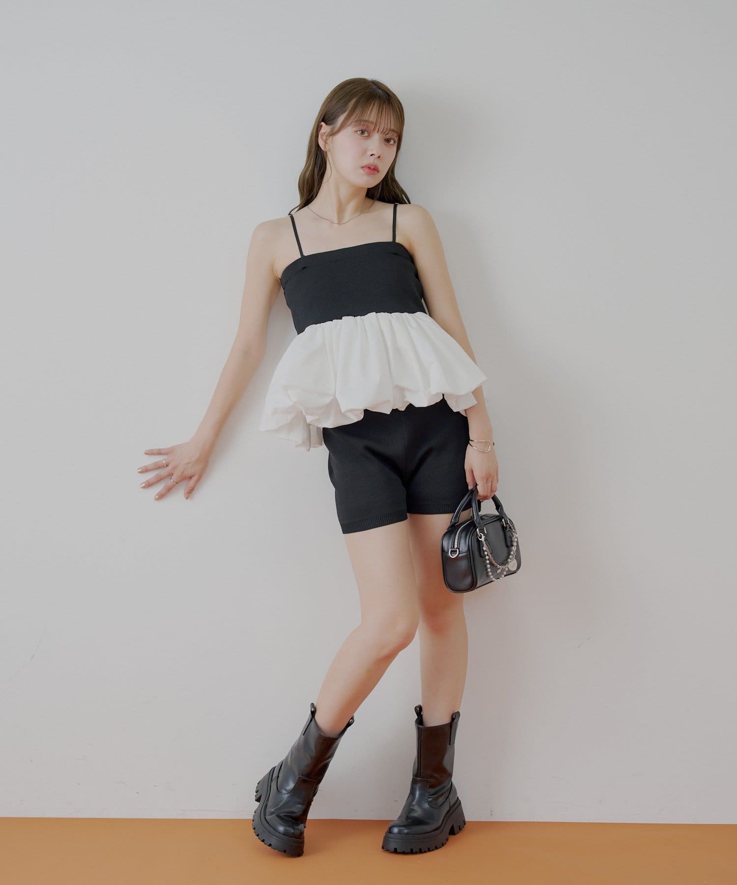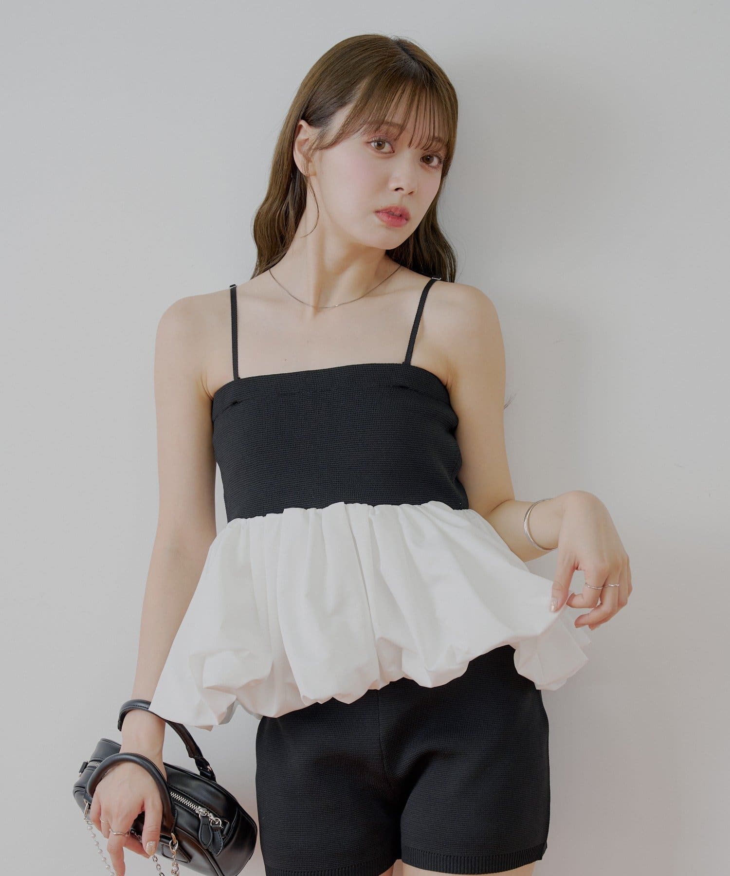 【Chico】紐取り外しペプラムドッキングベアトップ