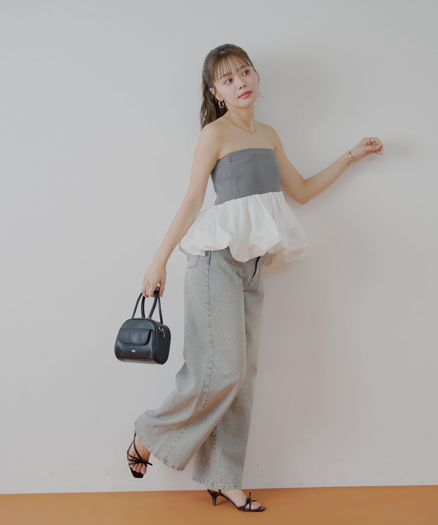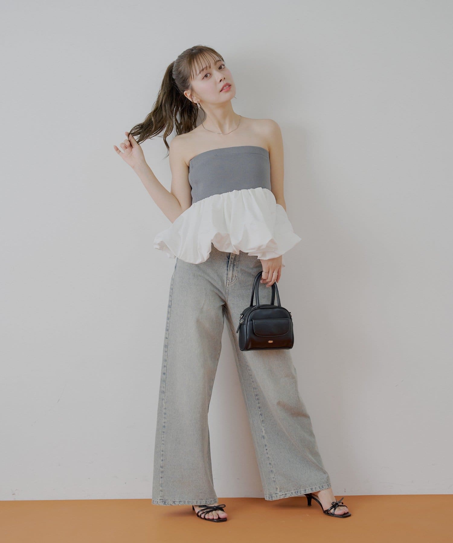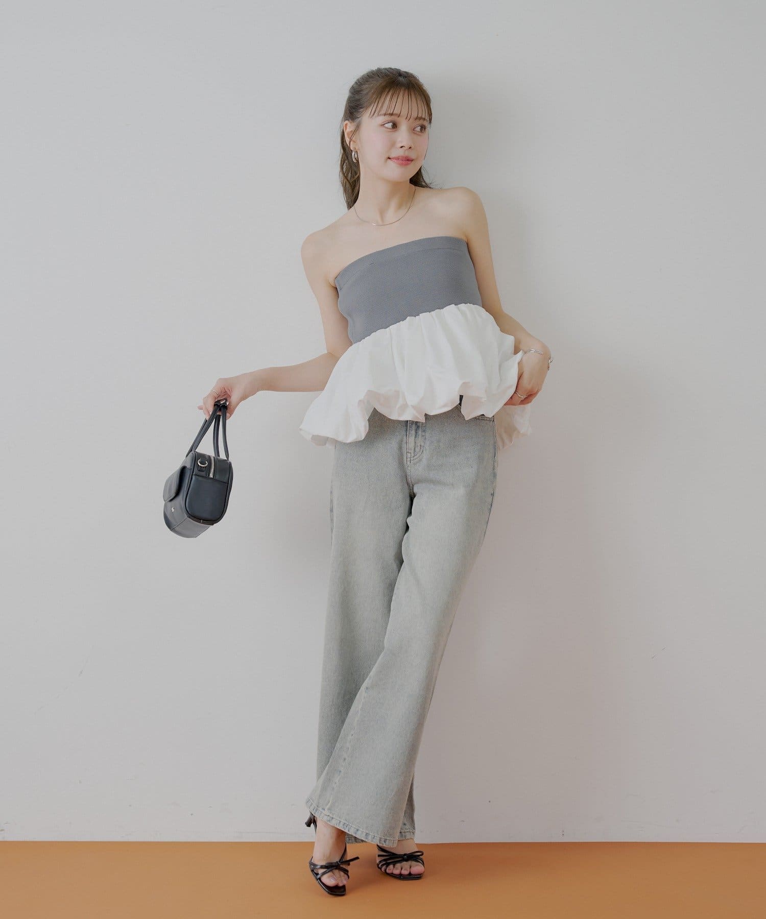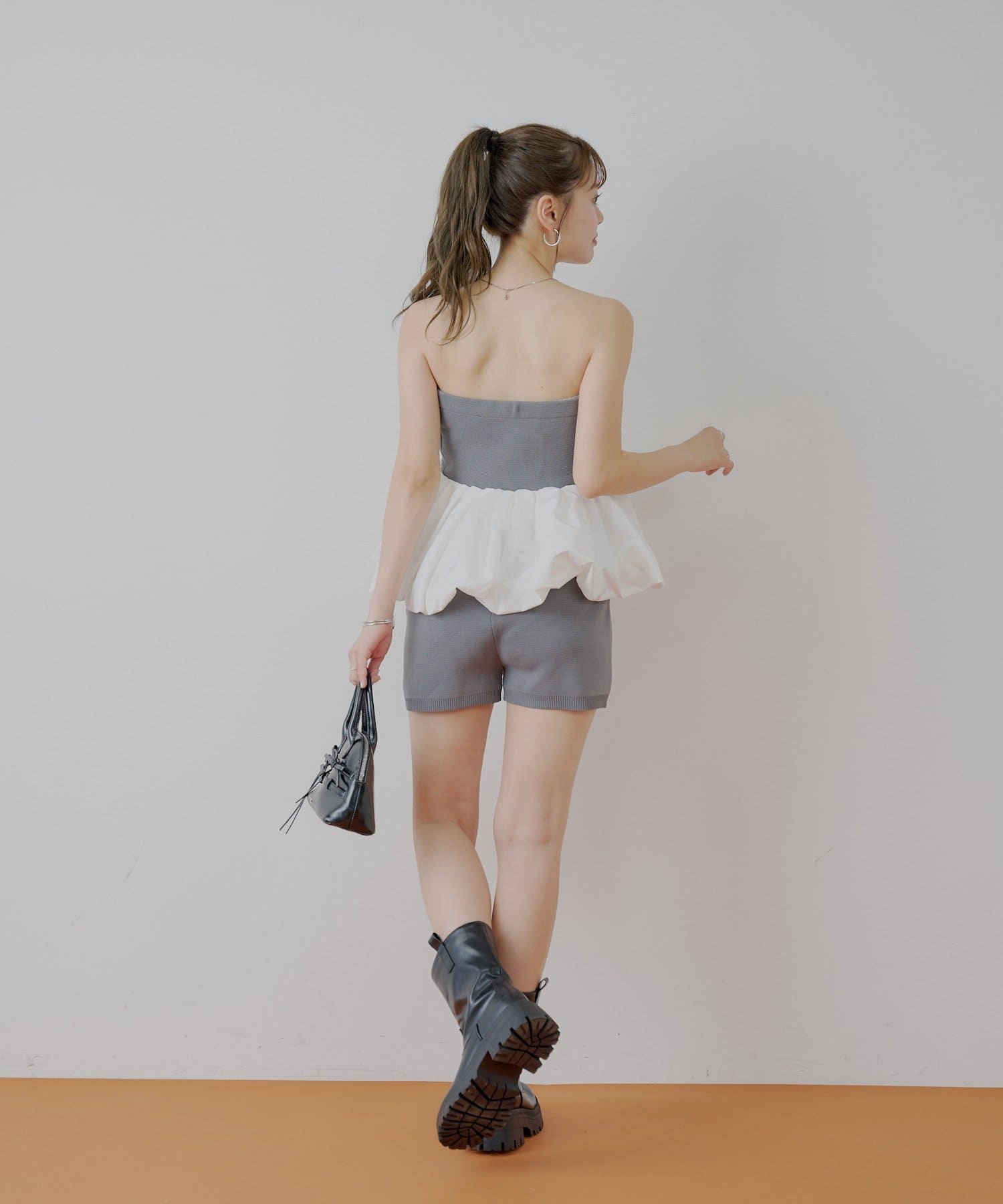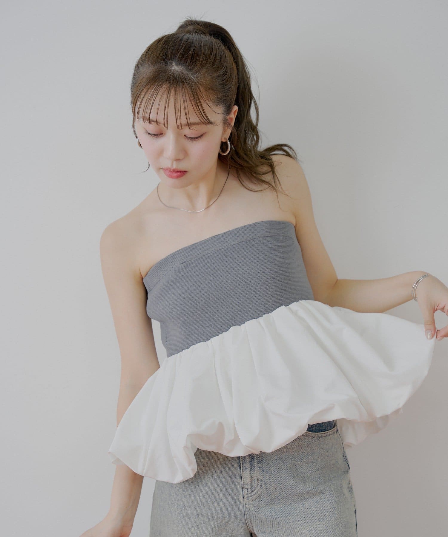【Chico】紐取り外しペプラムドッキングベアトップ