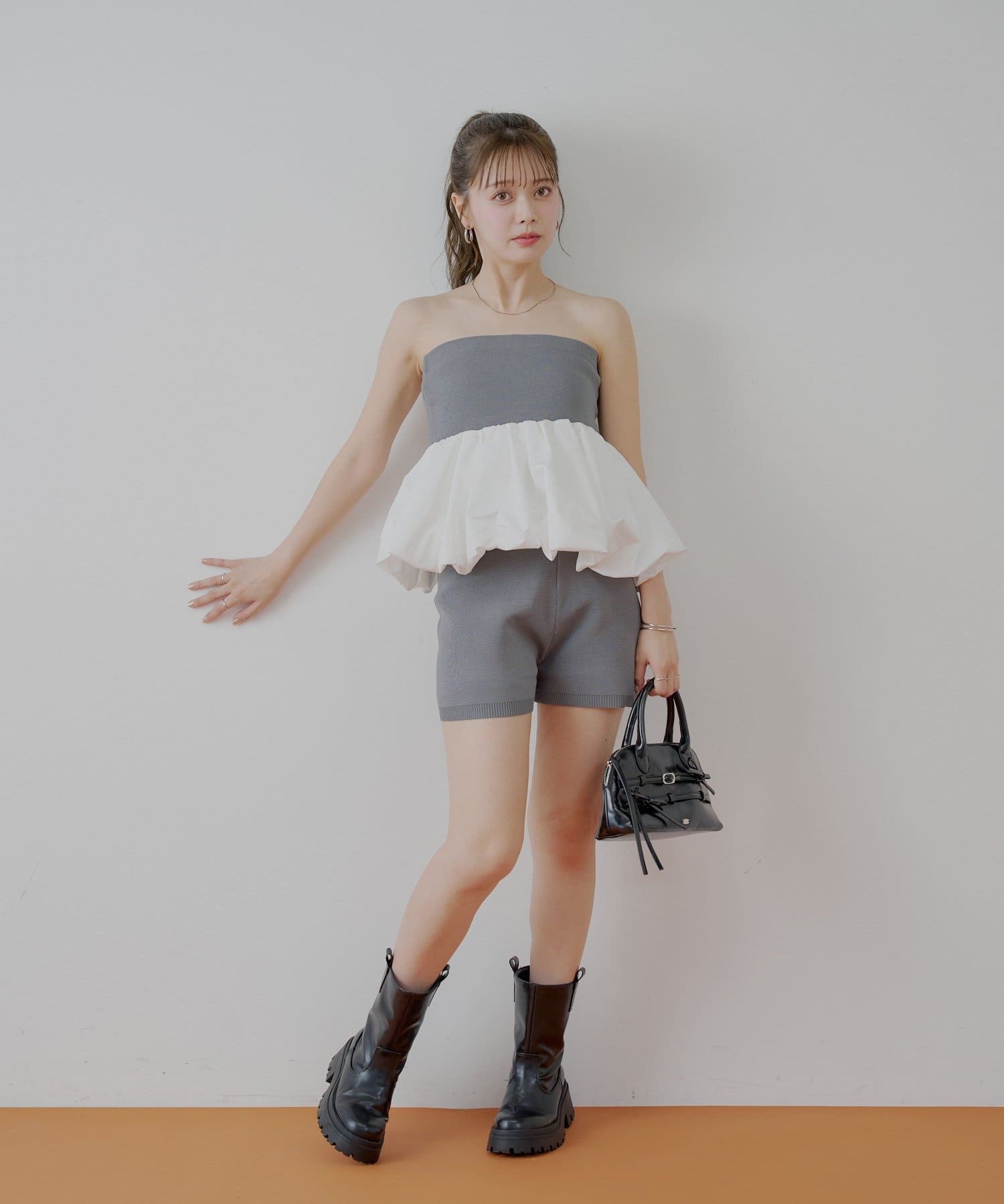 ・同素材のショートパンツと合わせてセットアップにして着るのも可愛くておすすめです!