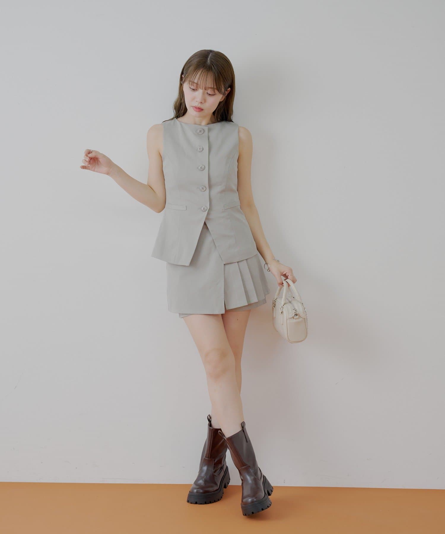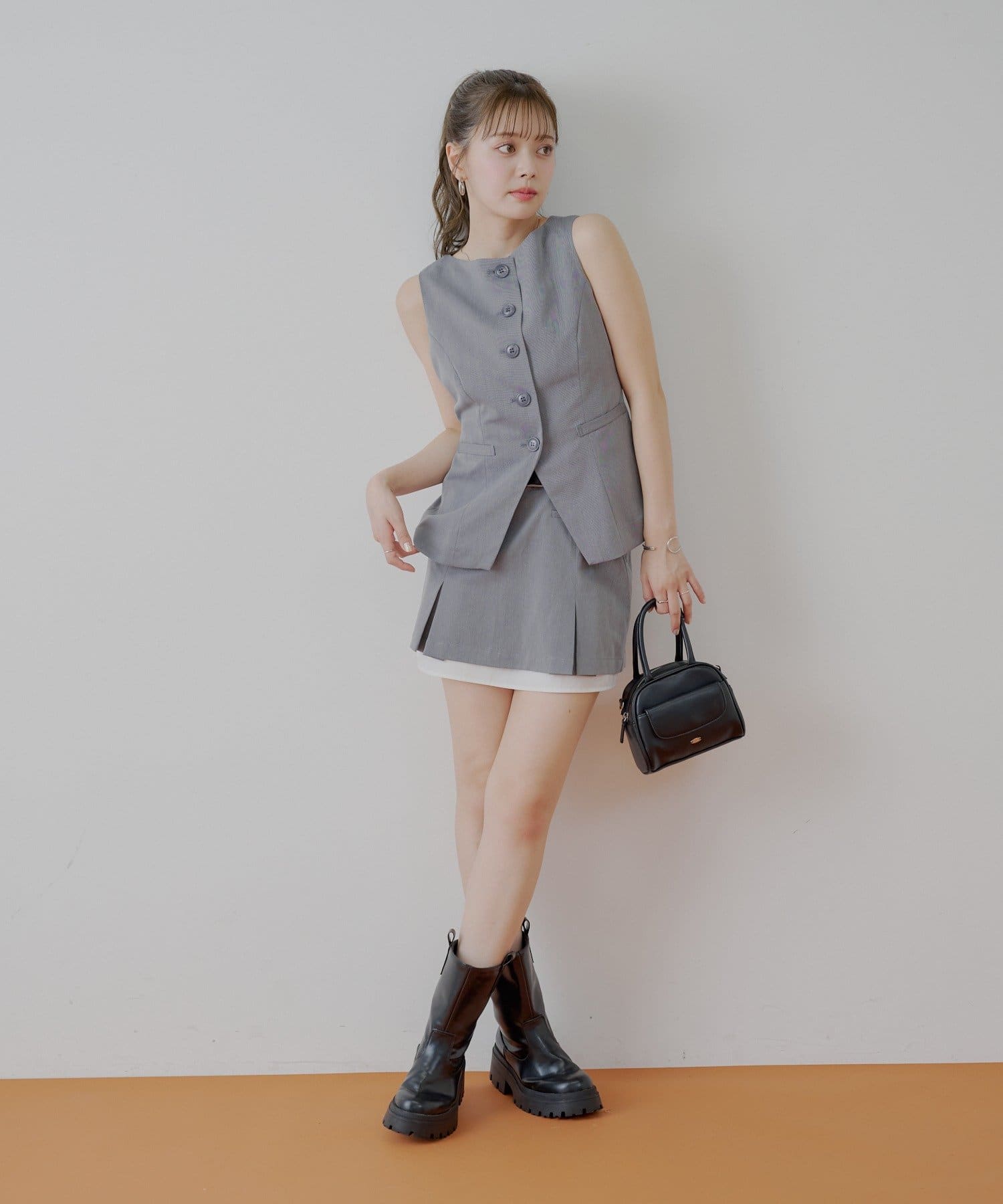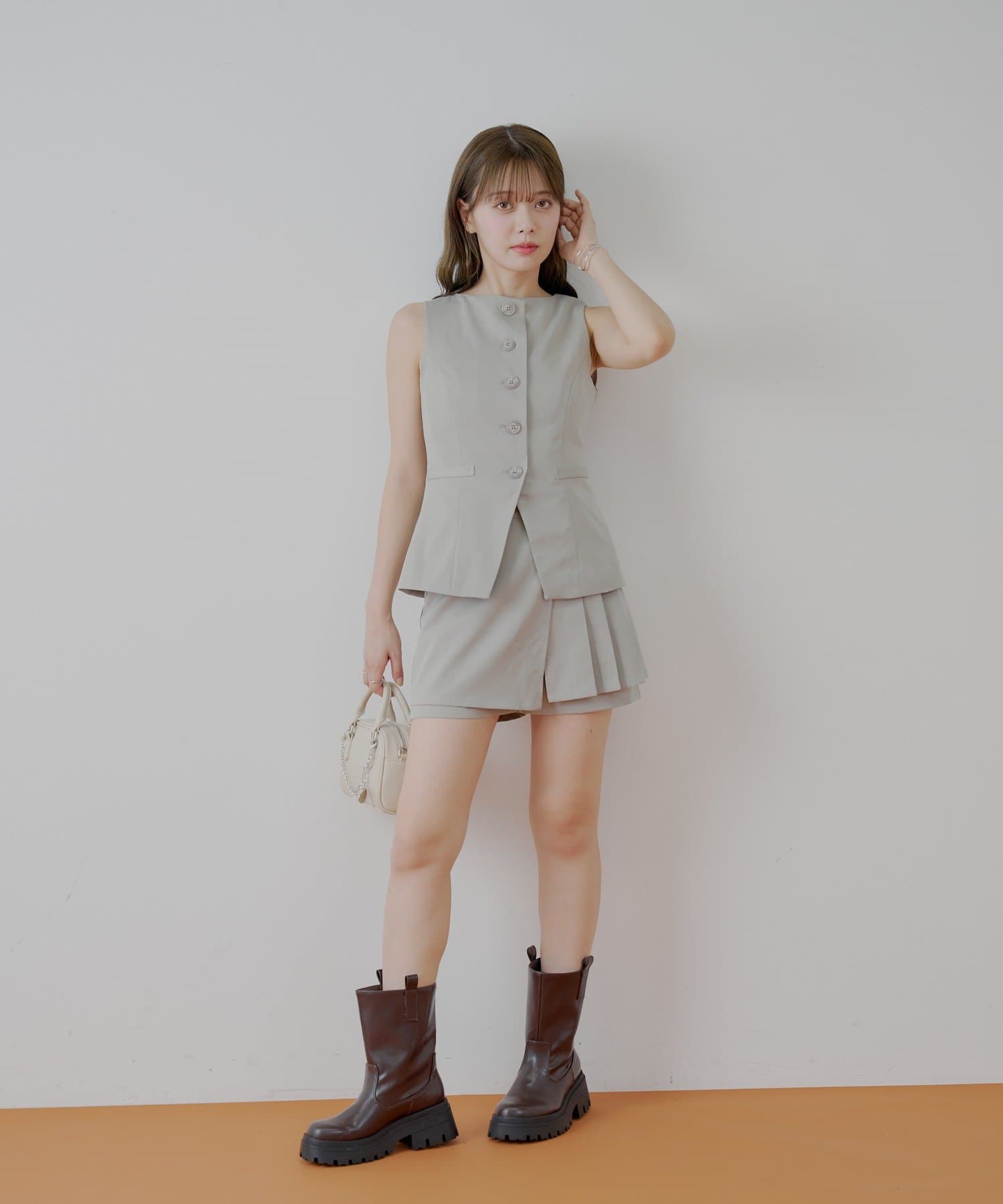 ・同素材や同じカラーのボトムと合わせてセットアップ風にして着るのも可愛いです。