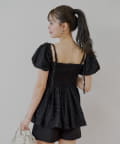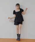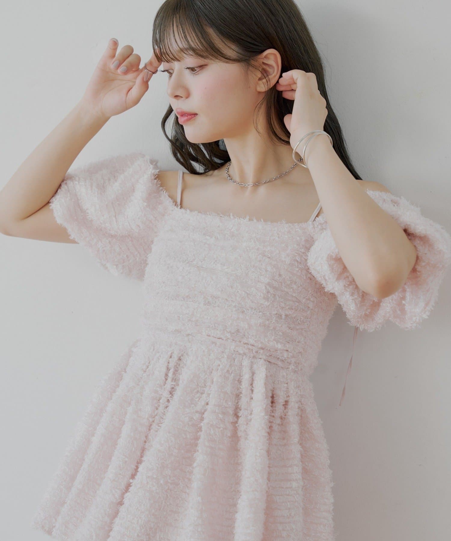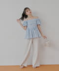 ・パフスリーブが気になる二の腕をさりげなくカバーしつつ、トレンド感もプラスします。