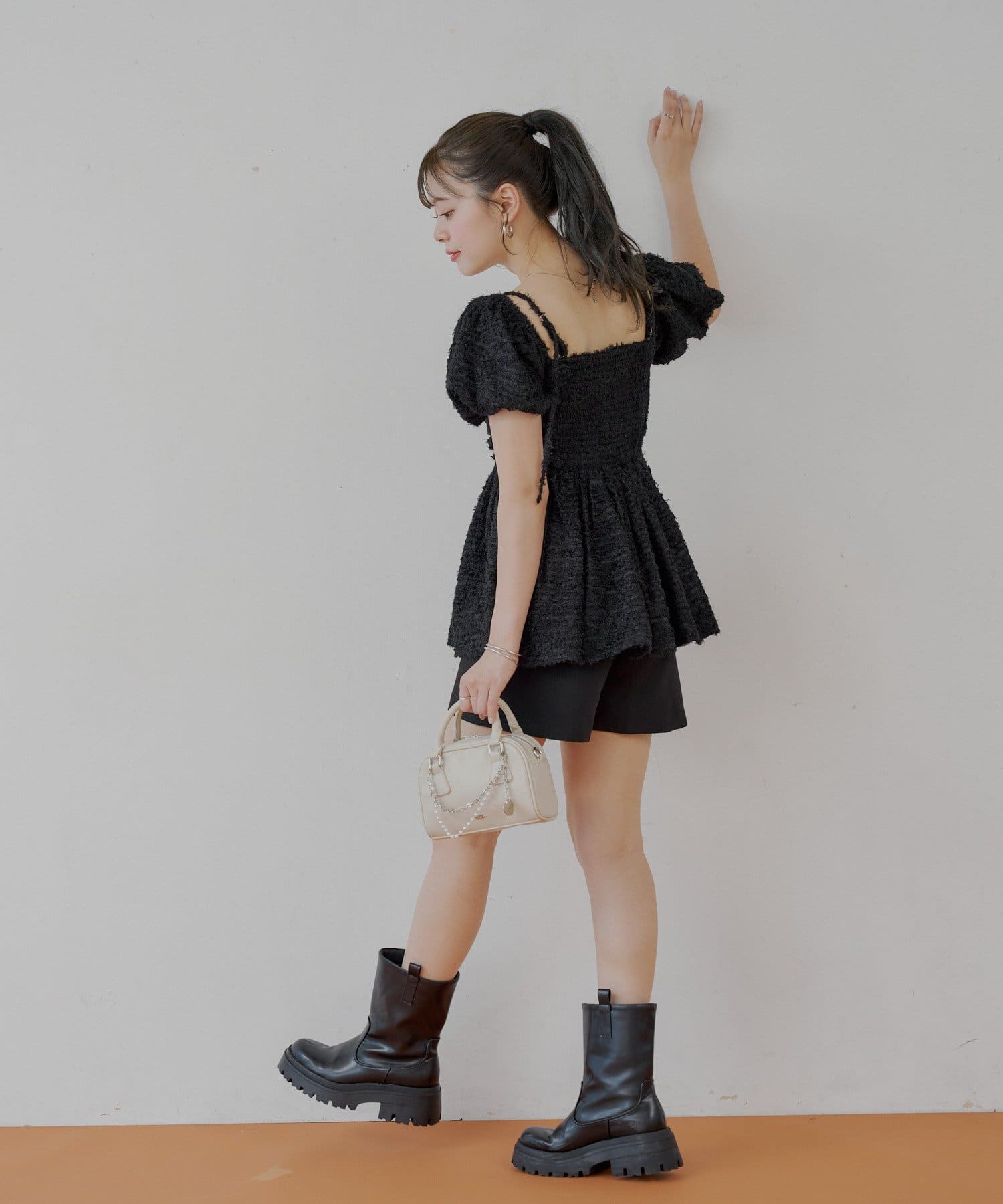 ・ミニボトムとの相性も抜群で、フェミニンなスタイルに仕上がります。