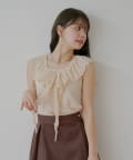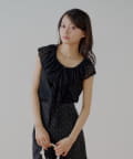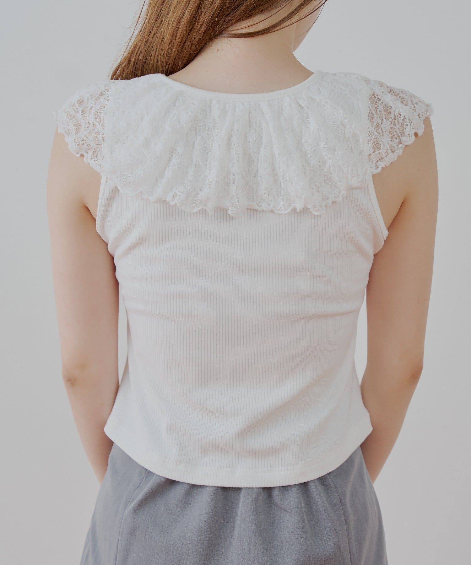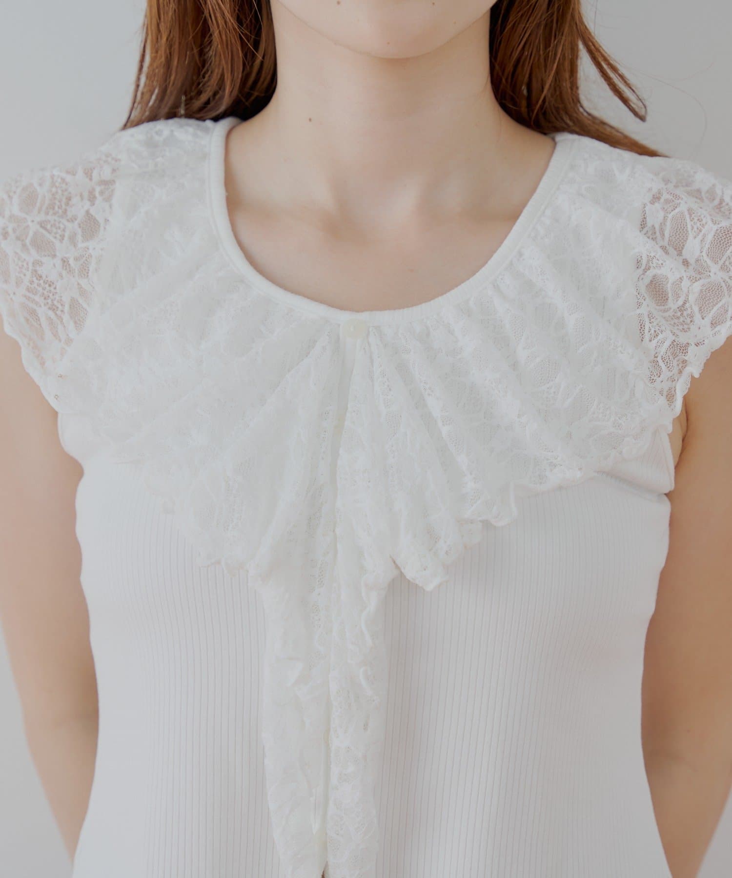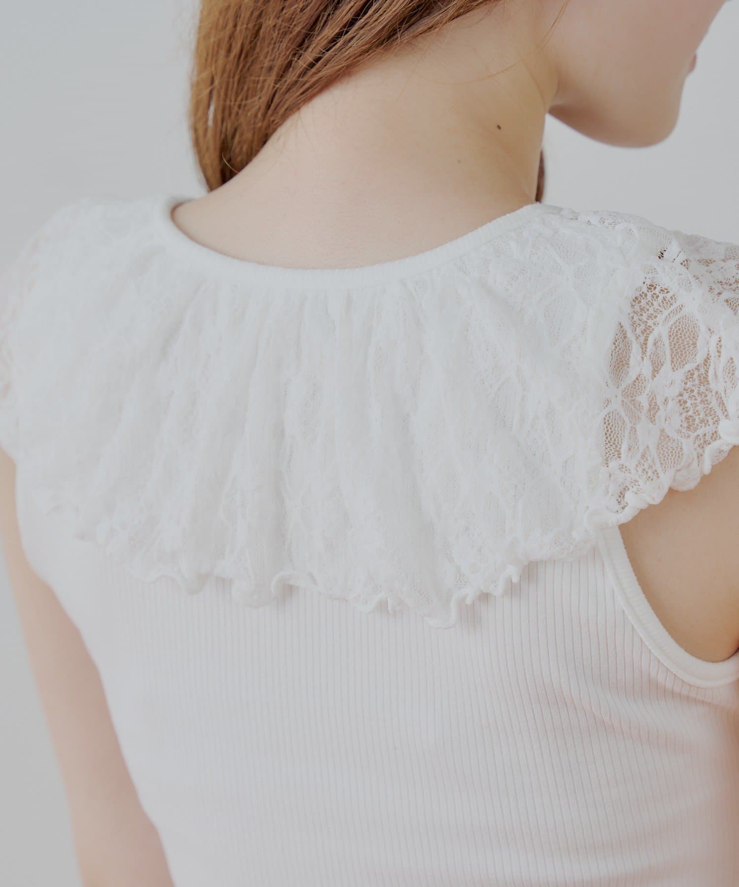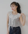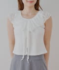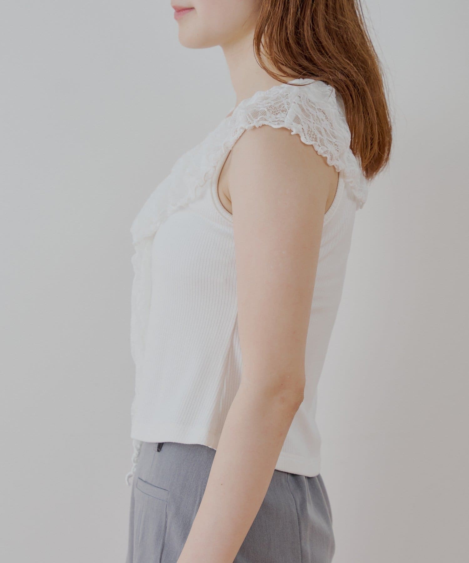 ・上品な透け感が魅力のレースを贅沢にあしらったノースリリブT。