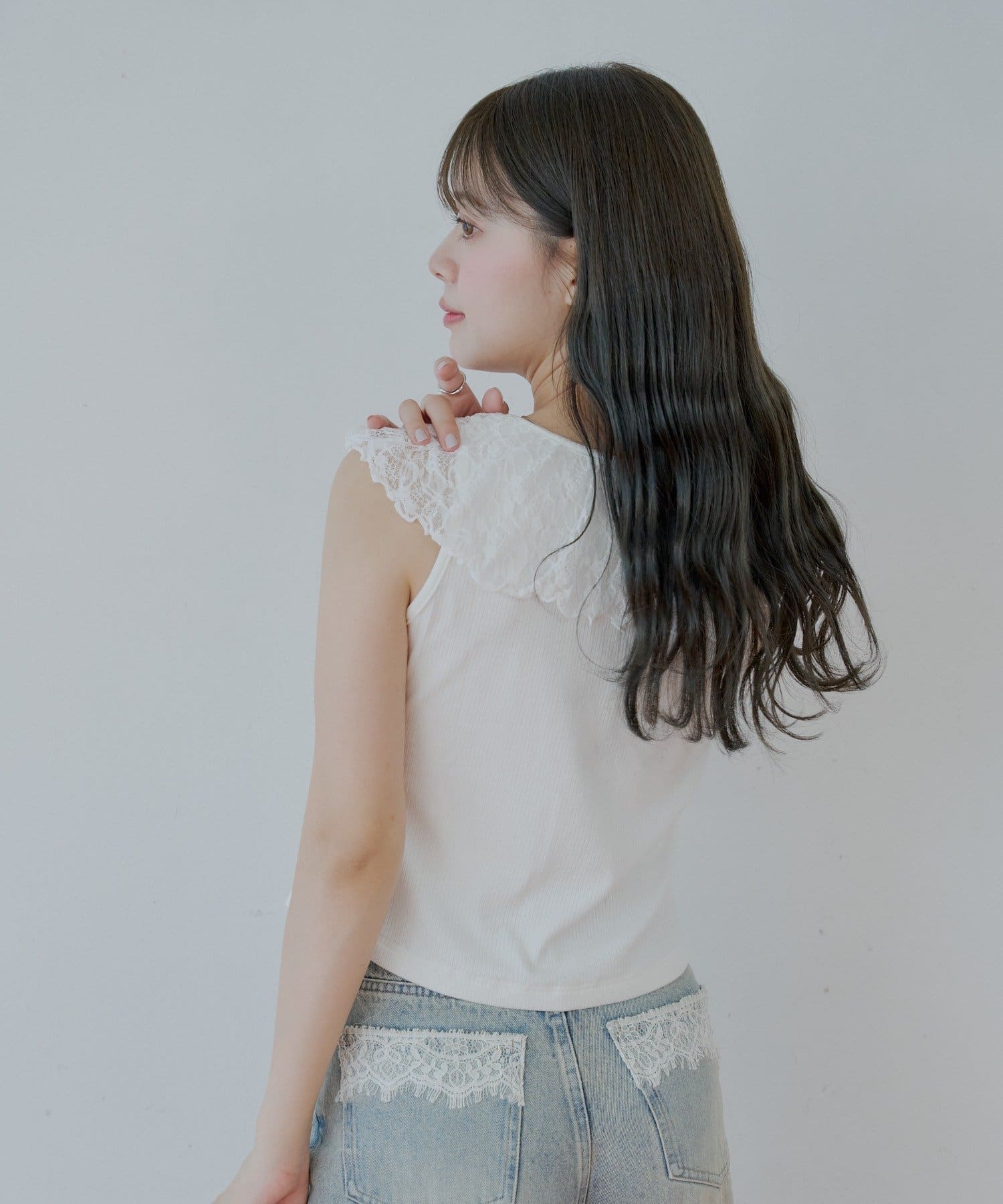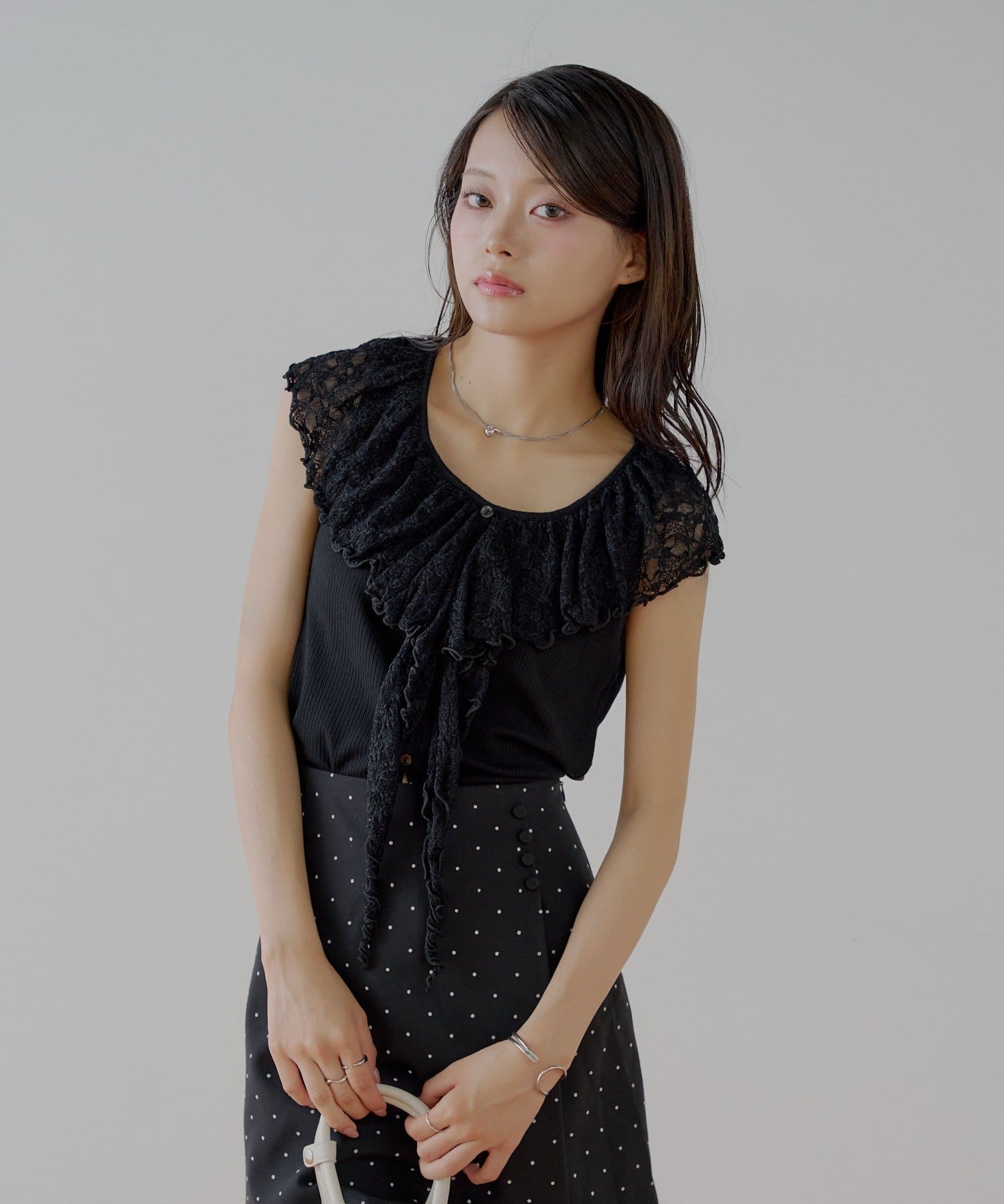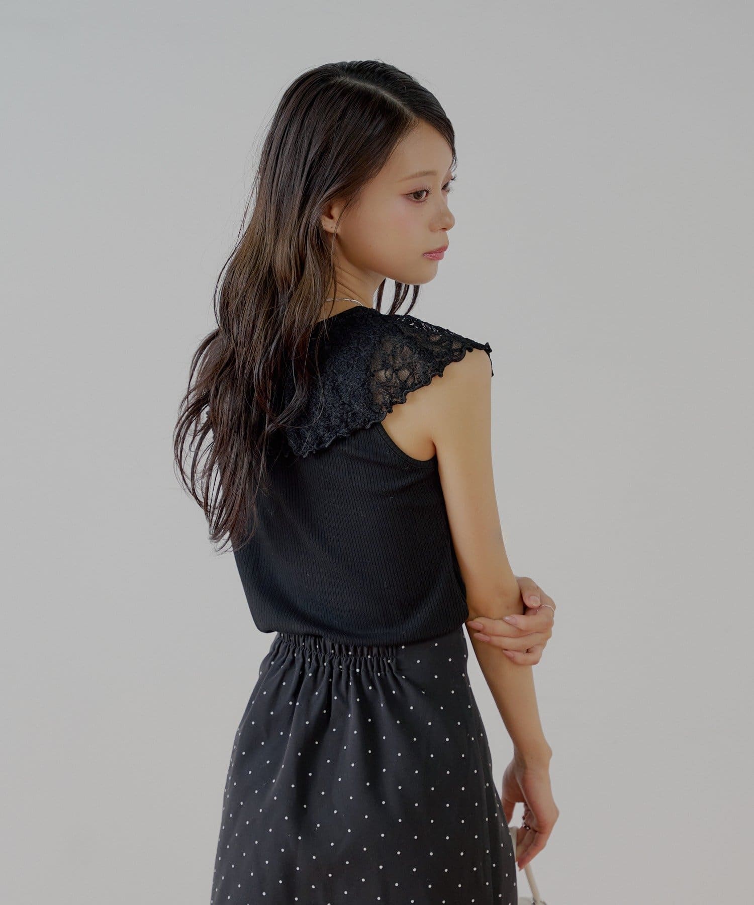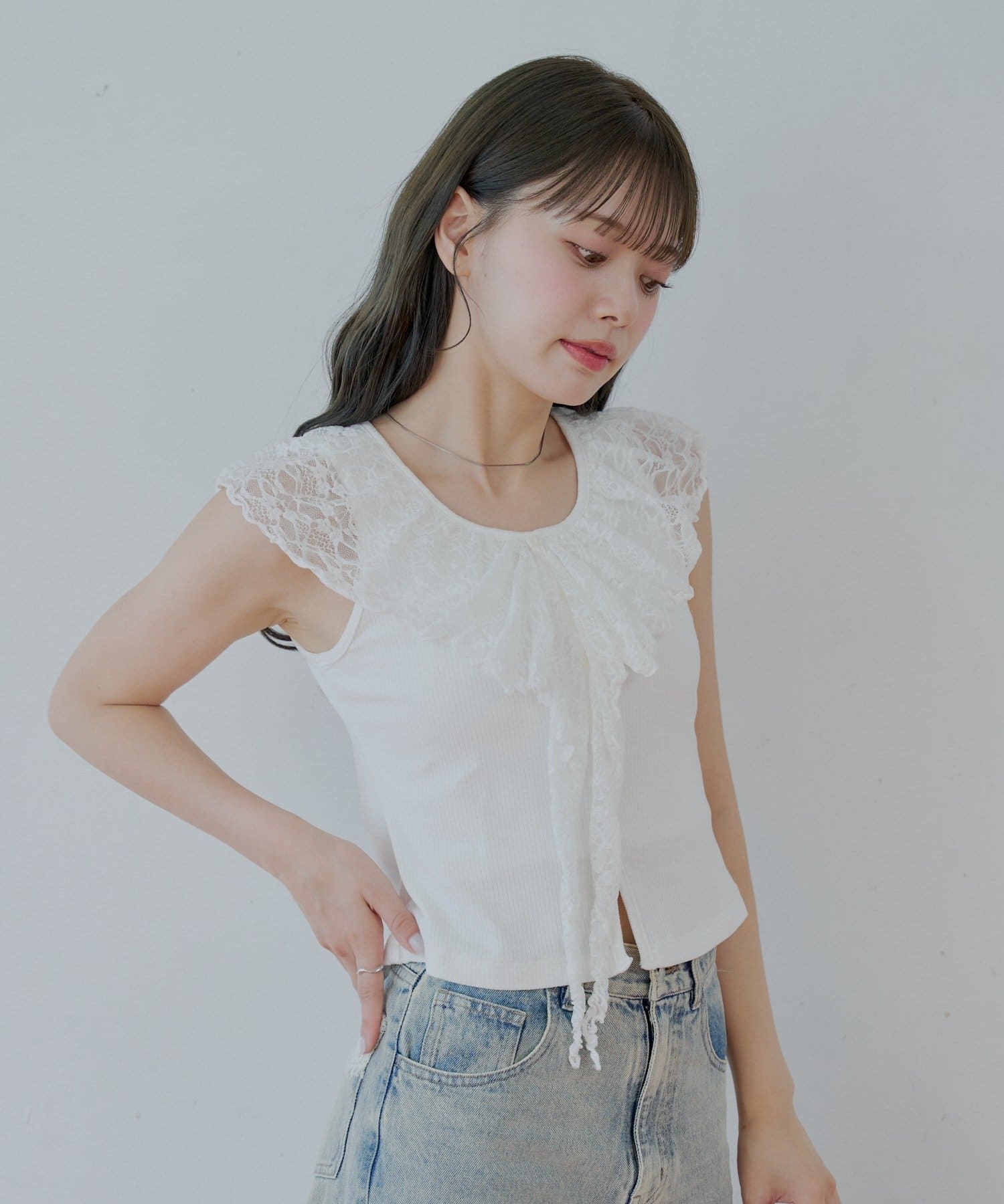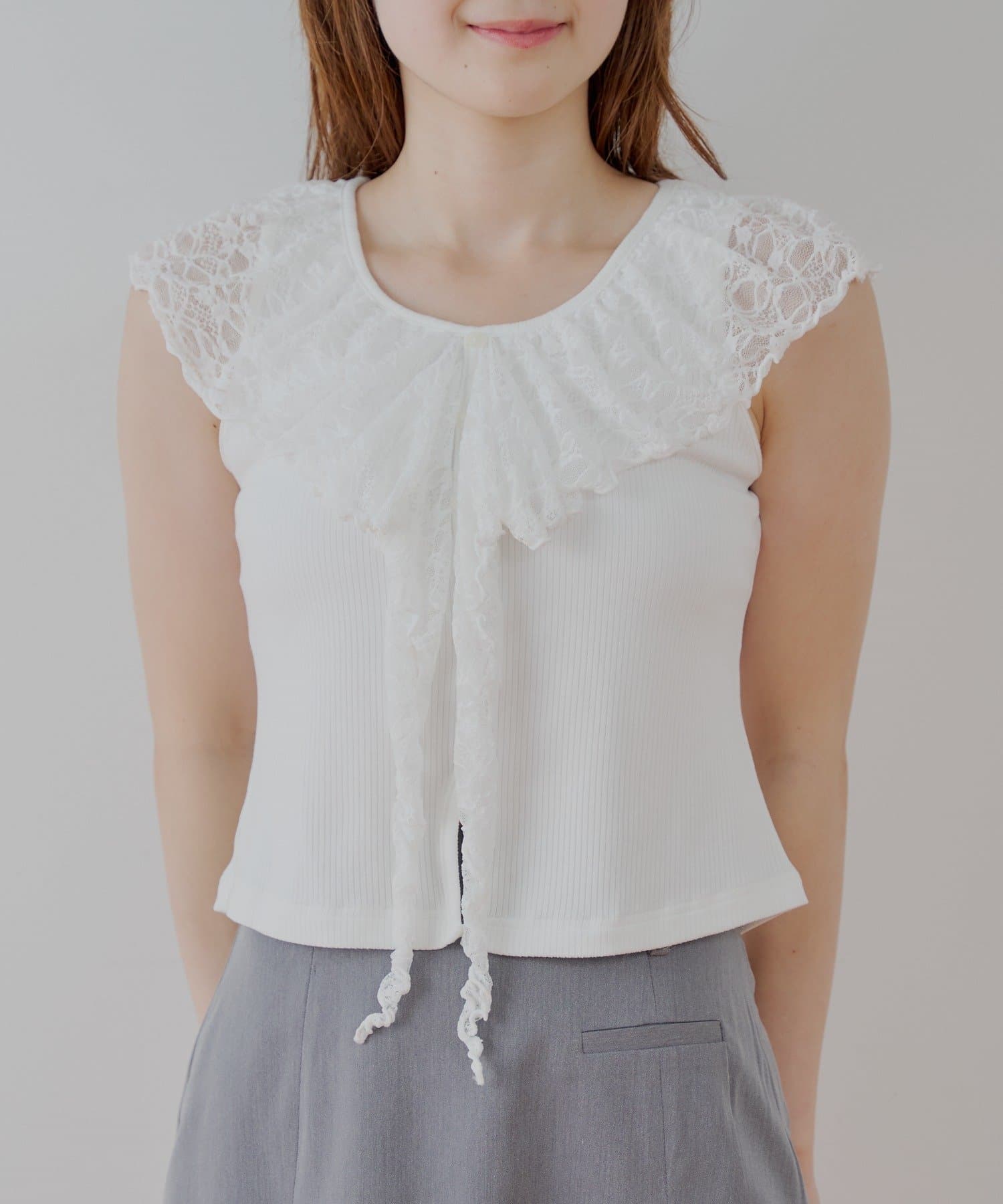 ・ジャケットやカーディガンのインナーとして着ると、レースがアクセントに。