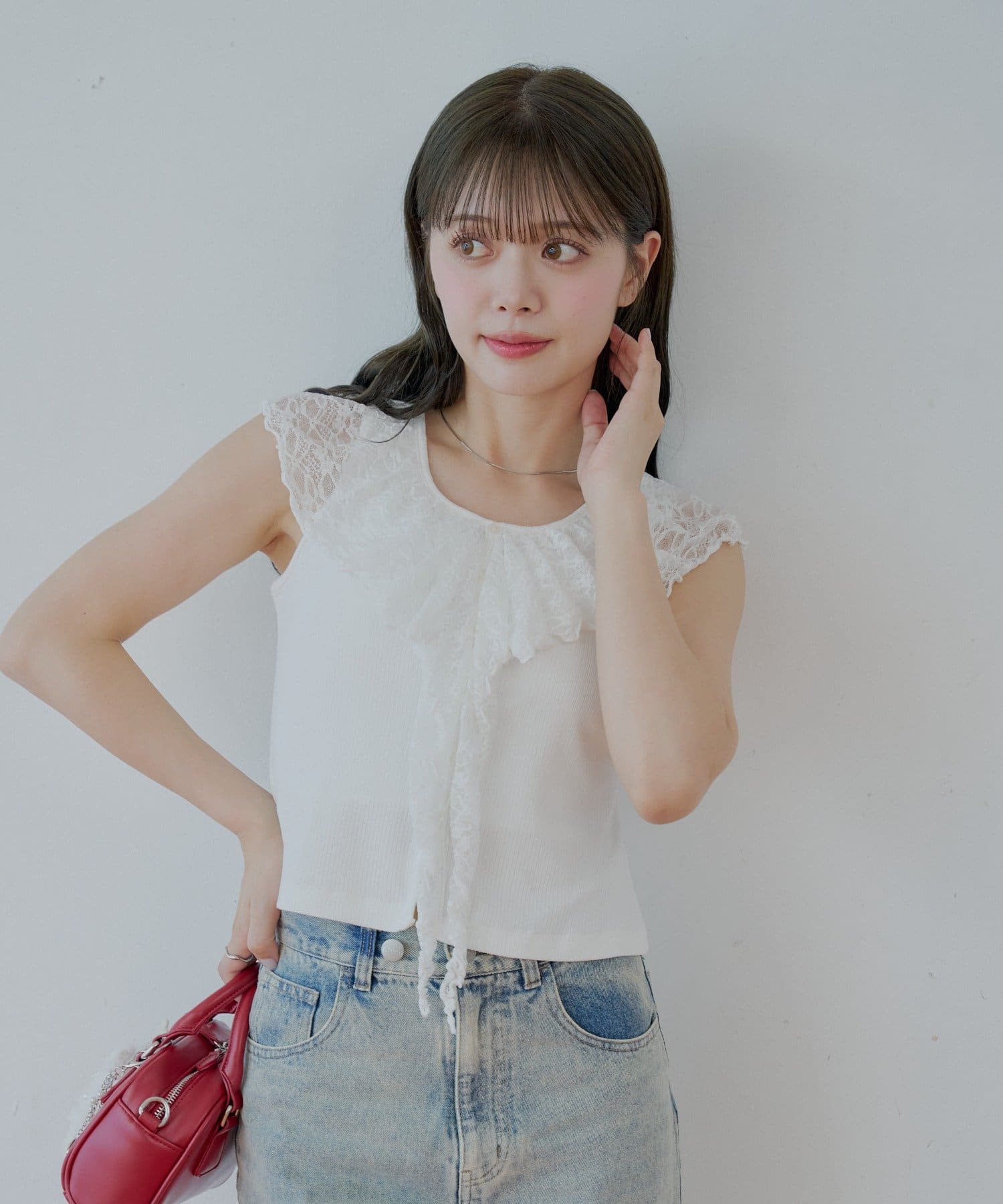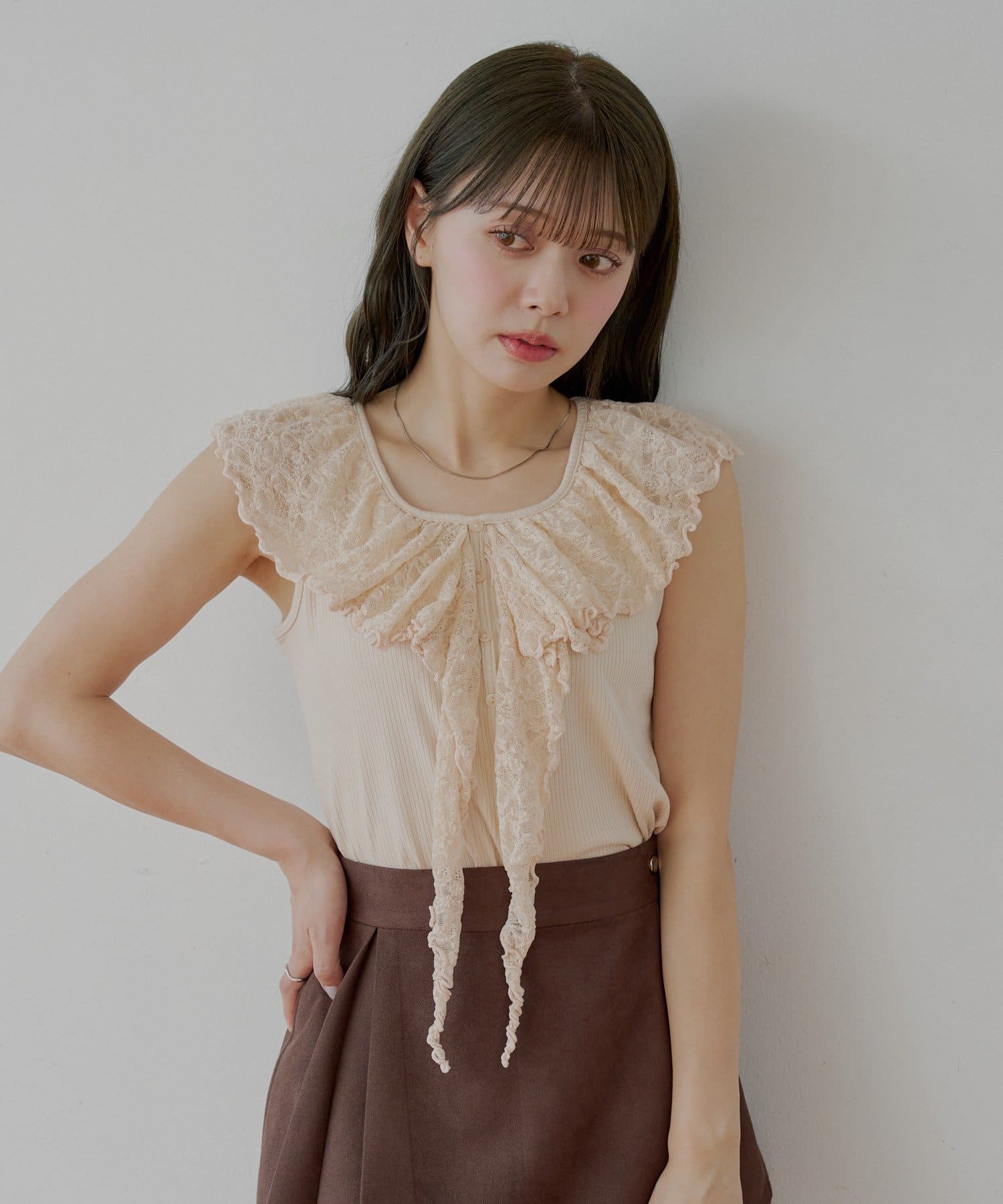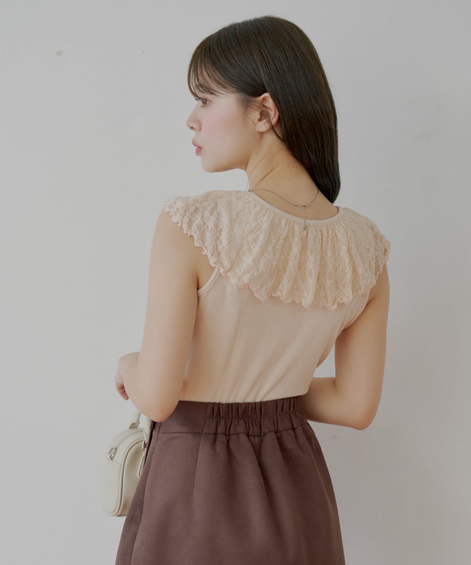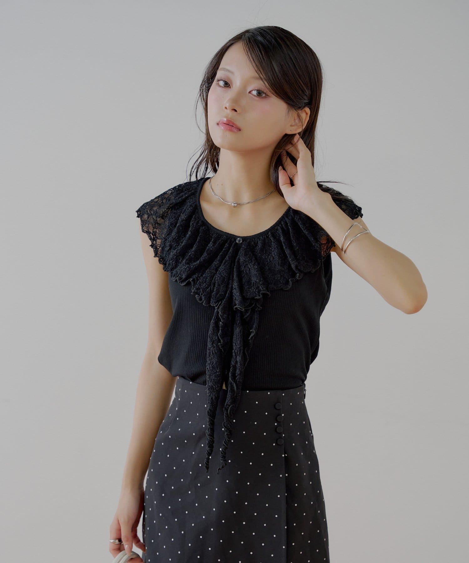 ・ジャケットやカーディガンのインナーとして着ると、レースがアクセントに。