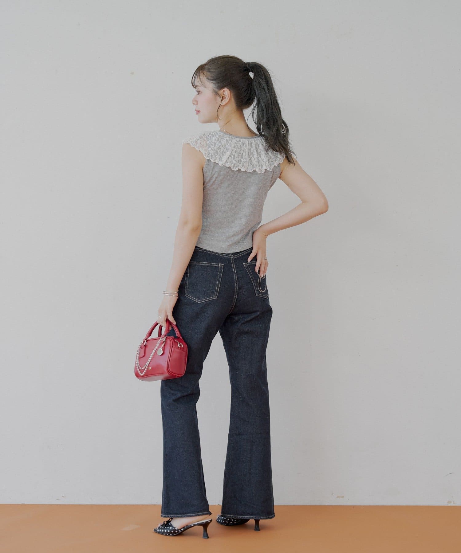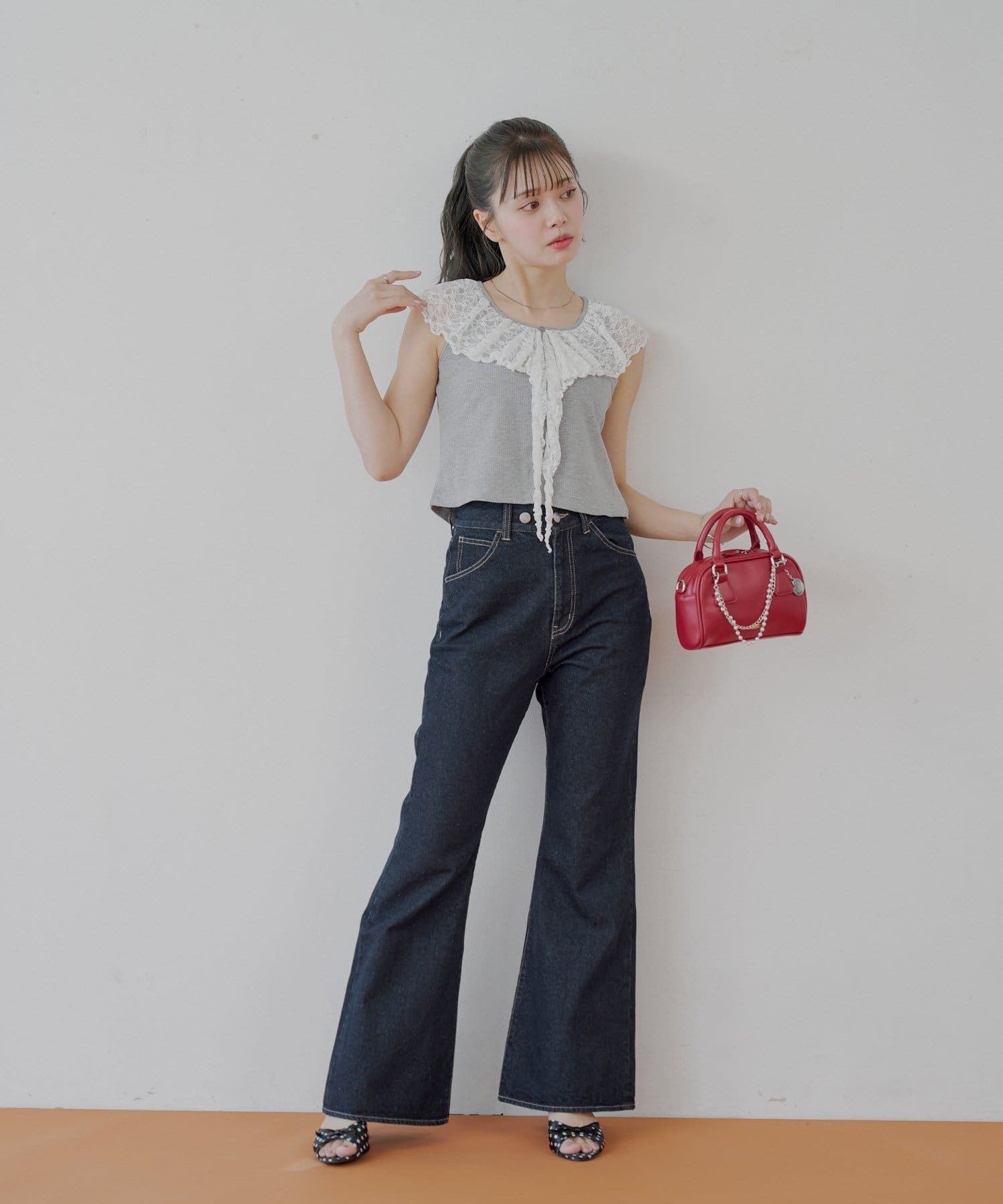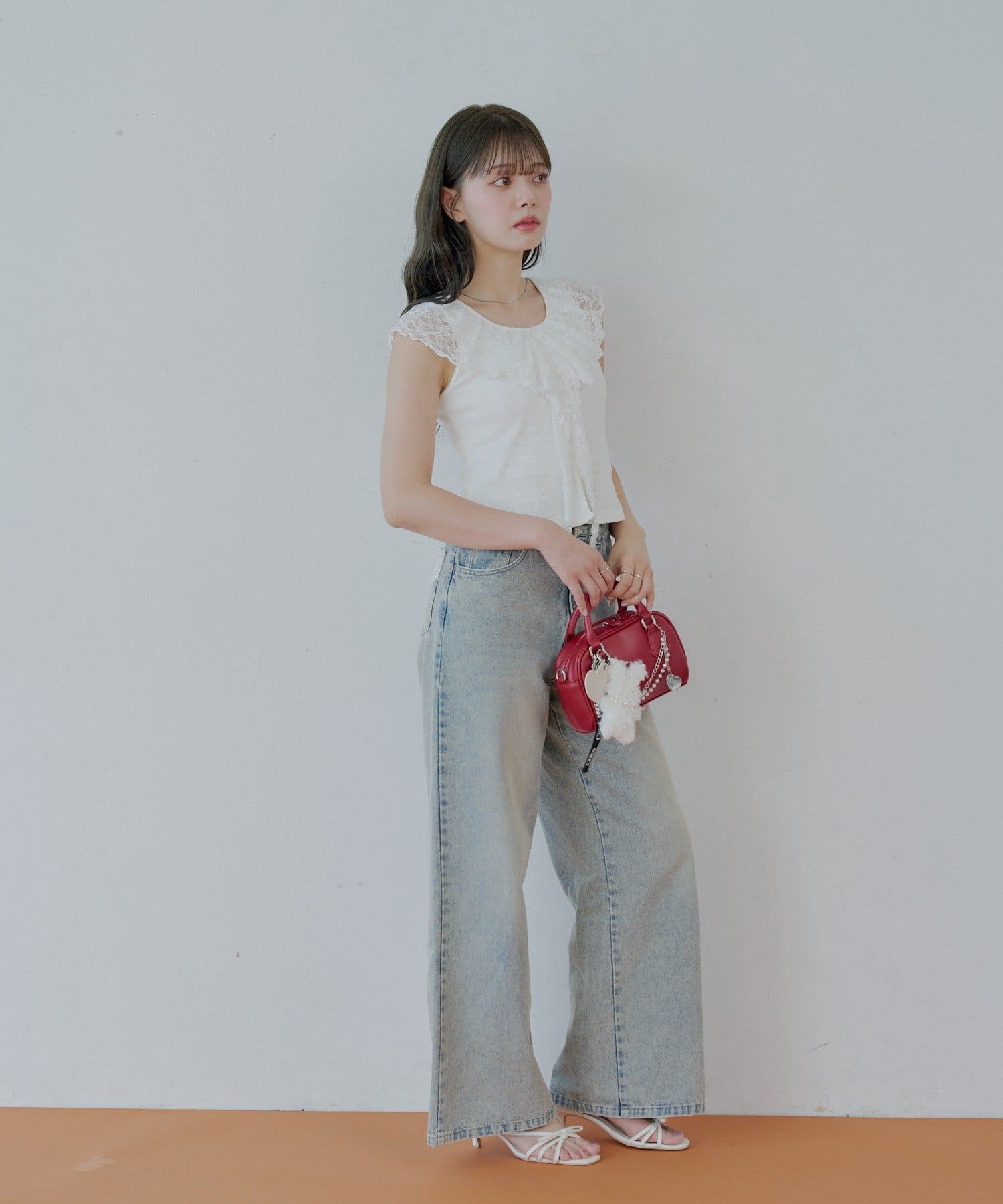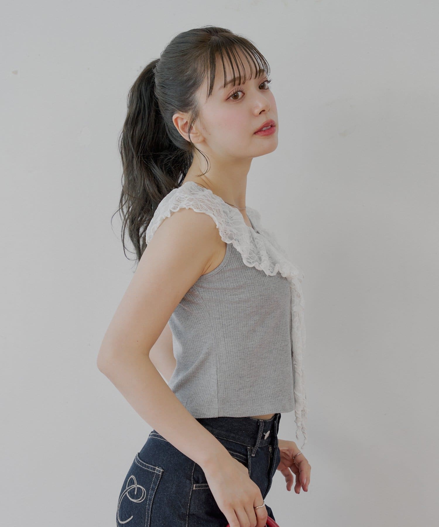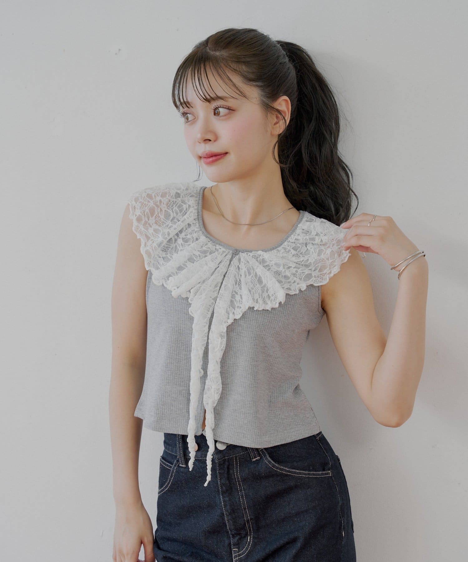 ・ジャケットやカーディガンのインナーとして着ると、レースがアクセントに。