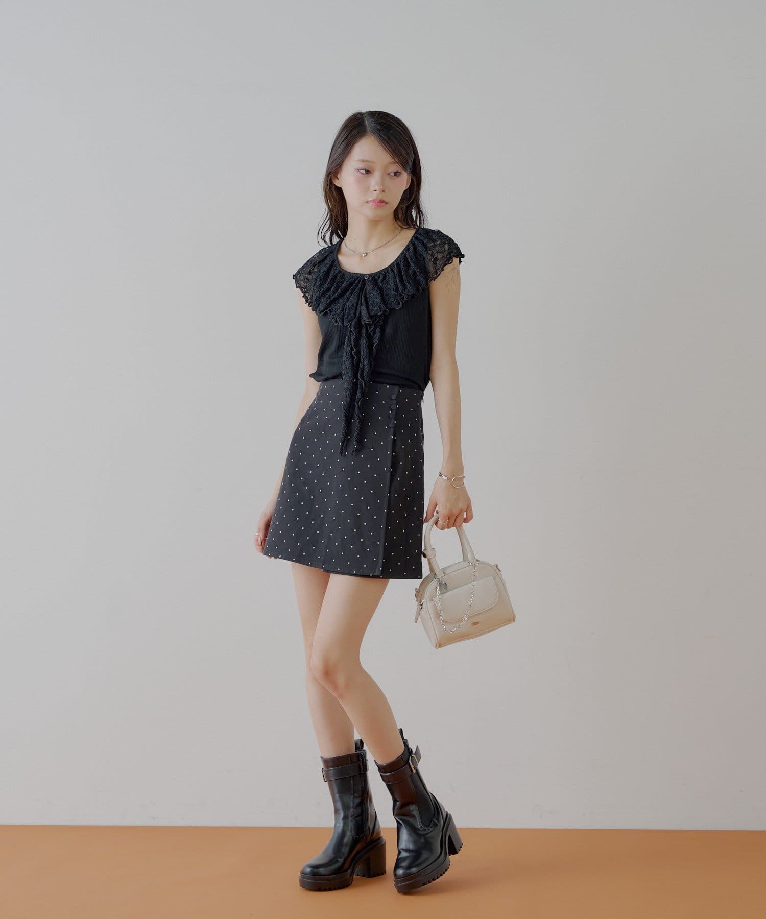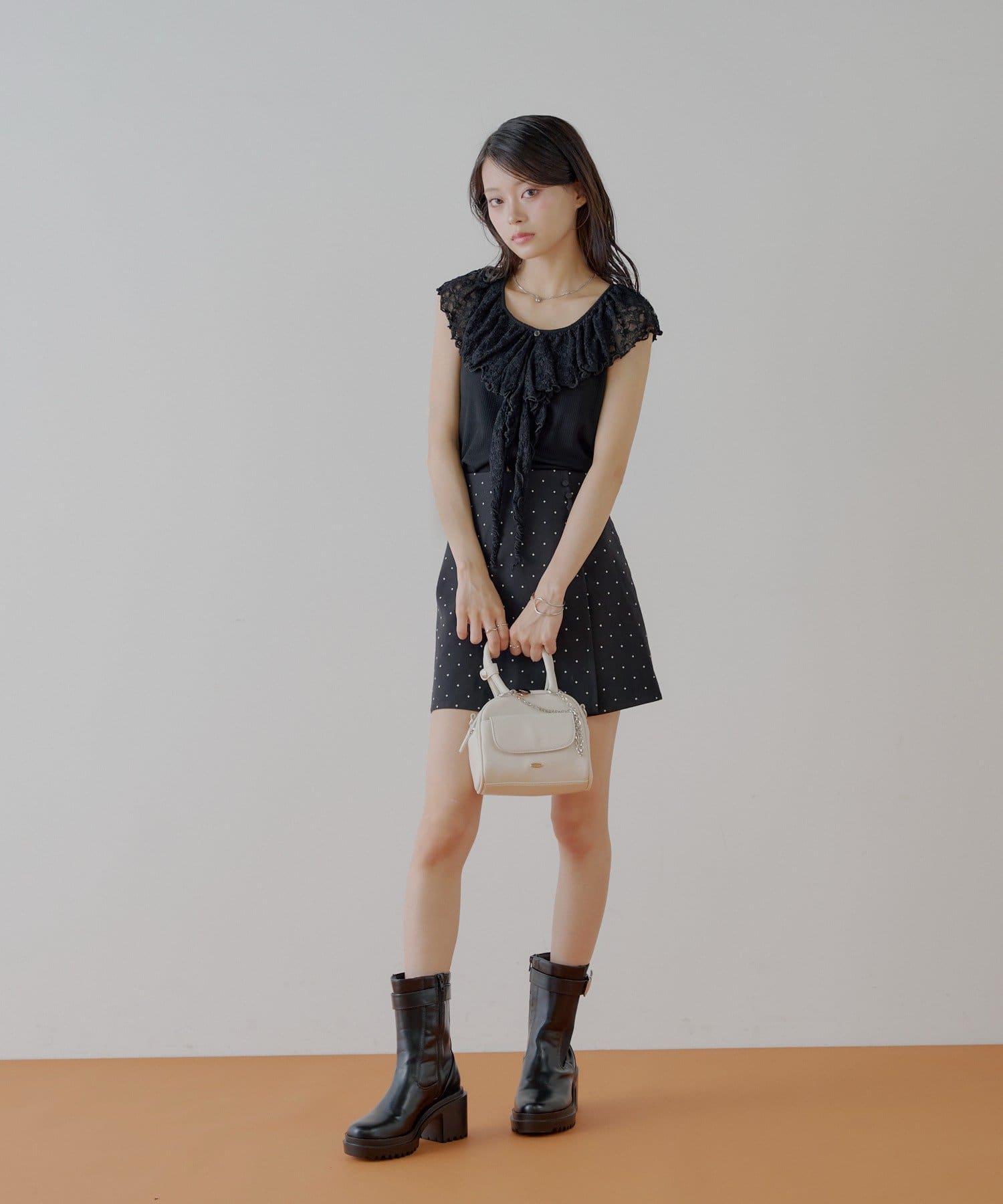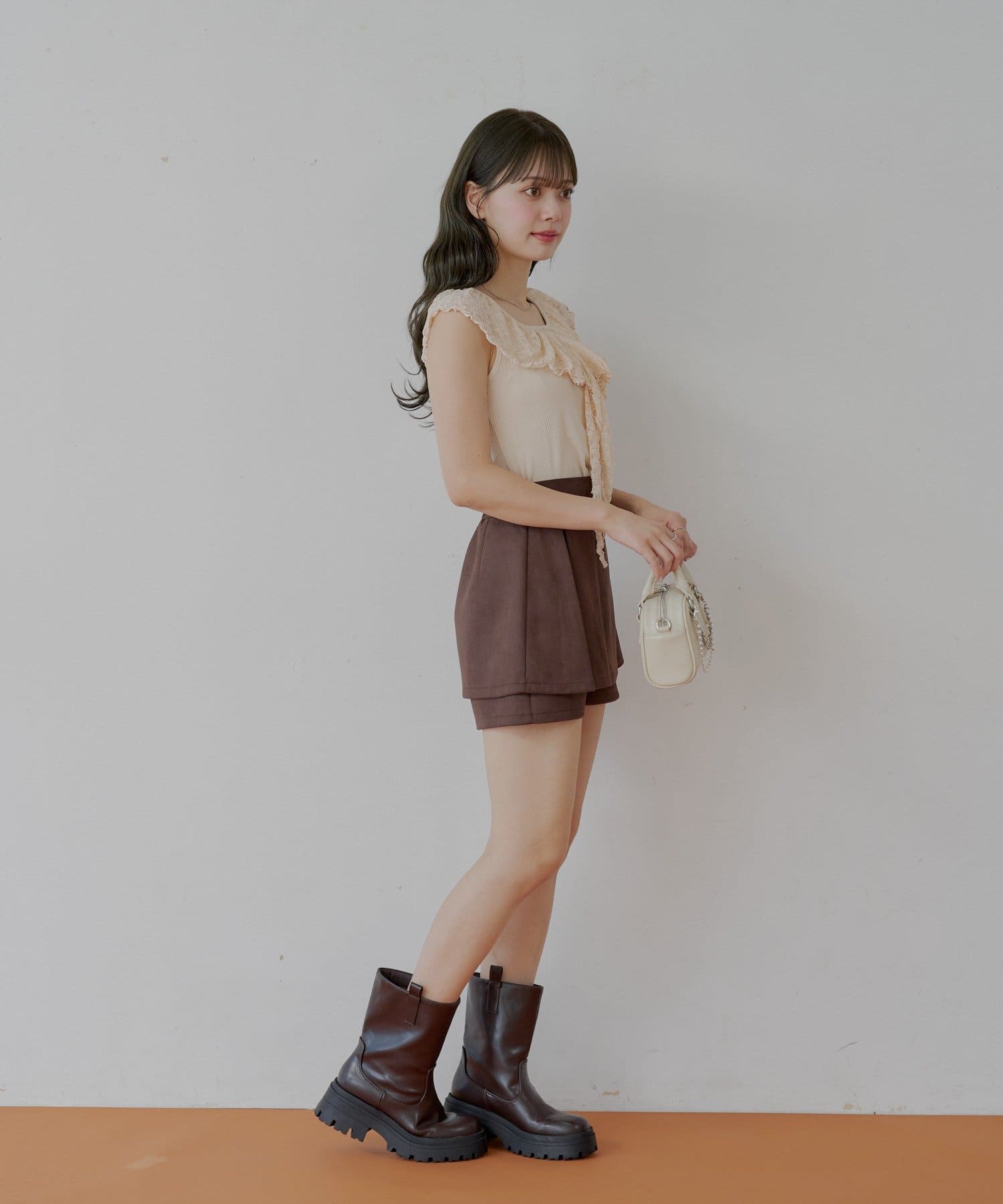 ・ミニボトム合わせでフェミニンに着るのも可愛いです。